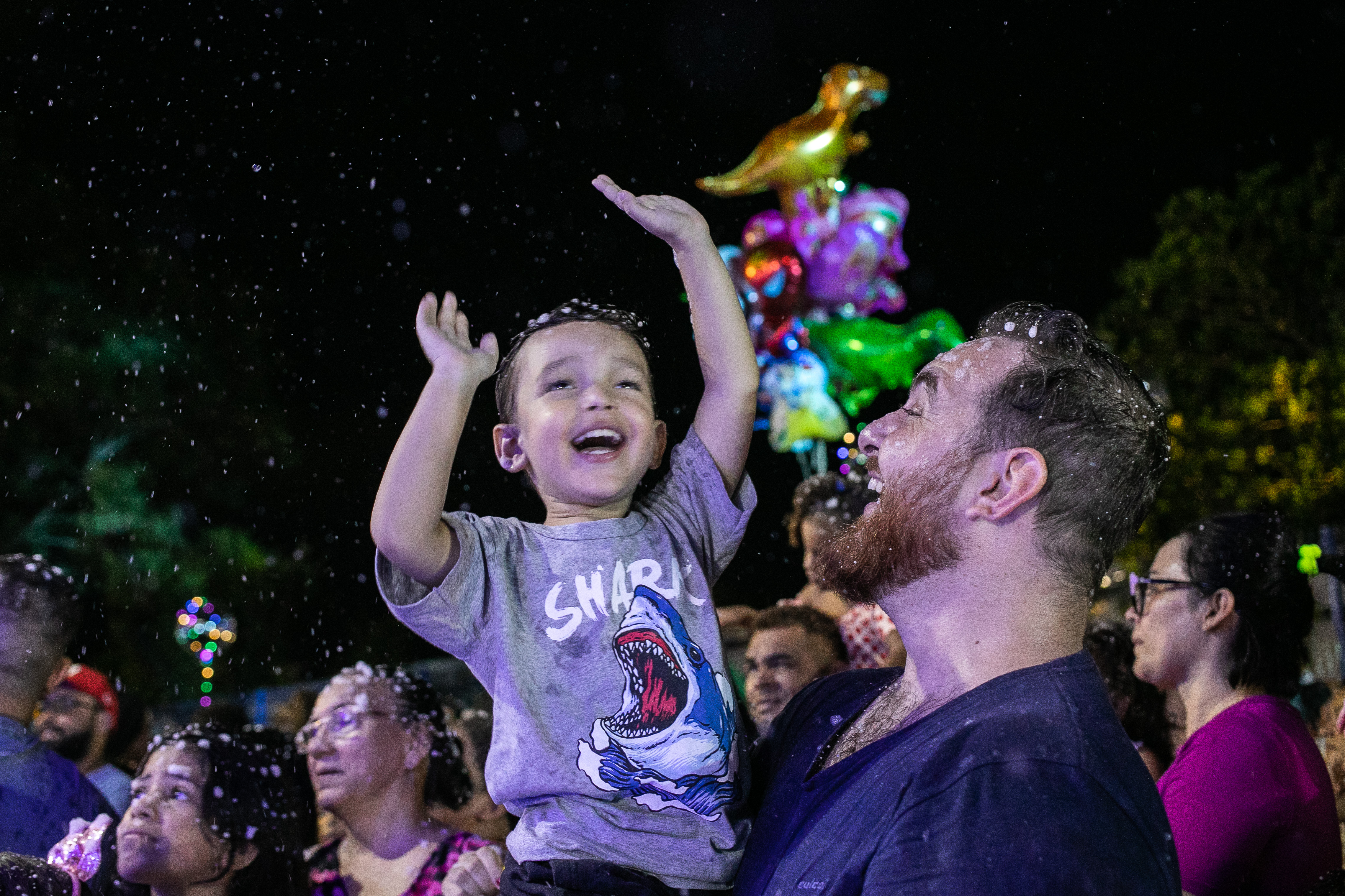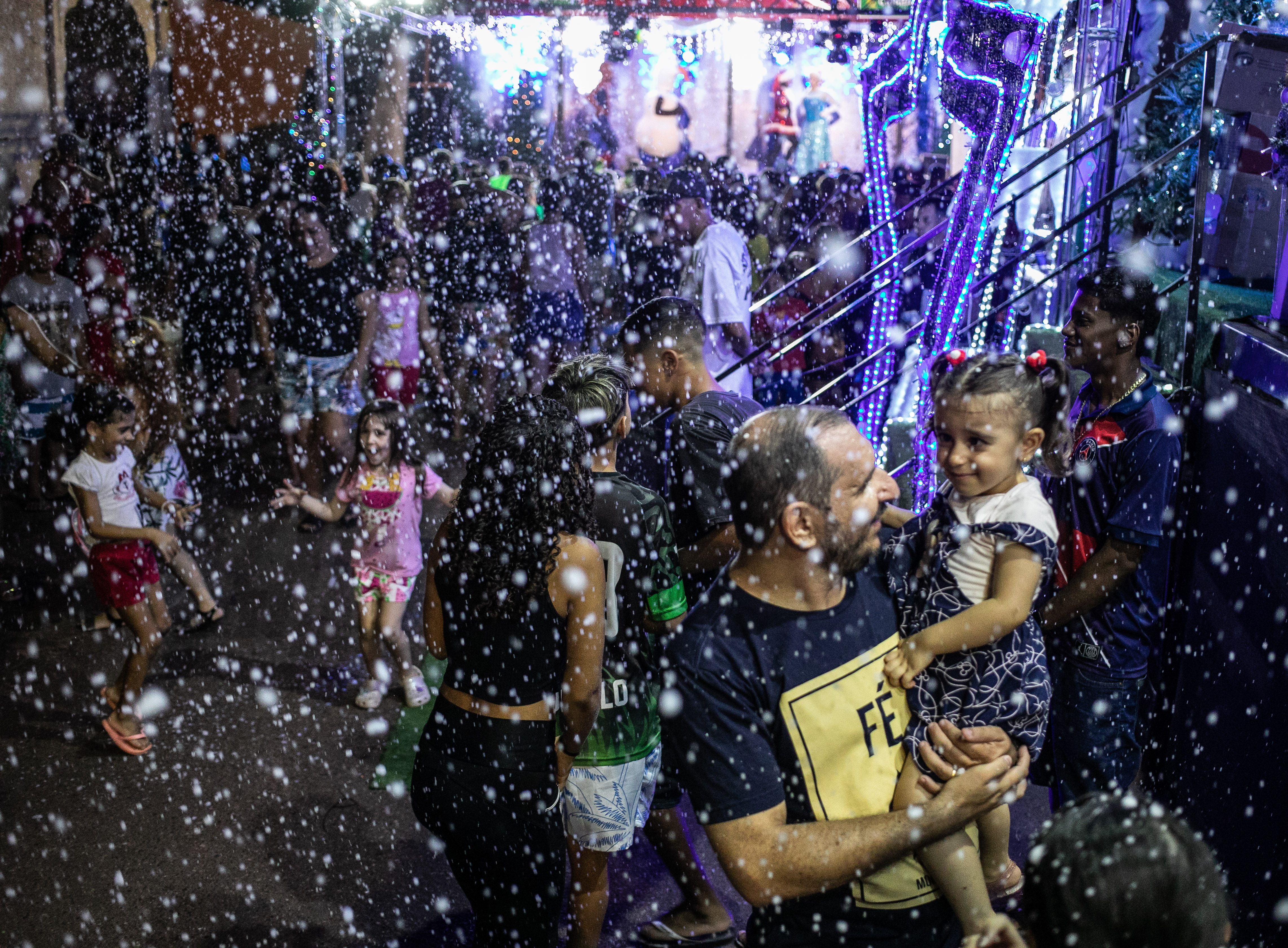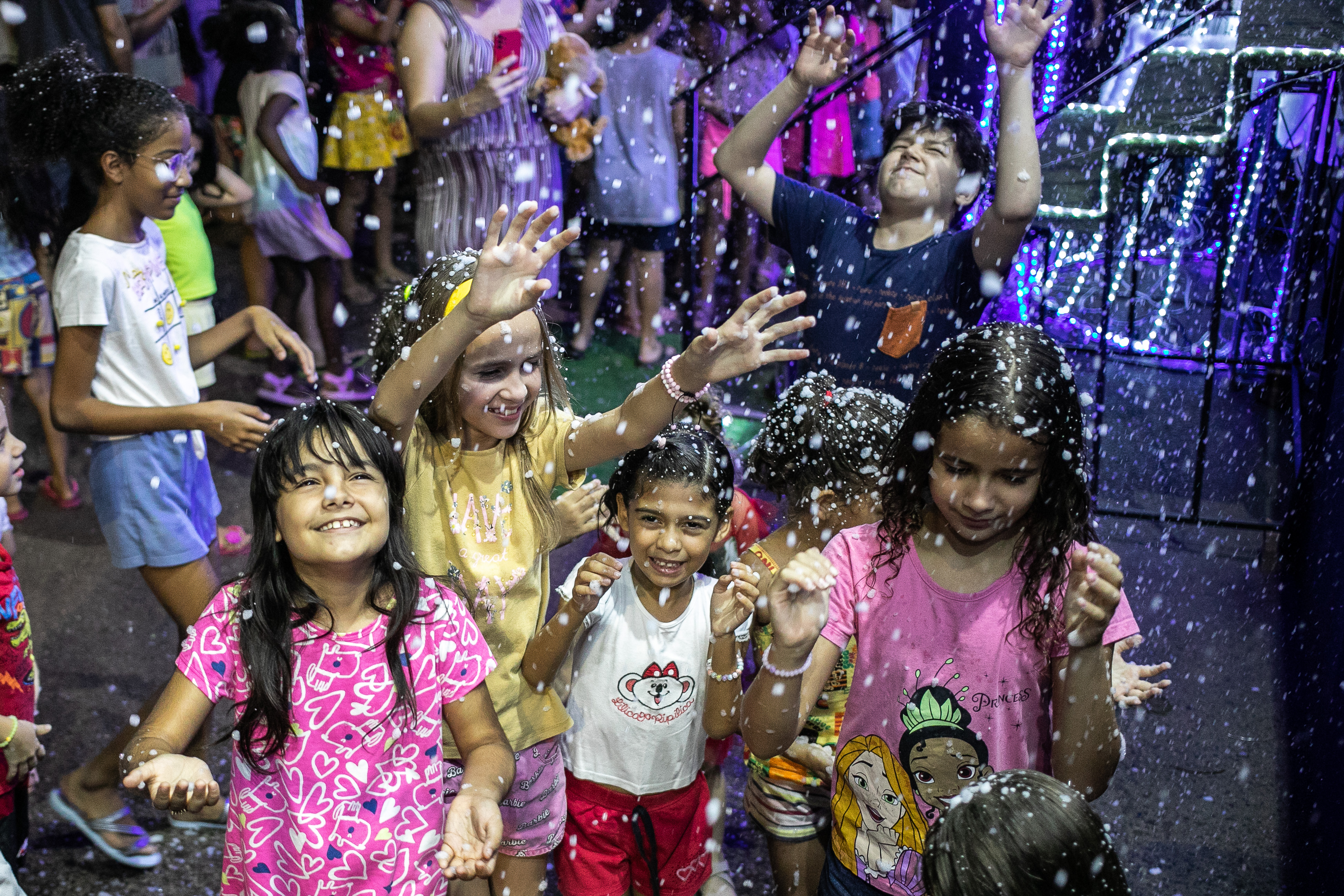 “Já que não temos condição de ir a lugares que tenham a neve, temos que aproveitar quando recebemos esse presente. E o melhor, bem pertinho de casa. Estou realizada. Muito interessante essa ideia da Prefeitura, de montar essa carreta, toda decorada, cheia de luz, com Papai Noel, as mamães noéis e esse magnifico show da Neve. Fiquei muito feliz. Estou pronta para receber o novo ano de 2024”, afiançou dona Sueli.