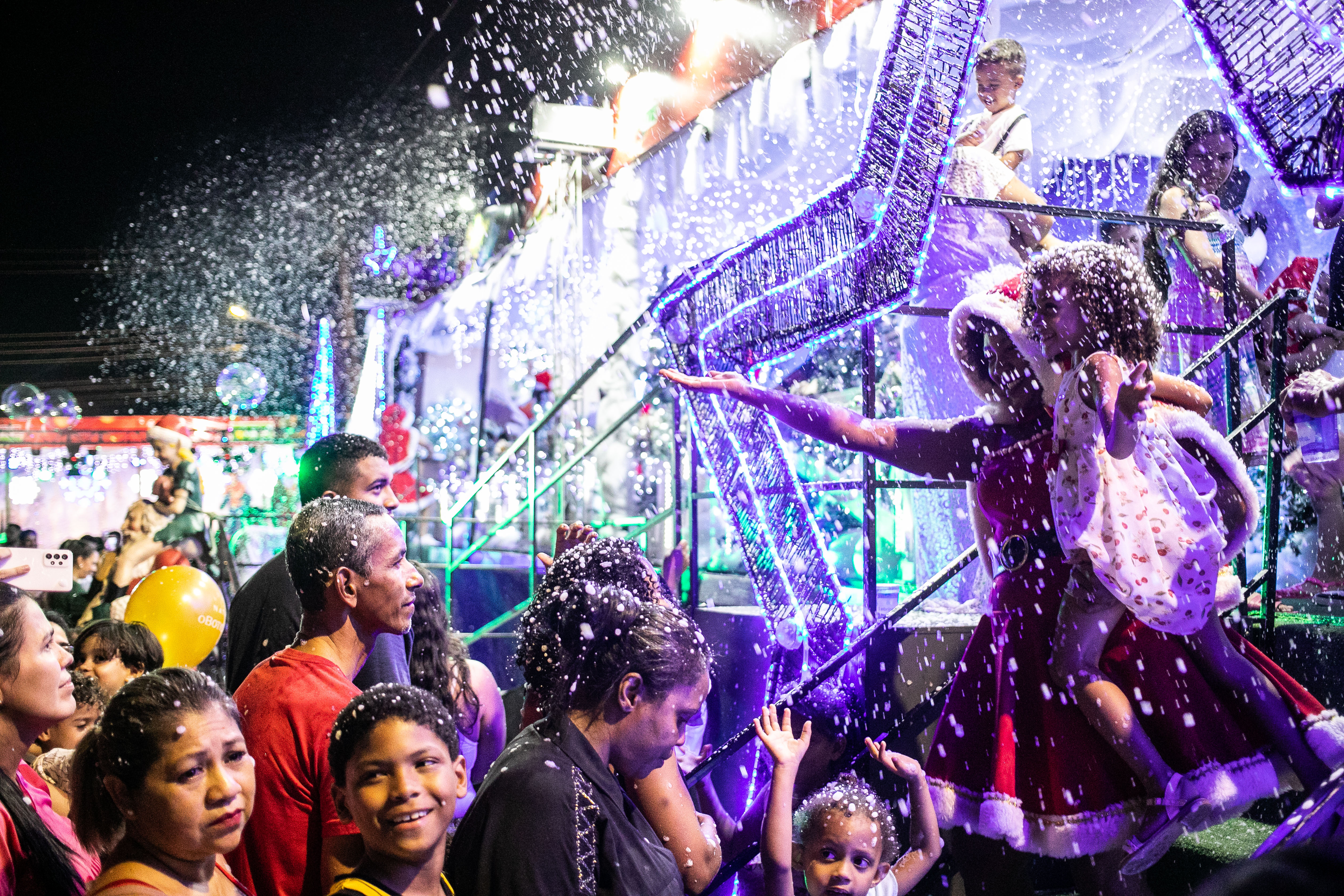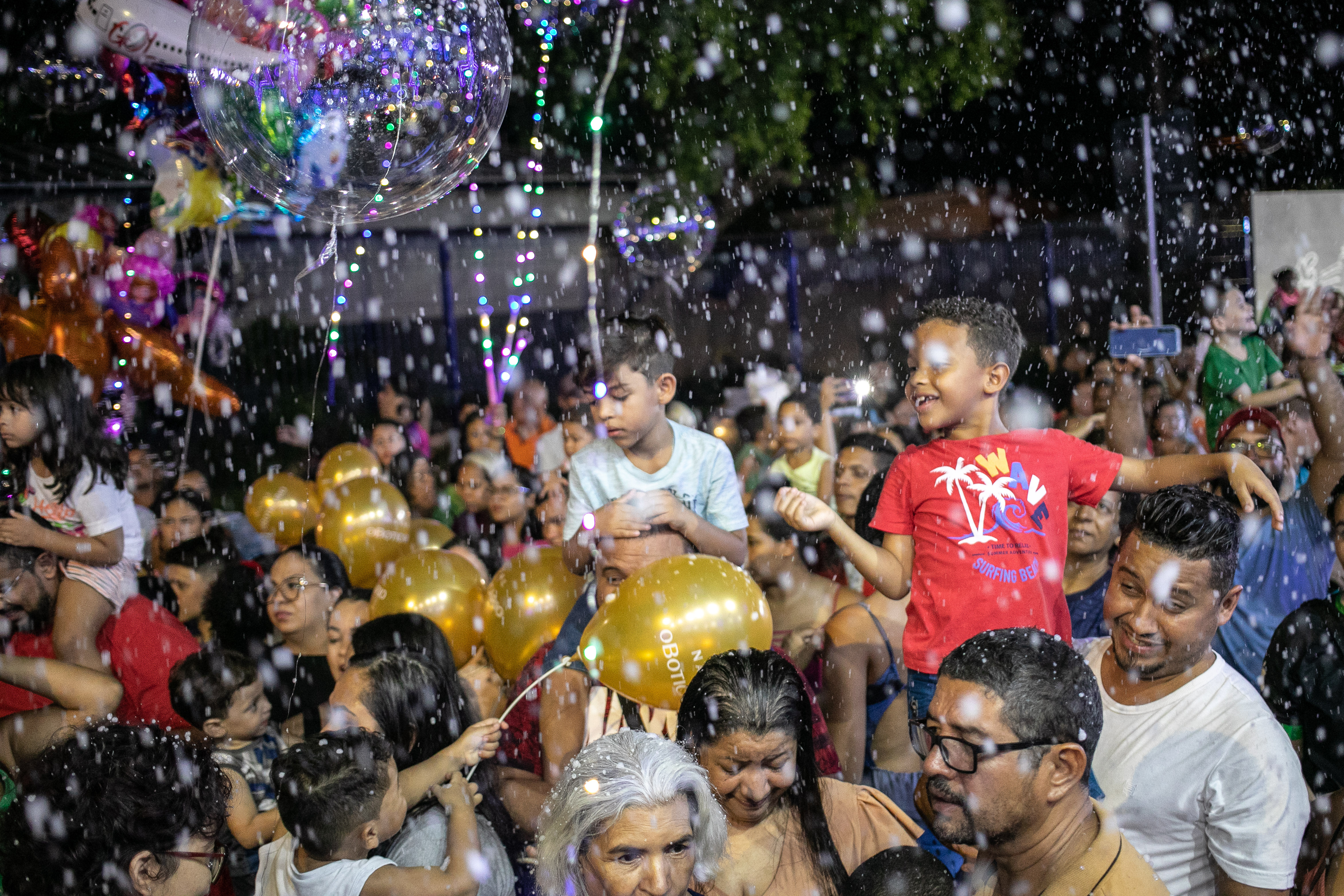 A diversão não ficou restrita apenas às crianças. Dona Sueli Santana, de 73 anos, apreciou a proximidade da carreta e a sensação dos flocos de neve artificial. Ela elogiou a iniciativa da Prefeitura em levar entretenimento para os bairros mais afastados do centro, proporcionando momentos de alegria e esperança para as famílias vulneráveis.
