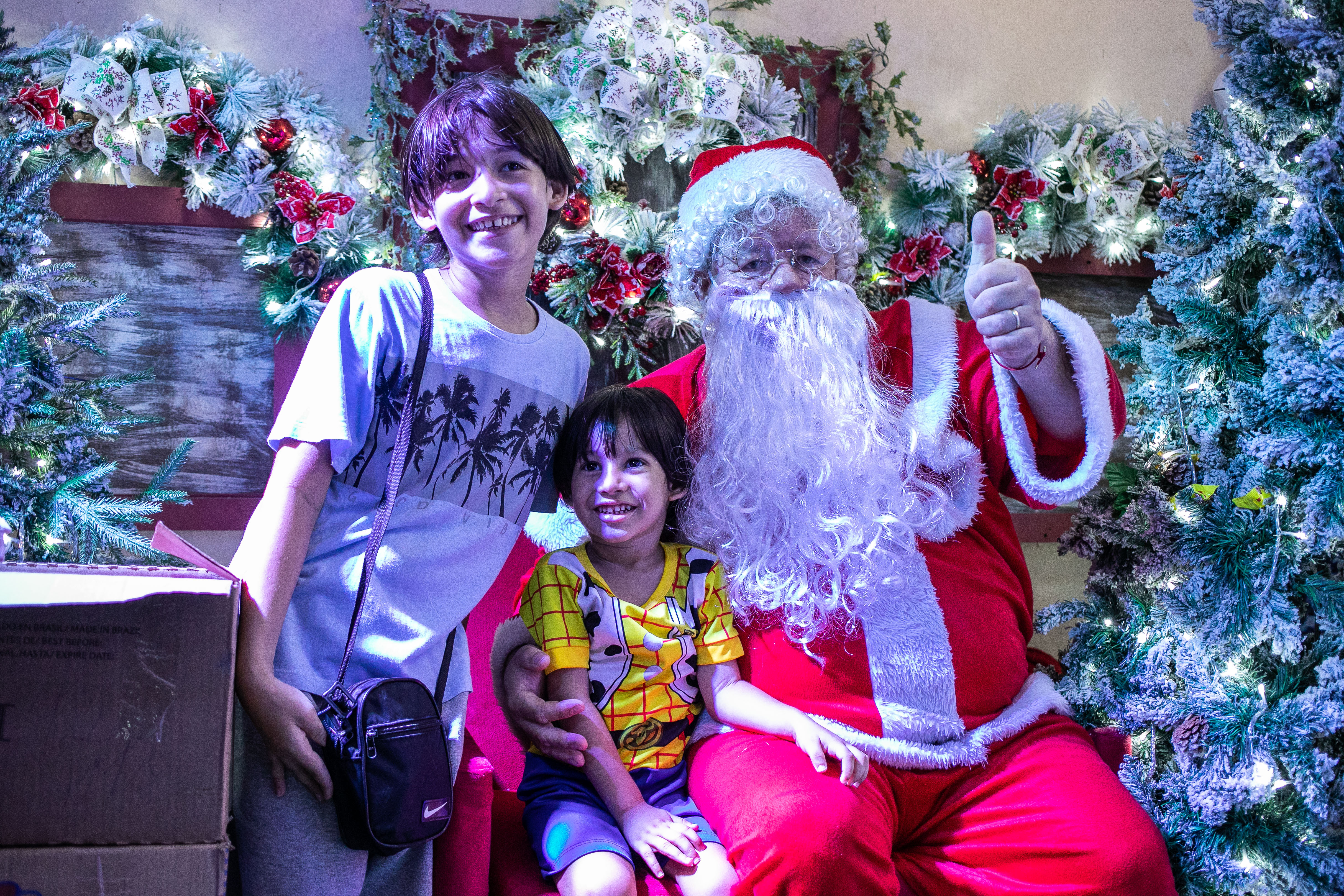A poucos dias do Natal, os irmãos Ítalo, de 6 anos, e Enzo, com 3 anos, foram surpreendidos pela visita do Bom Velhinho na noite da última segunda-feira (18), como parte da Edição do Natal da Gente 2023, promovida pela Prefeitura de Cuiabá através da Secretaria Municipal de Cultura, Esporte e Lazer.