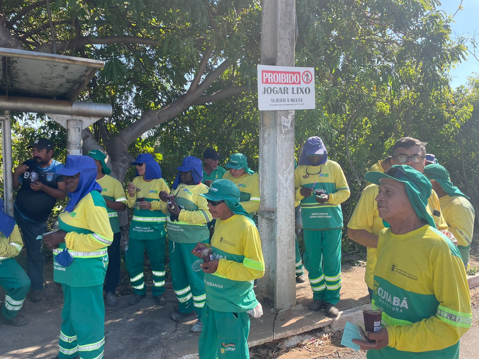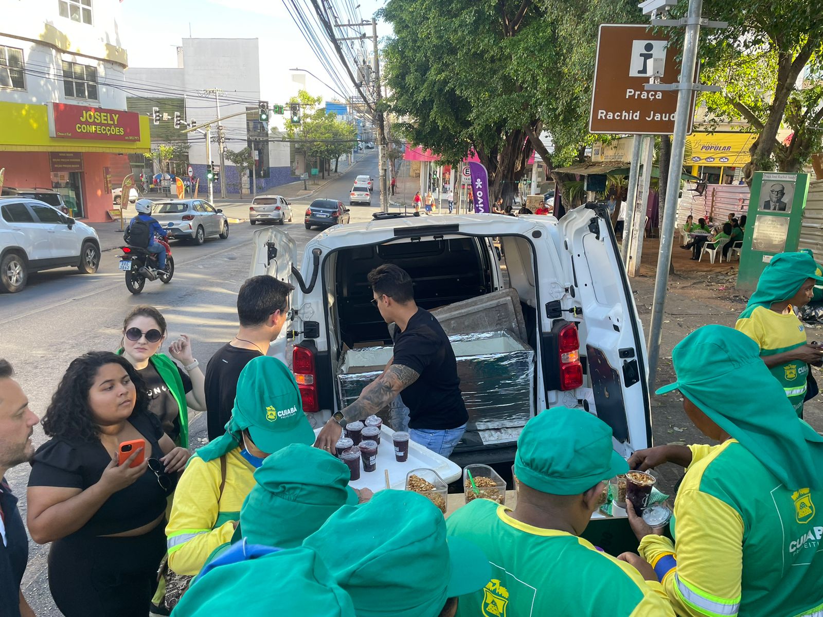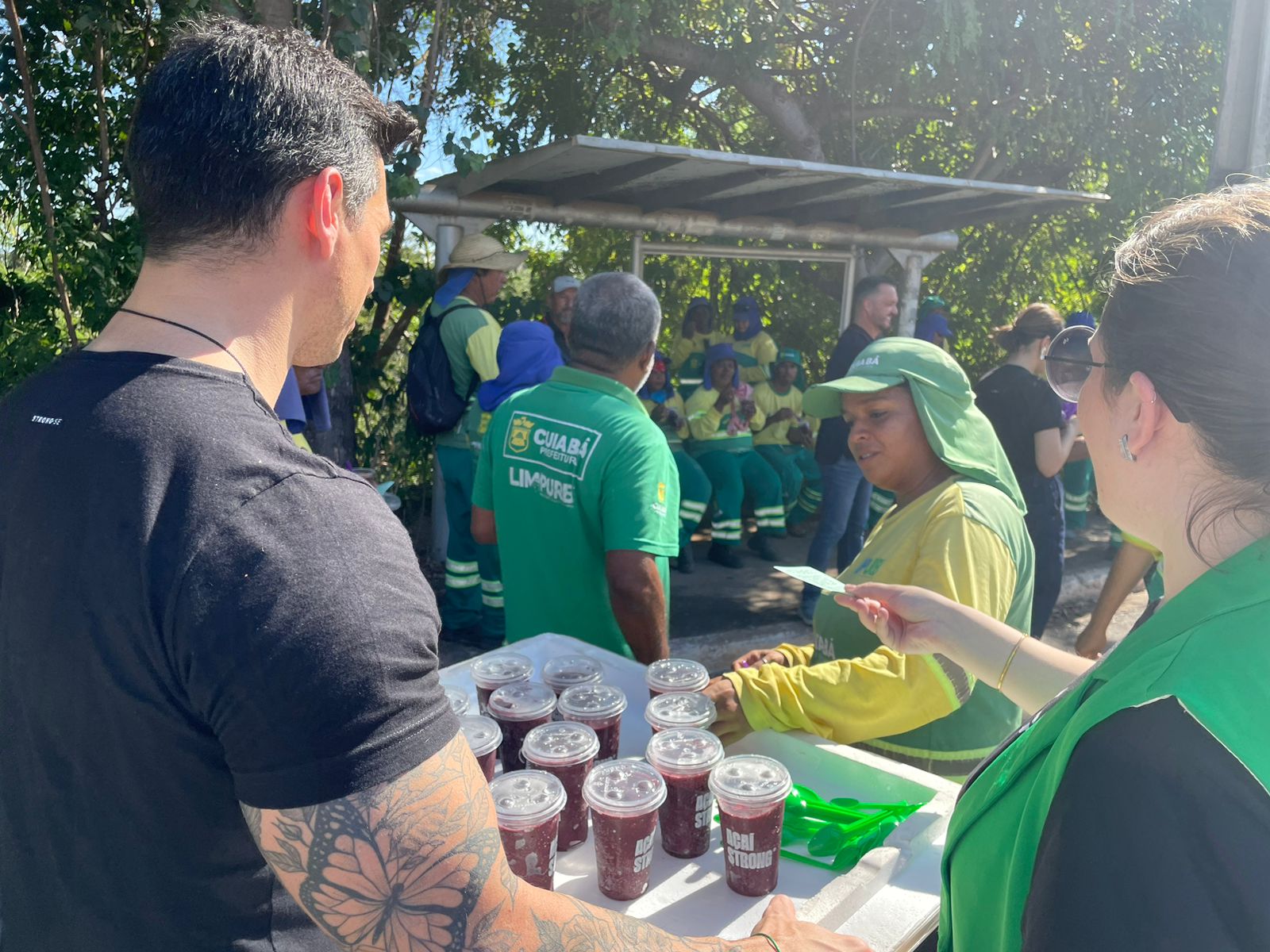 A Empresa Cuiabana de Zeladoria e Serviços Urbanos (Limpurb) e a Açaí Strong promoveram, nesta sexta-feira (23), uma tarde diferente e refrescante aos trabalhadores da limpeza pública. Por meio dessa parceria, mais de 300 servidores foram beneficiados com a iniciativa de distribuição de açaí.