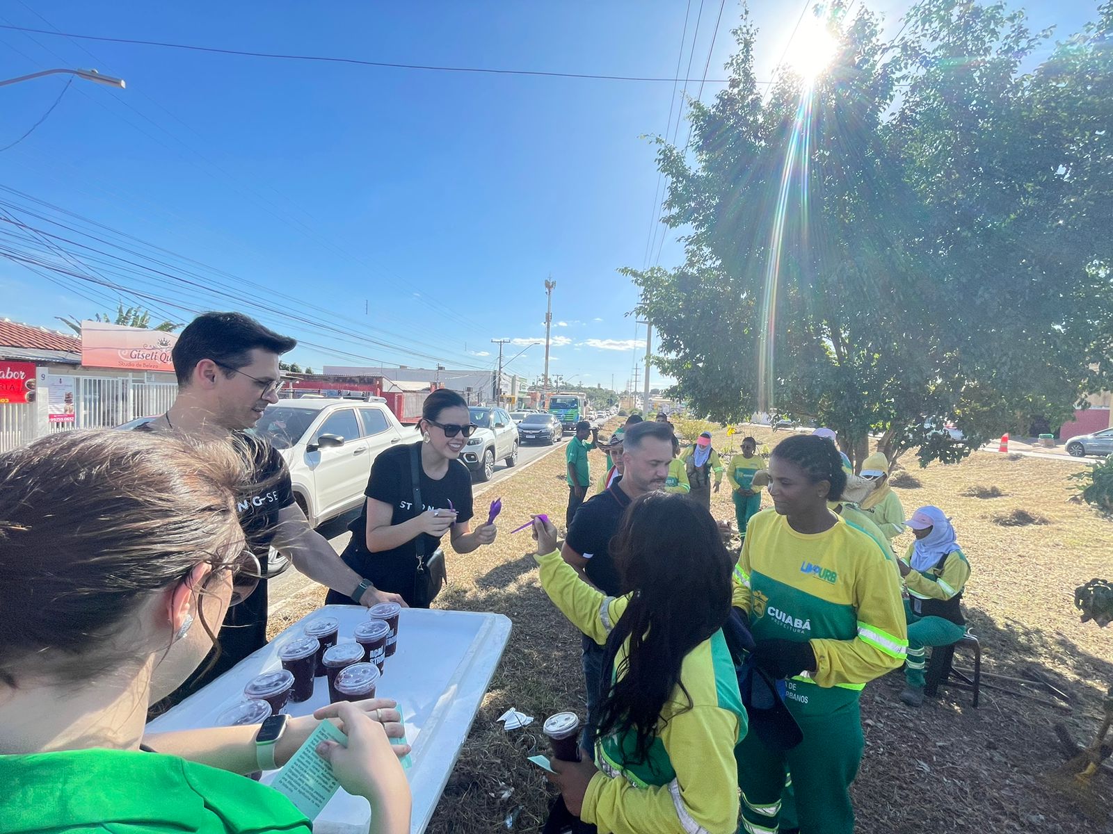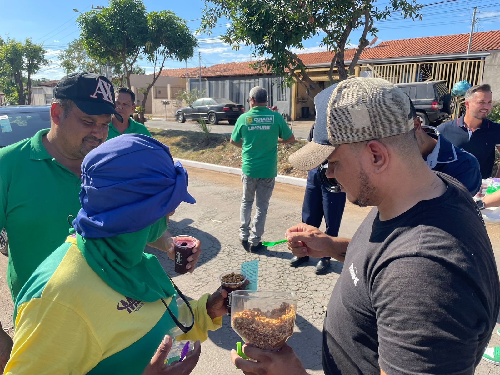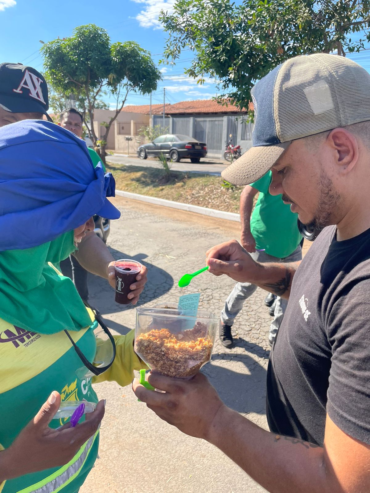 A Empresa Cuiabana de Zeladoria e Serviços Urbanos (Limpurb) e a Açaí Strong promoveram, nesta sexta-feira (23), uma tarde diferente e refrescante aos trabalhadores da limpeza pública. Por meio dessa parceria, mais de 300 servidores foram beneficiados com a iniciativa de distribuição de açaí.