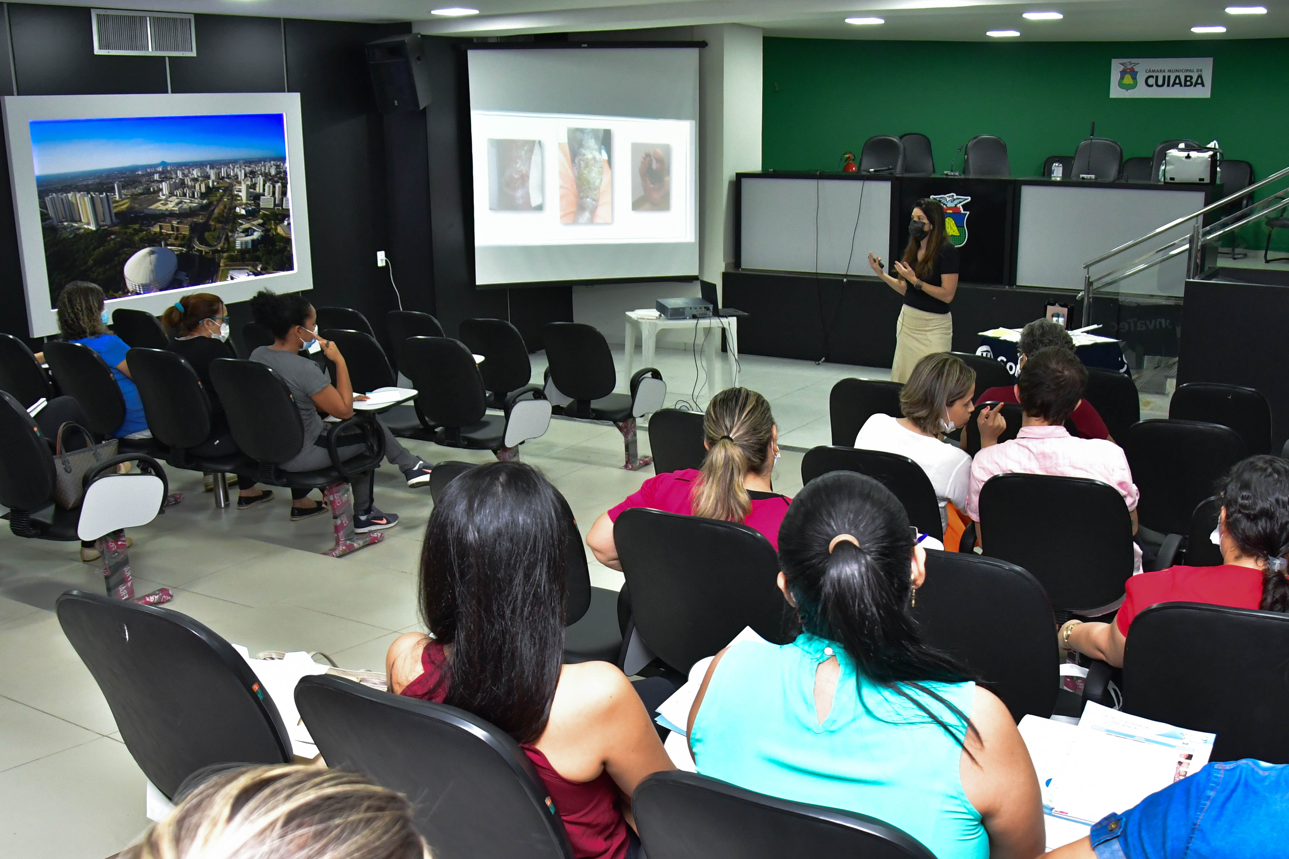 Cerca de 150 enfermeiros da rede de atenção primária à Saúde de Cuiabá realizaram curso de manejo de feridas e curativos, oferecido pela Secretaria Municipal de Saúde (SMS) ao longo desta semana, no auditório Ana Maria do Couto (Plenarinho), da Câmara de Cuiabá. Para evitar aglomerações, os profissionais foram divididos em quatro turmas, cada uma sendo capacitada entre os dias 14 e 17 de setembro.