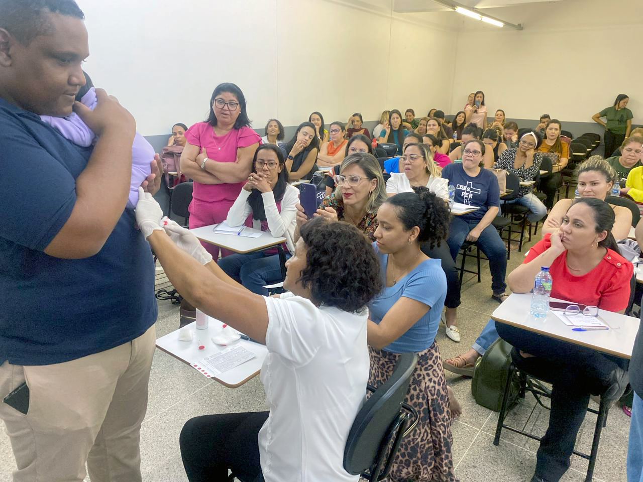 O curso foi iniciado no dia 5 de julho e encerrado nesta sexta-feira (26). Toda a capacitação foi ministrada por médicos e enfermeiros do Hospital Júlio Muller, dividida em quatro turmas, com uma média de 80 alunos cada. Mães com bebês recém-nascidos acompanhadas pela rede também participaram como voluntárias na parte prática da capacitação. Na cerimônia de encerramento, os bebês que participaram do treinamento foram carinhosamente homenageados com um certificado de participação.