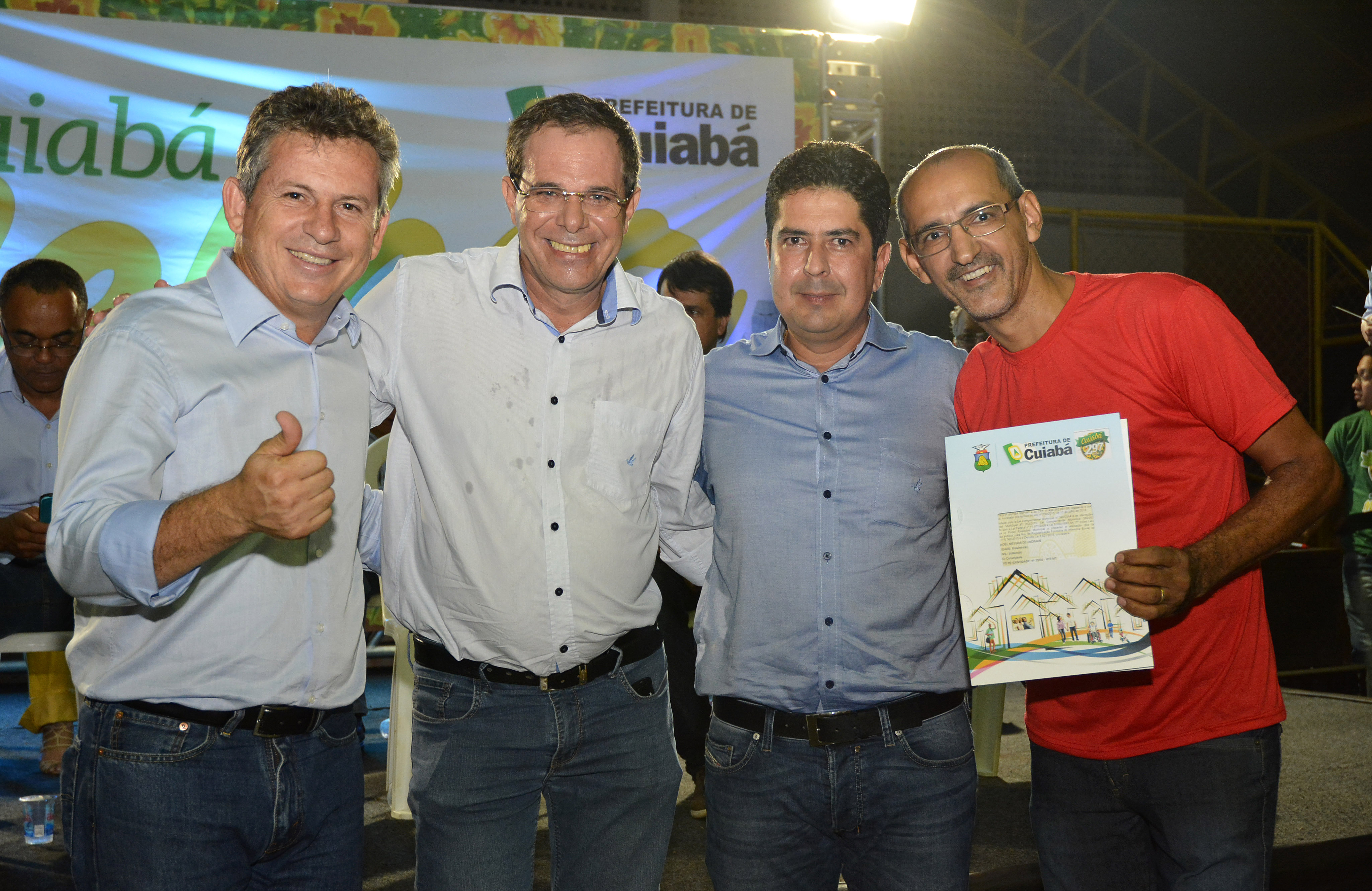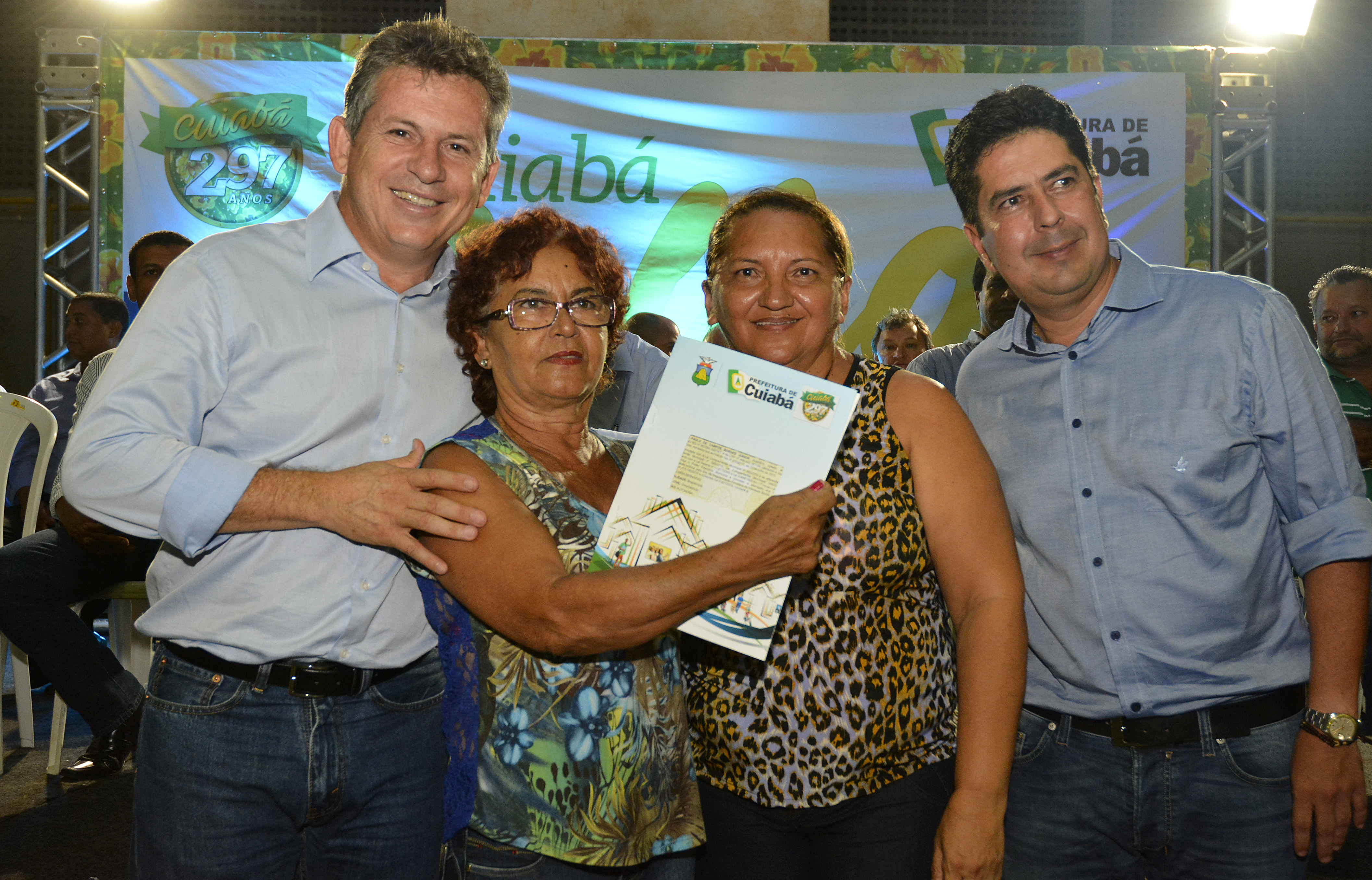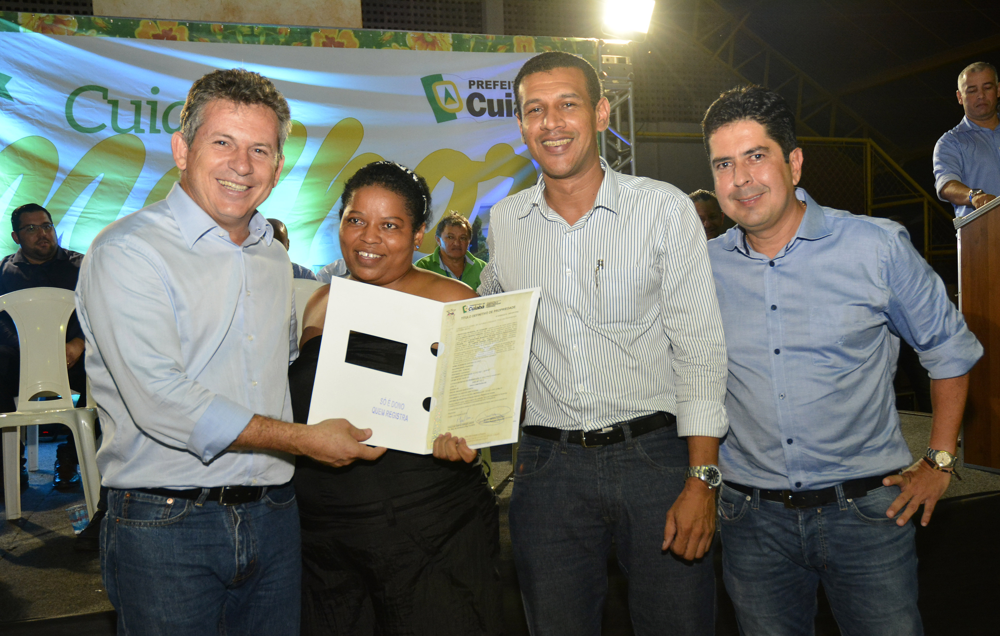 "Transborda em cada um de nós a mais plena alegria, por estar diante dos mais novos proprietários daqueles terrenos que sempre os pertenceu. É uma honra poder testemunhar mais um capítulo sendo construído na história de cada família aqui representada. Desde o ano passado temos nos dedicado para conferir à população esse direito, essa cidadania por meio deste documento tão valioso. E nesta noite todos somos testemunhas de um marco histórico para Cuiabá. Após entregarmos mais de quatro mil títulos em 2015, até o final deste ano aproximadamente 30 mil serão entregues. Comunidades serão reconhecidas por seu genuíno valor e seus moradores passam a ter plenos direitos sobre sua moradia", contou.