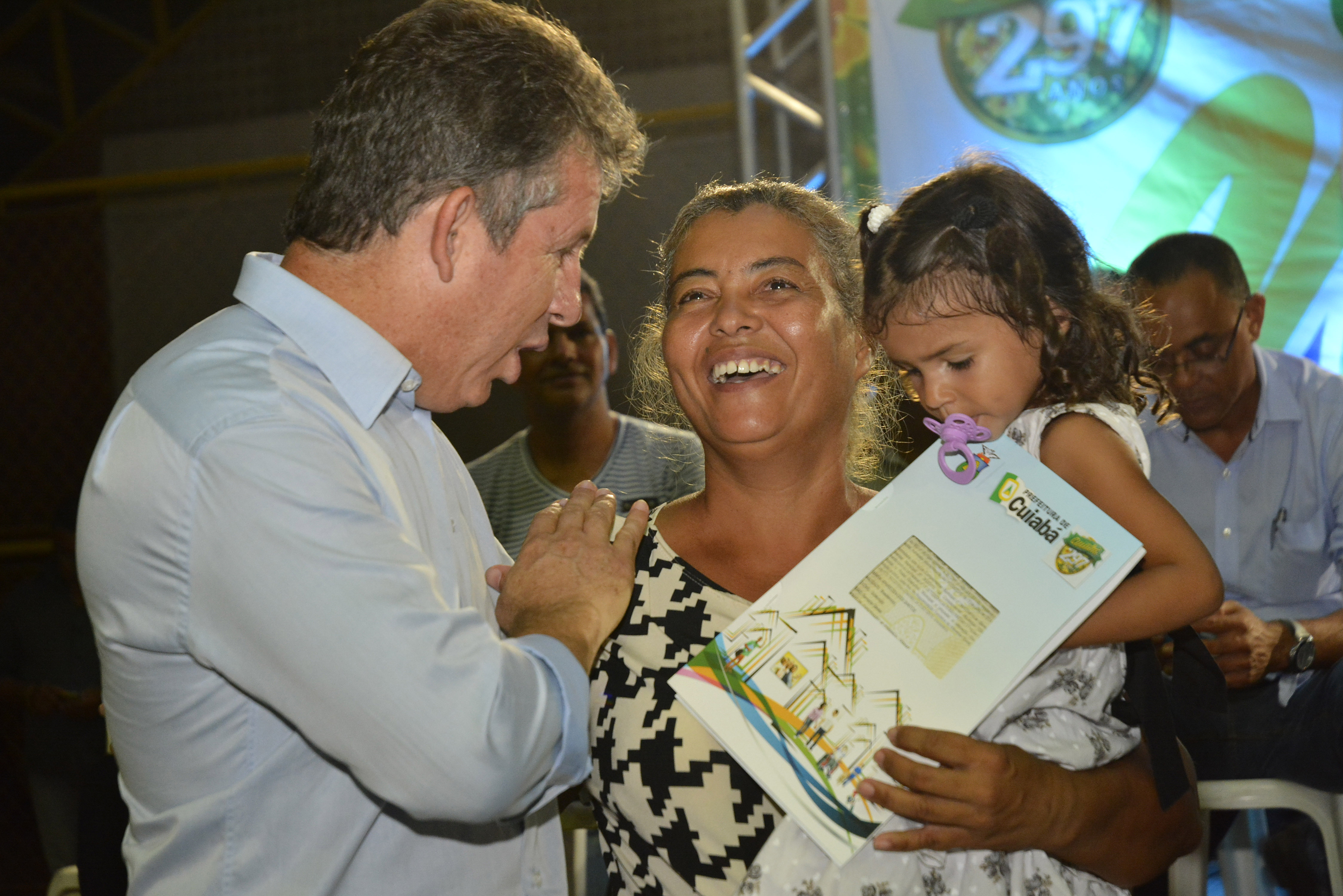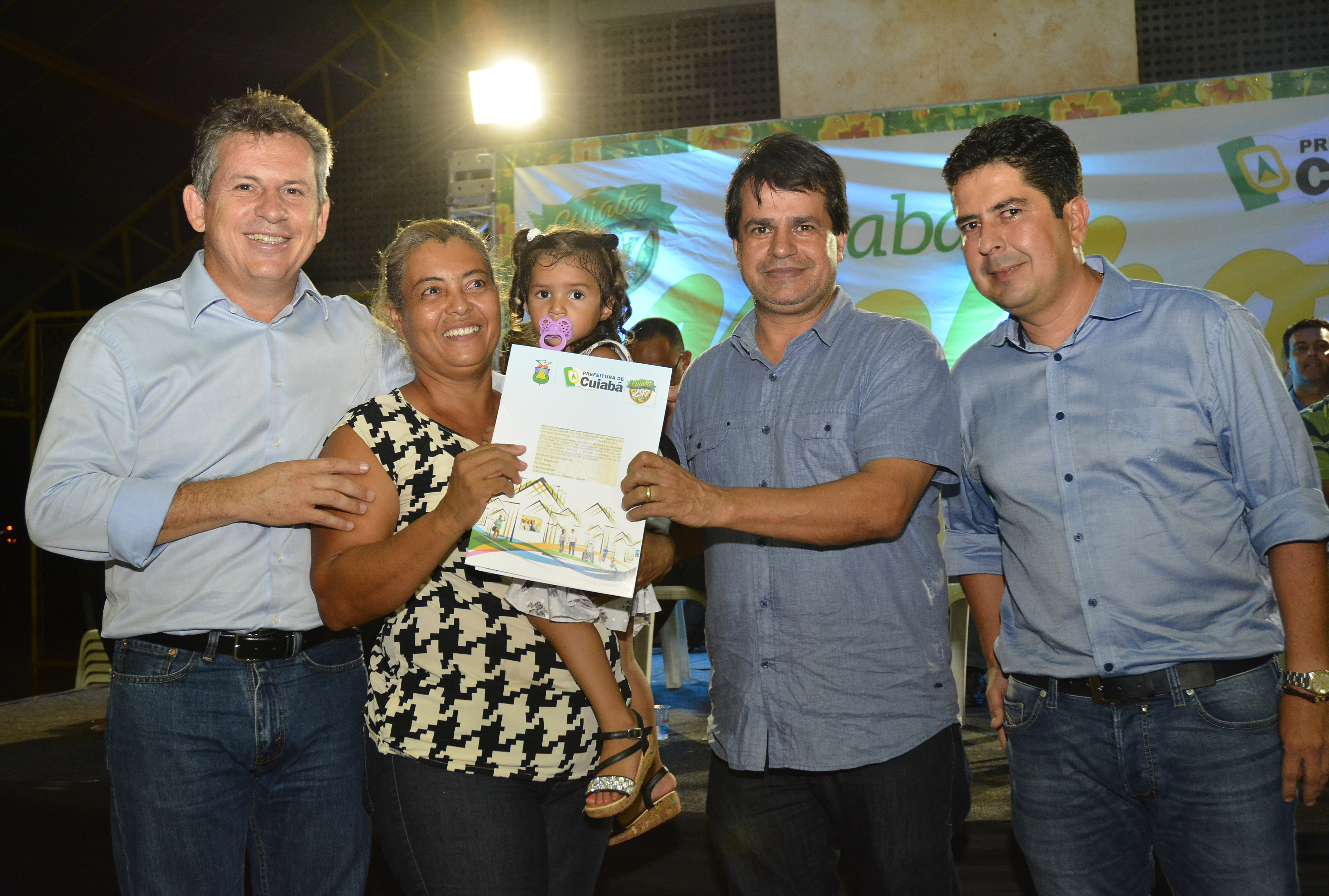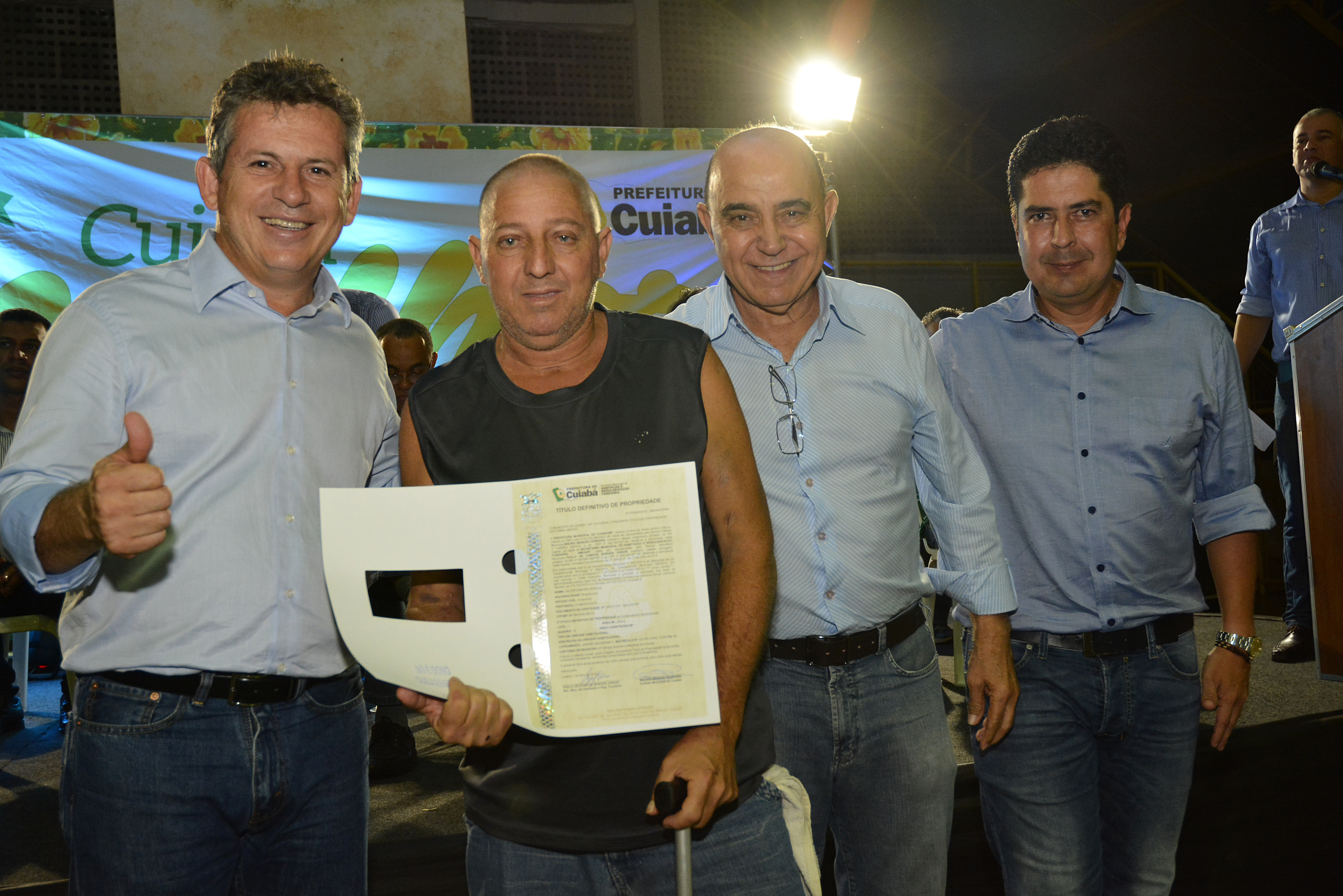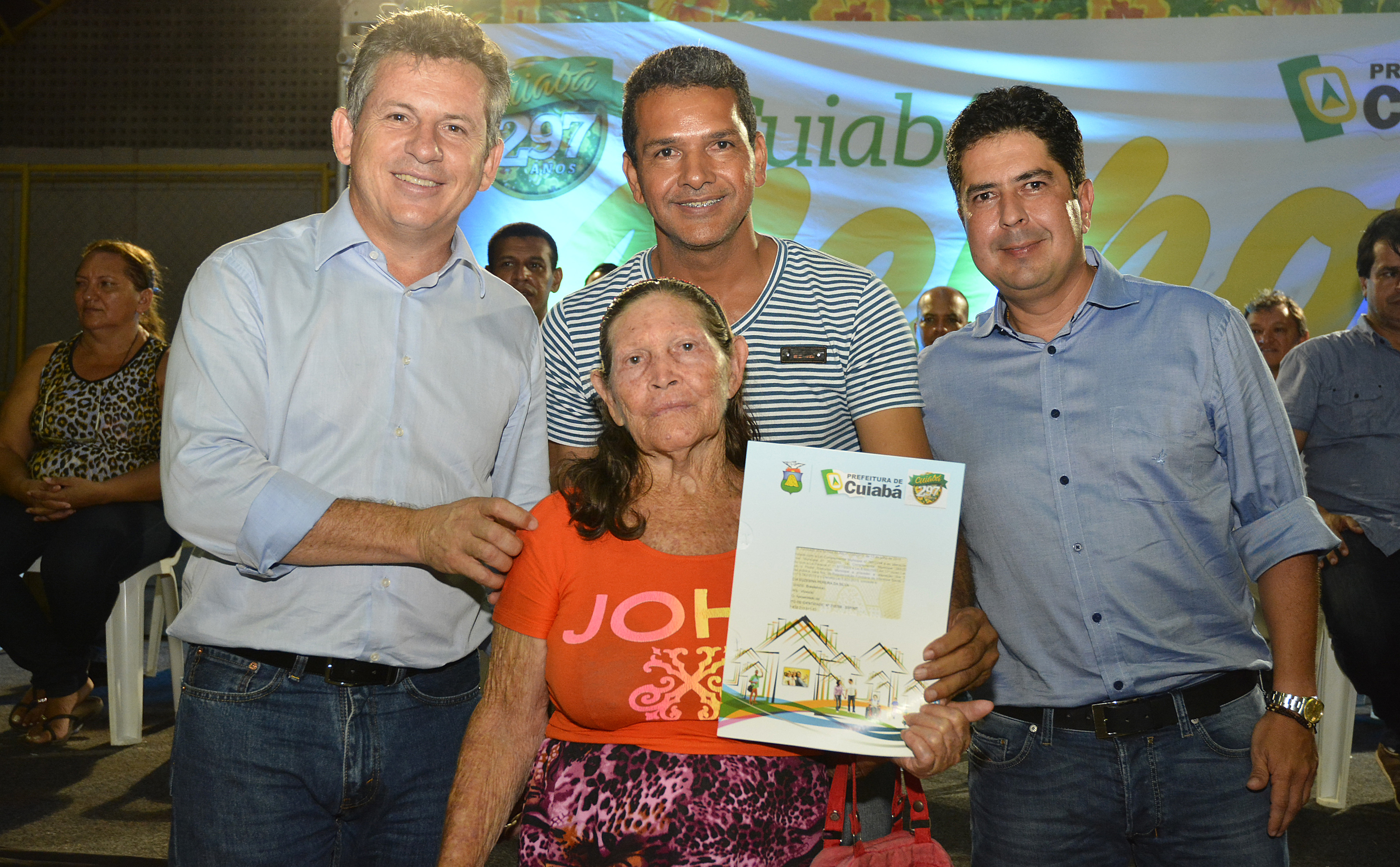 "Transborda em cada um de nós a mais plena alegria, por estar diante dos mais novos proprietários daqueles terrenos que sempre os pertenceu. É uma honra poder testemunhar mais um capítulo sendo construído na história de cada família aqui representada. Desde o ano passado temos nos dedicado para conferir à população esse direito, essa cidadania por meio deste documento tão valioso. E nesta noite todos somos testemunhas de um marco histórico para Cuiabá. Após entregarmos mais de quatro mil títulos em 2015, até o final deste ano aproximadamente 30 mil serão entregues. Comunidades serão reconhecidas por seu genuíno valor e seus moradores passam a ter plenos direitos sobre sua moradia", contou.
