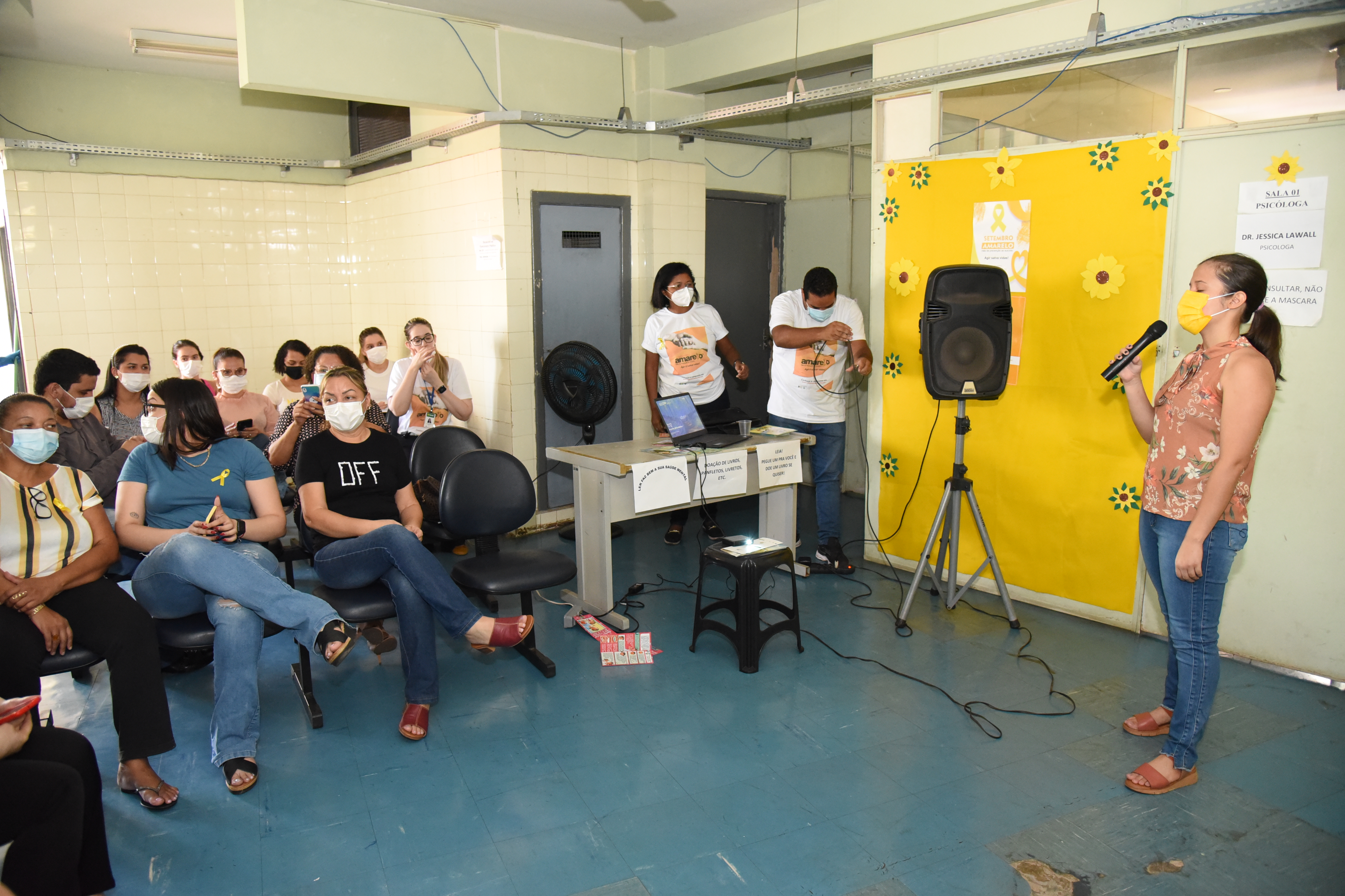 Nos dias 21 e 28 de setembro, a equipe do ambulatório de Saúde Mental da Policlínica do Planalto promoveu palestras sobre o suicídio voltadas para os colaboradores do Centro de Especialidades Médicas (CEM), onde a equipe está abrigada provisoriamente, enquanto o prédio da Policlínica passa por reforma. No dia 21, a palestrante foi a psiquiatra Thaissa Rachid Jaudy, que juntamente com acadêmicos da Univag, falou sobre a história da campanha Setembro Amarelo, fatores de risco do suicídio, fluxos de atendimento aos pacientes, como é feito o acolhimento, entre outros aspectos dos serviços oferecidos pelo Município em relação à saúde mental.