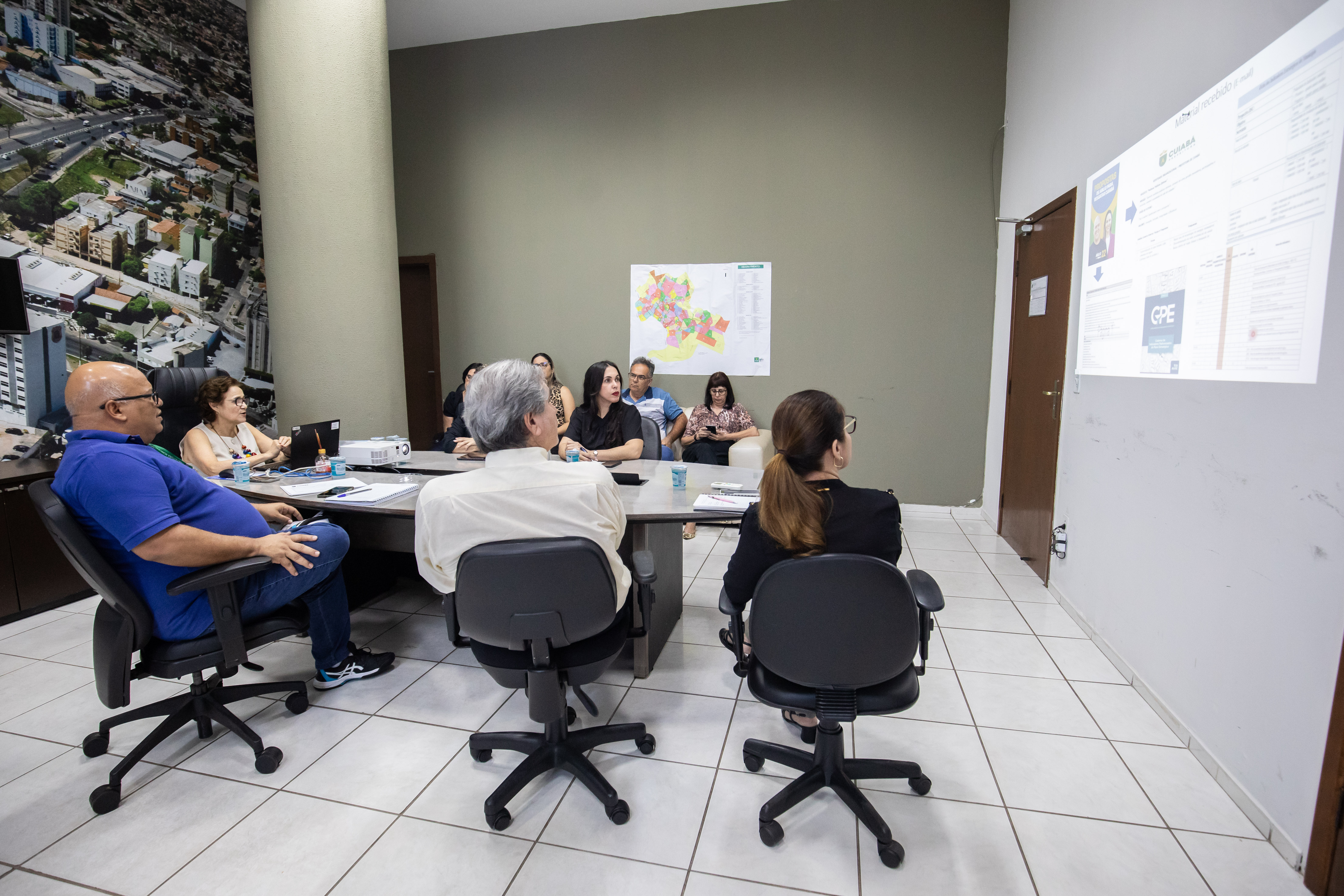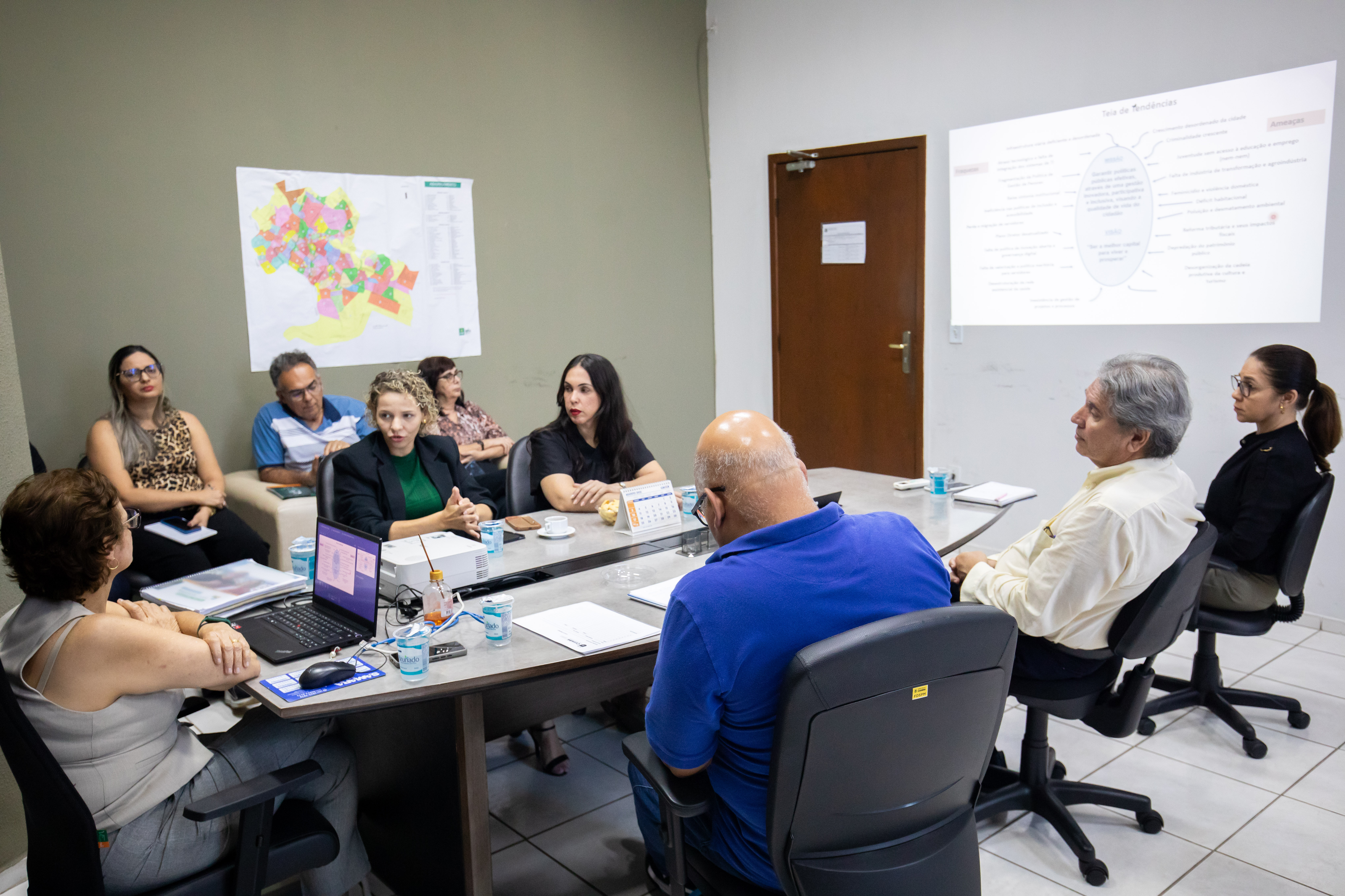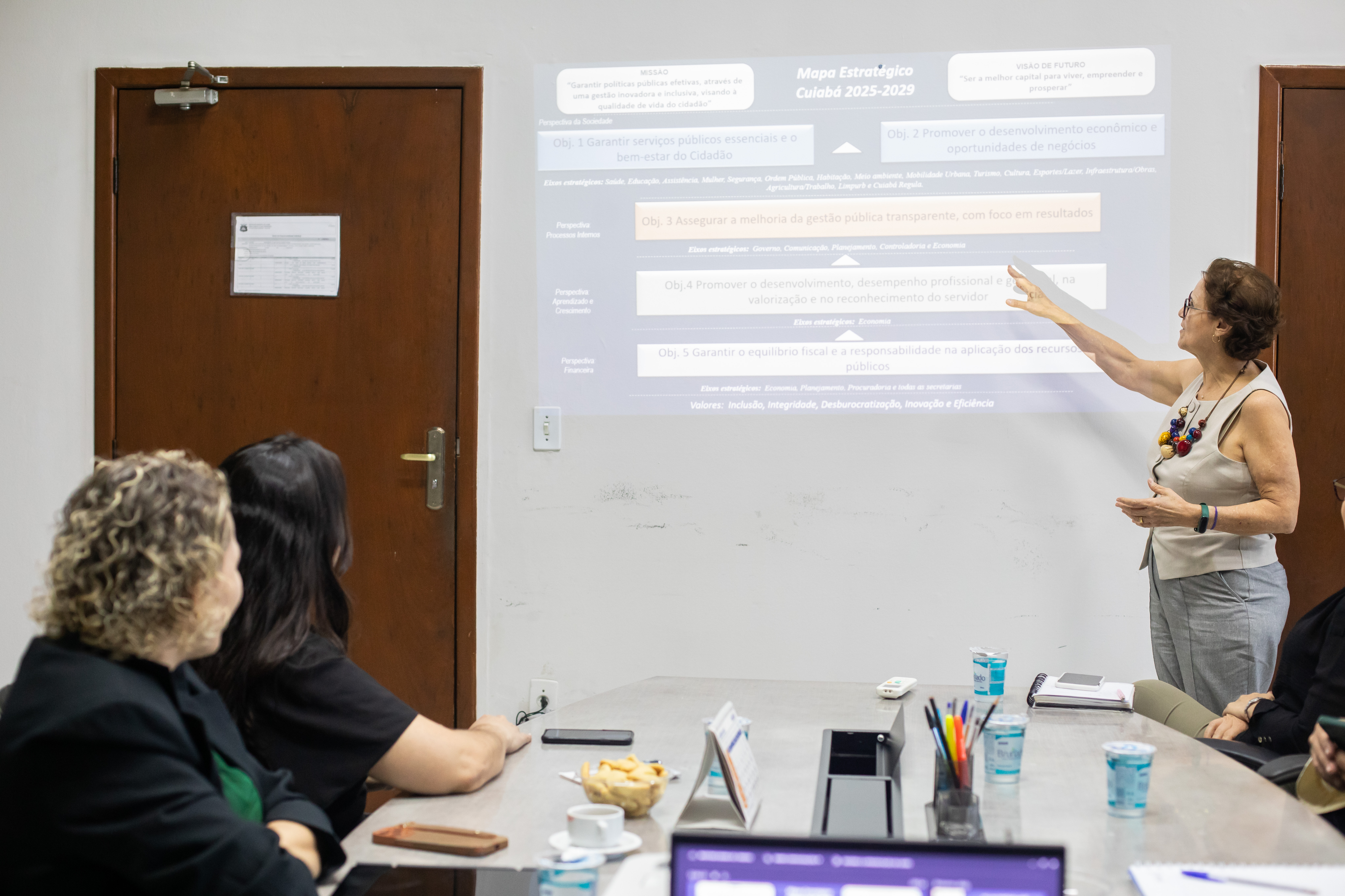 Durante a reunião, a diretora de Planejamento, Silvina Maria dos Anjos, fez uma explanação sobre o mapa estratégico de Cuiabá desenvolvido para o período de 2025 a 2029 e sobre o funcionamento do Programa de Apoio ao Gerenciamento do Planejamento Estratégico dos Municípios (GPE).
