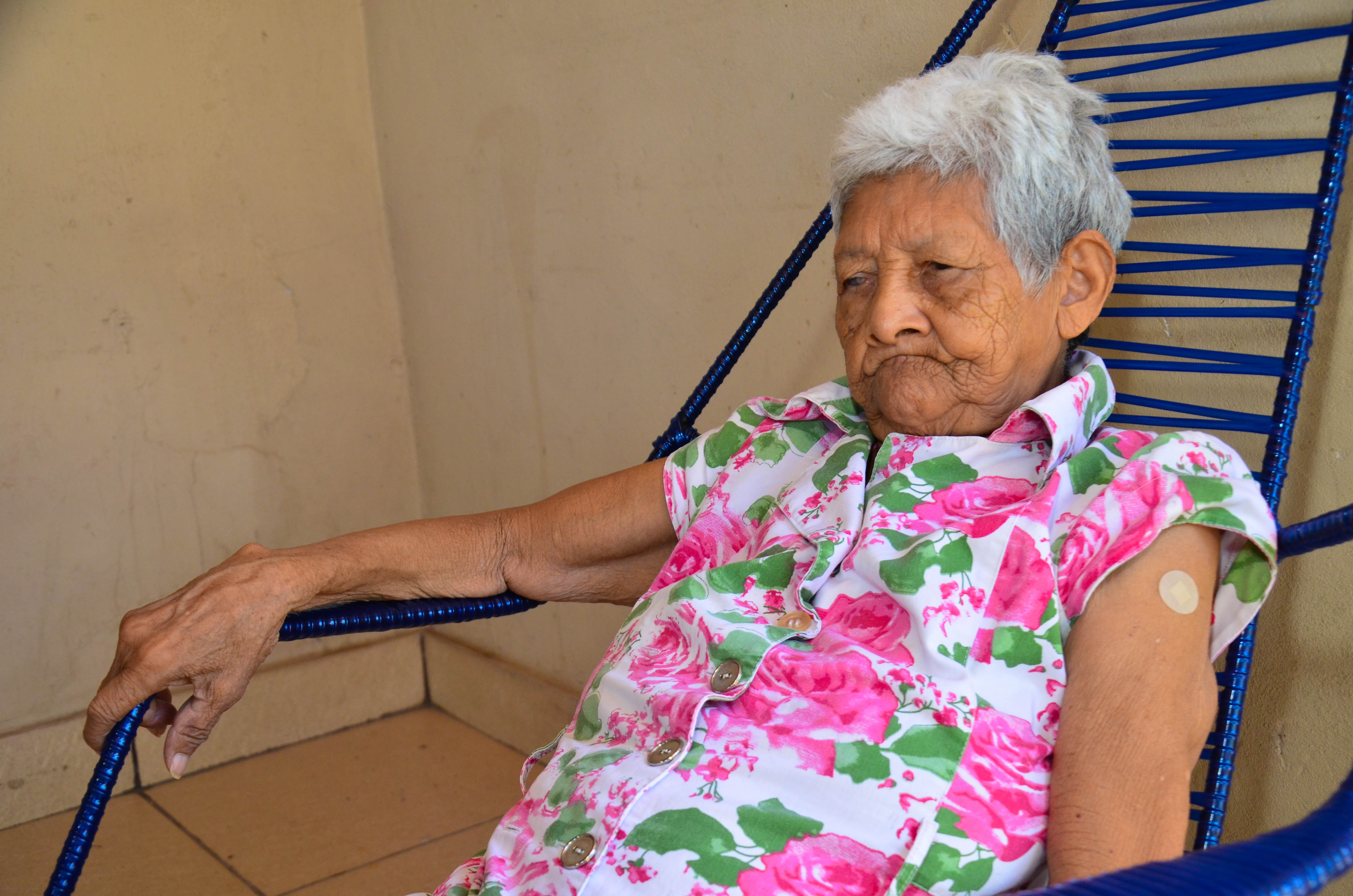 Nascida em 10 de janeiro de 1907, em Rosário Oeste, a senhora Justina Santana Xavier da Silva, que completou em janeiro de 2021 incríveis 114 anos, foi vacinada contra o coronavírus nesta segunda-feira (22). A Equipe Multiprofissional de Atendimento Domiciliar (EMAD) do Programa Melhor em Casa esteve na casa da idosa, localizada no bairro Jardim Cuiabá para realizar a imunização.