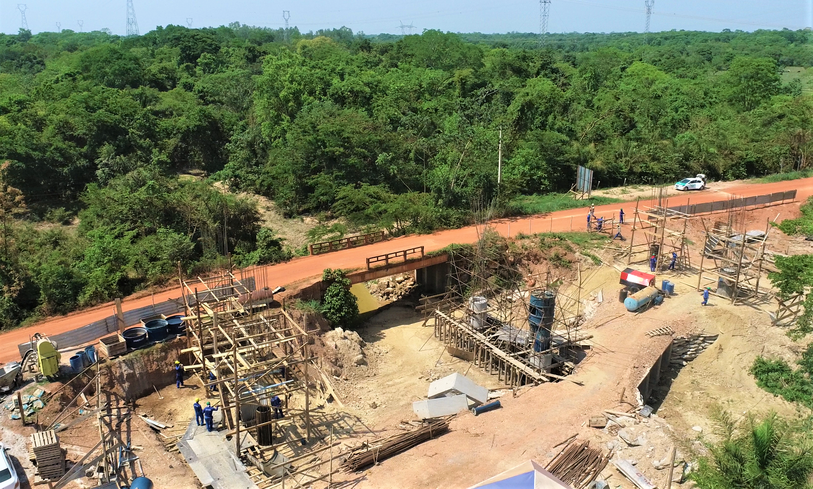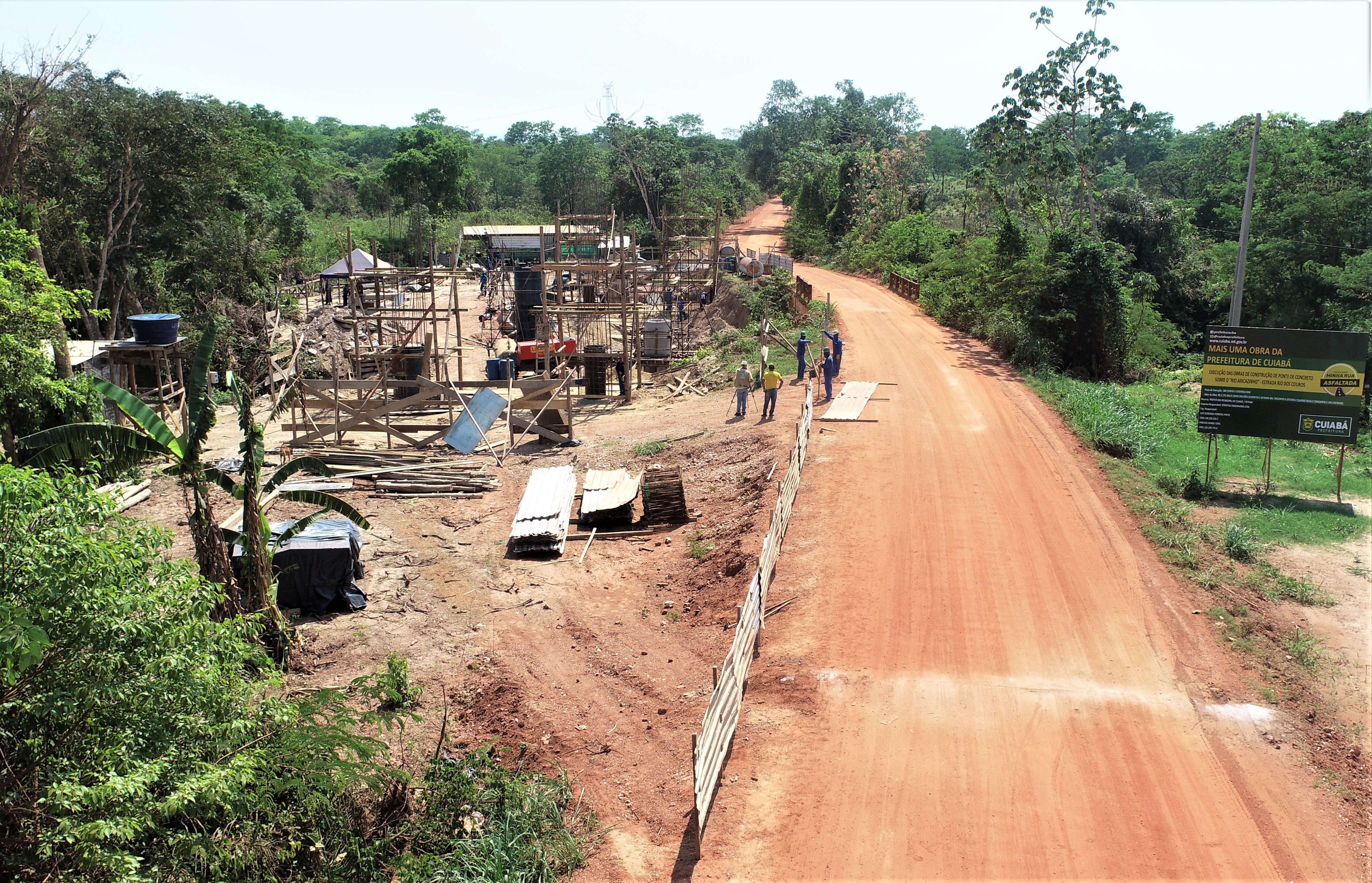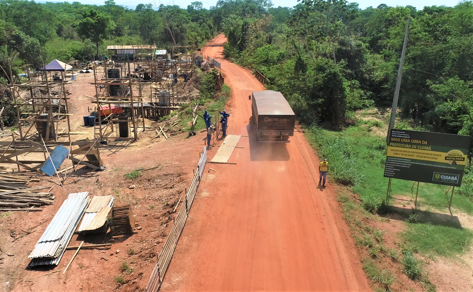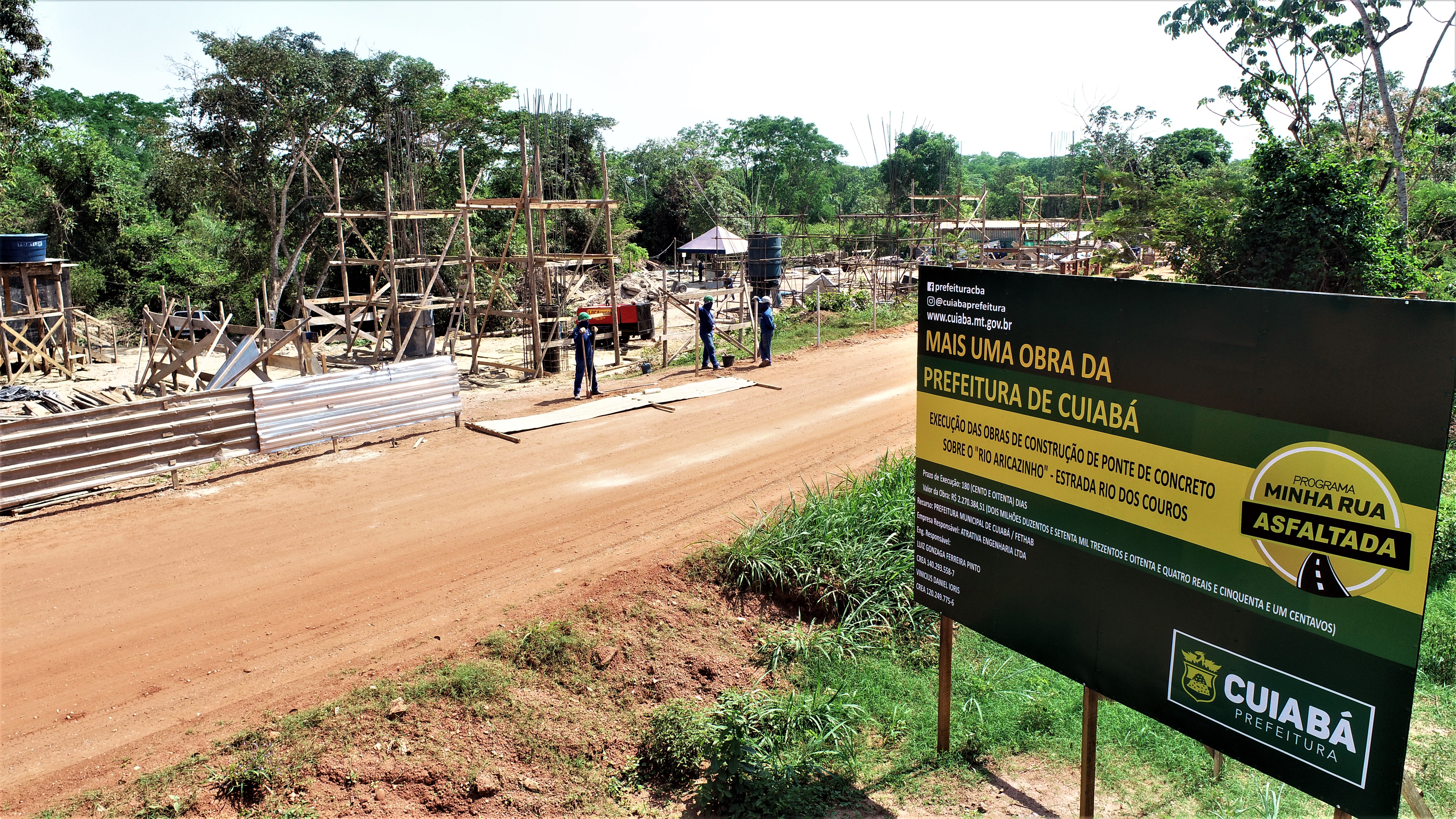 A Secretaria Municipal de Obras Públicas (SMOP), da Prefeitura de Cuiabá, realiza a construção da ponte de concreto sobre o Rio Aricazinho, situada na Estrada do Rio dos Couros, zona rural da capital. A obra, atualmente, concentra-se no estágio de levantamento dos pilares.