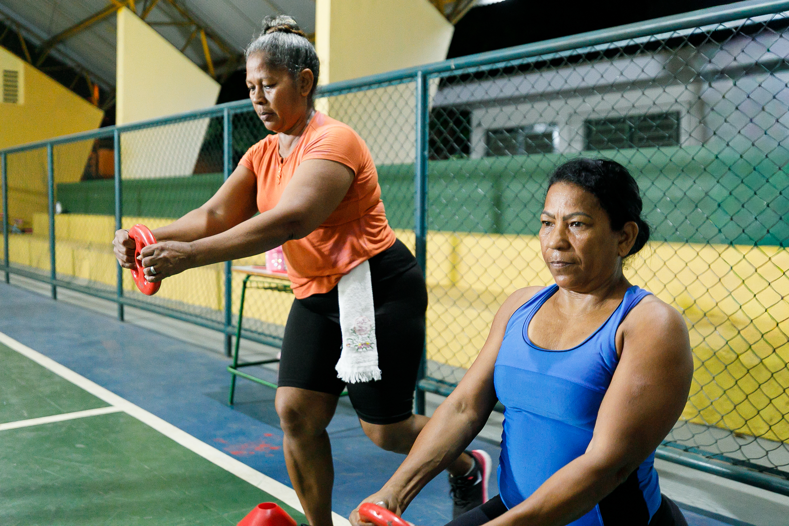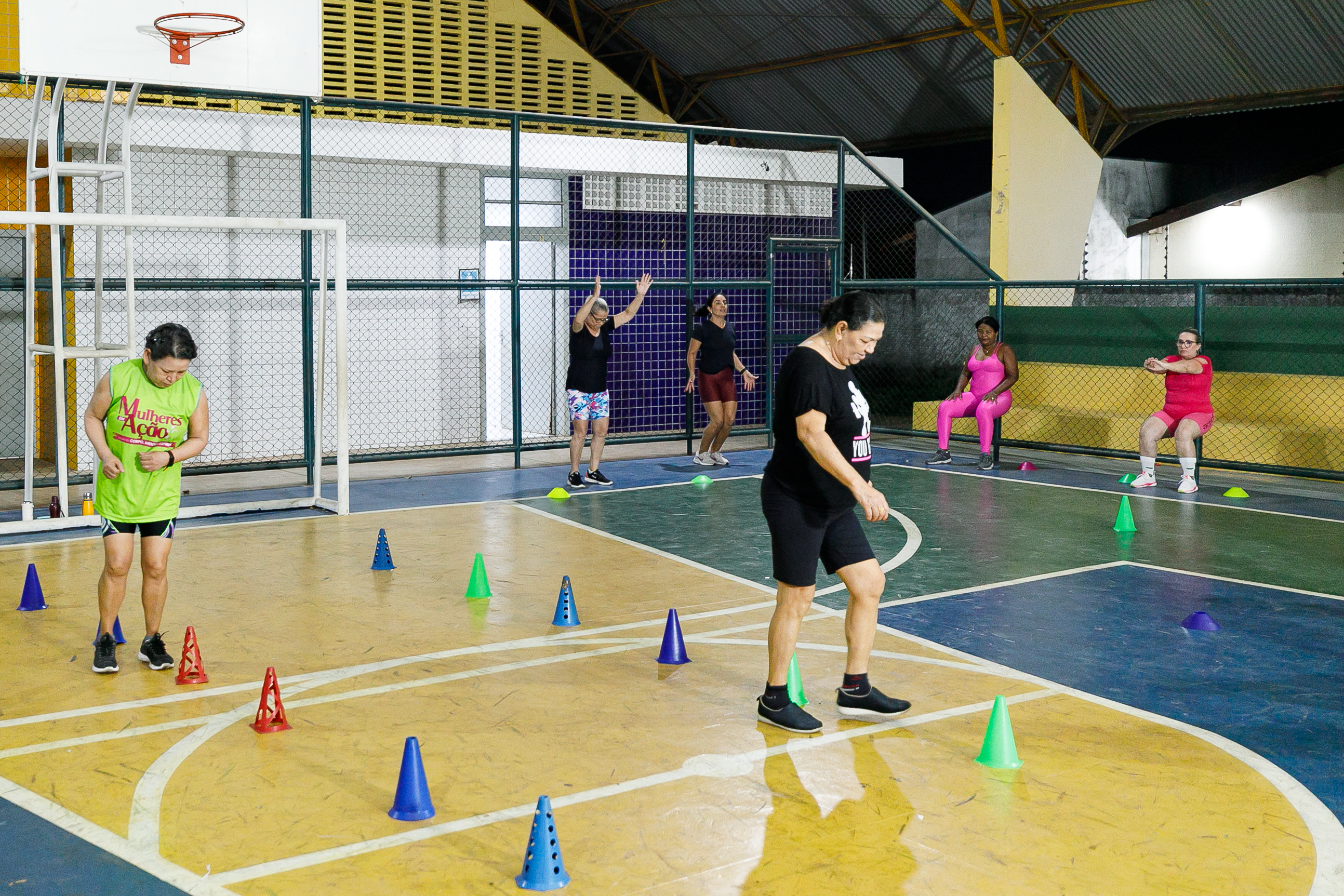 Registro de participantes da aula de funcional, realizada à noite na quadra da EMEB Tereza Benguela, no bairro Jardim Comodoro.