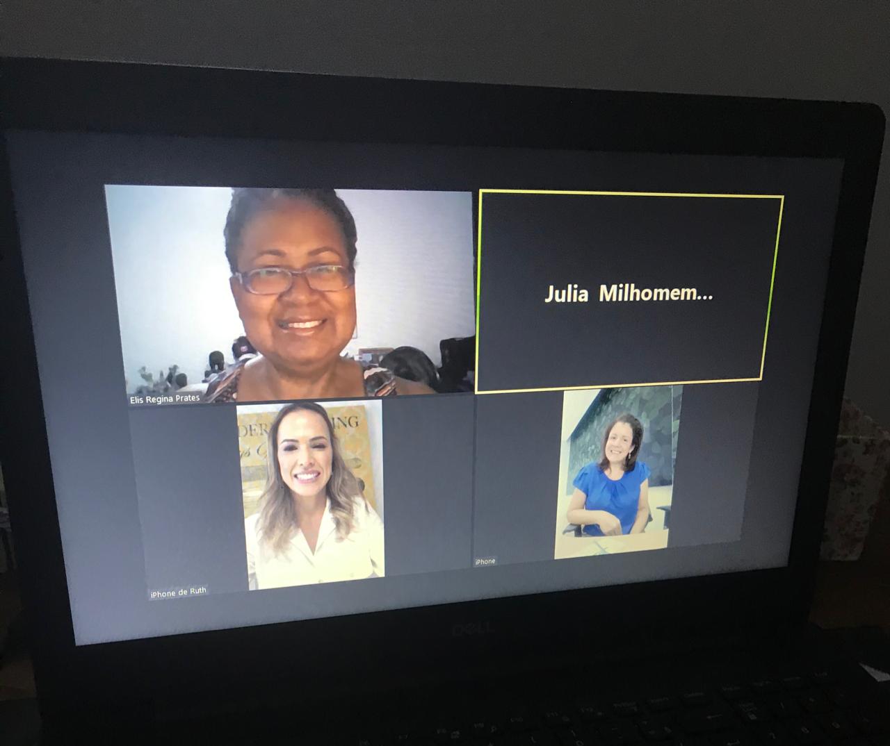 A secretária municipal da Mulher, Luciana Zamproni, participou de uma reunião por videoconferência com a juíza Ruth Duarte Menegatti, da Vara de Violência Doméstica de Adamantina, São Paulo, e com a diretora de Execução de Políticas para as Mulheres, Elis Regina Prates, na sexta-feira (24), para apresentar a elas o trabalho desenvolvido no Espaço de Acolhimento da Mulher, inaugurado no último dia 16 de julho, no Hospital Municipal de Cuiabá (HMC).