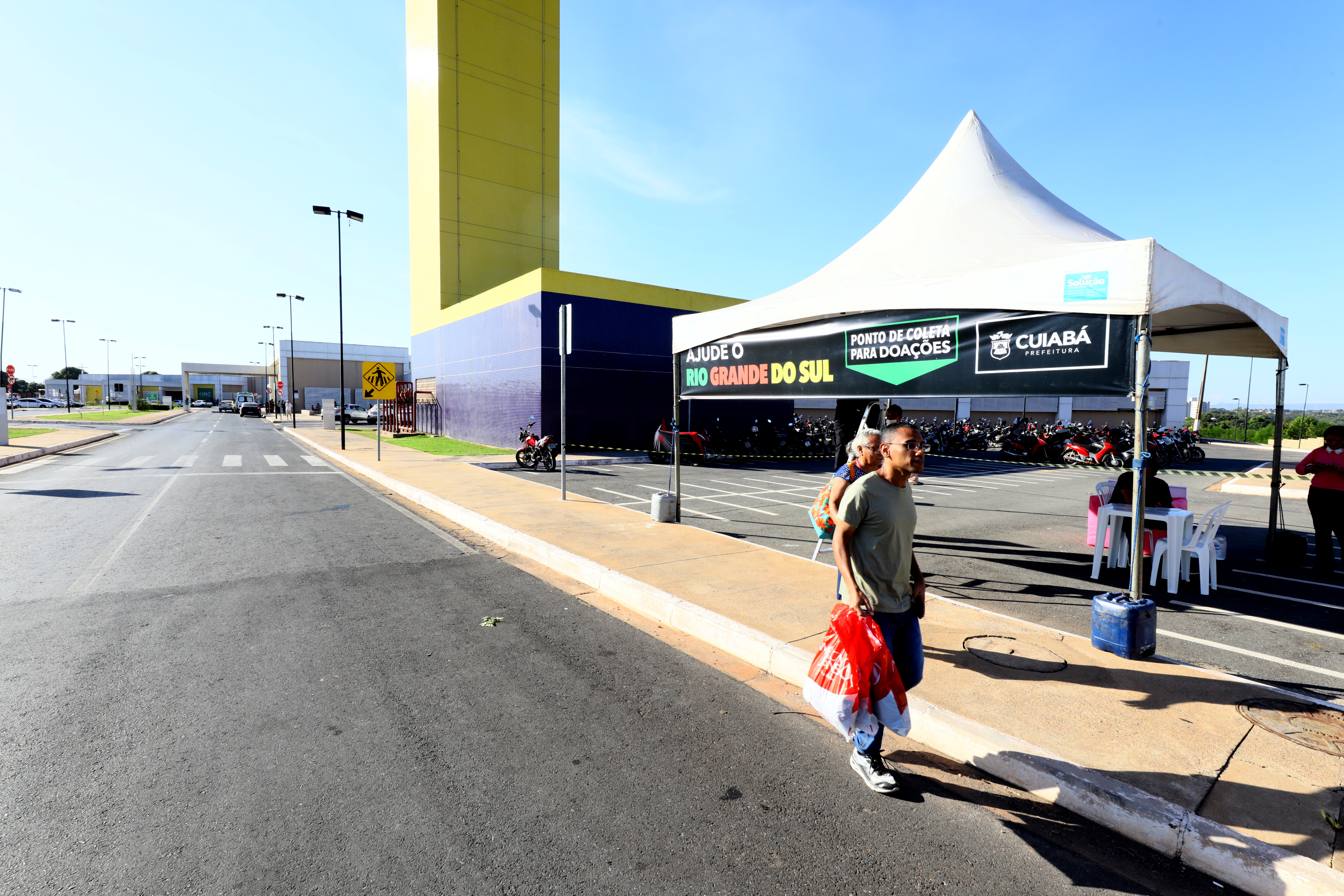A Prefeitura de Cuiabá, por meio da equipe da Defesa Civil de Cuiabá, vinculada à Secretaria Municipal de Ordem Pública, com apoio da Empresa Cuiabana de Zeladoria e Serviços Urbanos (Limpurb), atua na logística para que os donativos cheguem com mais rapidez às vítimas. A ação visa amenizar o sofrimento das famílias desabrigadas e desalojadas, em decorrência da catástrofe climática causada pelo grande volume de chuvas no estado do Rio Grande do Sul. Ao todo, em quatro dias de ação, o ponto já passou por duas coletas.