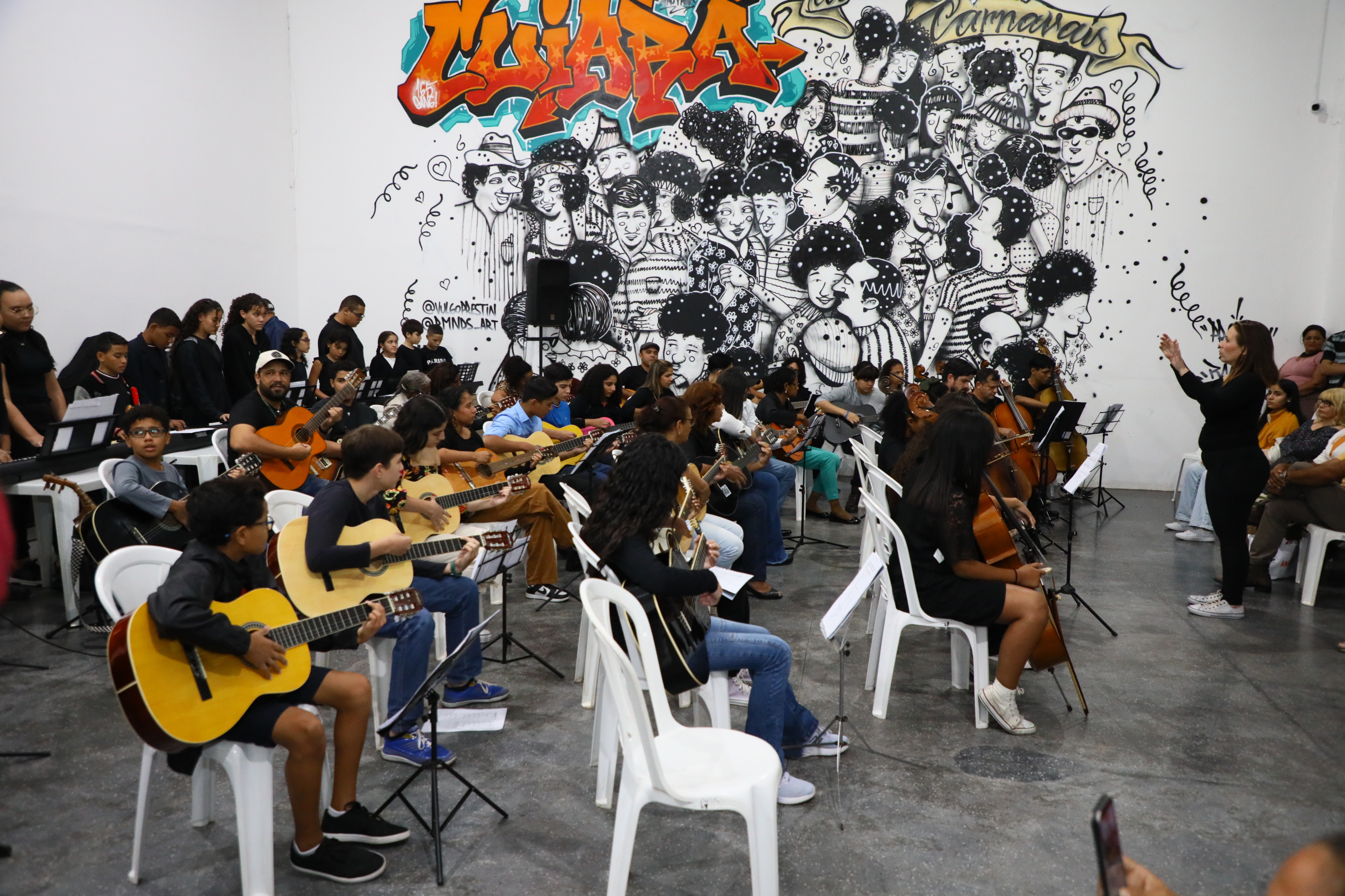 A música, segundo ela, faz parte da família, e o filho Joaquim se interessou em participar do projeto Cuiabá Sonoro. Autodidata, ele queria aprimorar seus conhecimentos com mais técnica. Hoje, além de tocar, ele também canta, o que é motivo de orgulho para a mãe, que é uma das apoiadoras não só do filho, mas também da afilhada. “Através da música a gente pode se expressar”, sentenciou a expectadora.