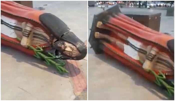 A escultura foi retirada após ter sido encontrada danificada, com uma das mãos e parte da estrutura comprometidas. A equipe da prefeitura investiga se o dano foi causado por vandalismo ou pelas fortes tempestades que atingiram a cidade nos últimos dias.