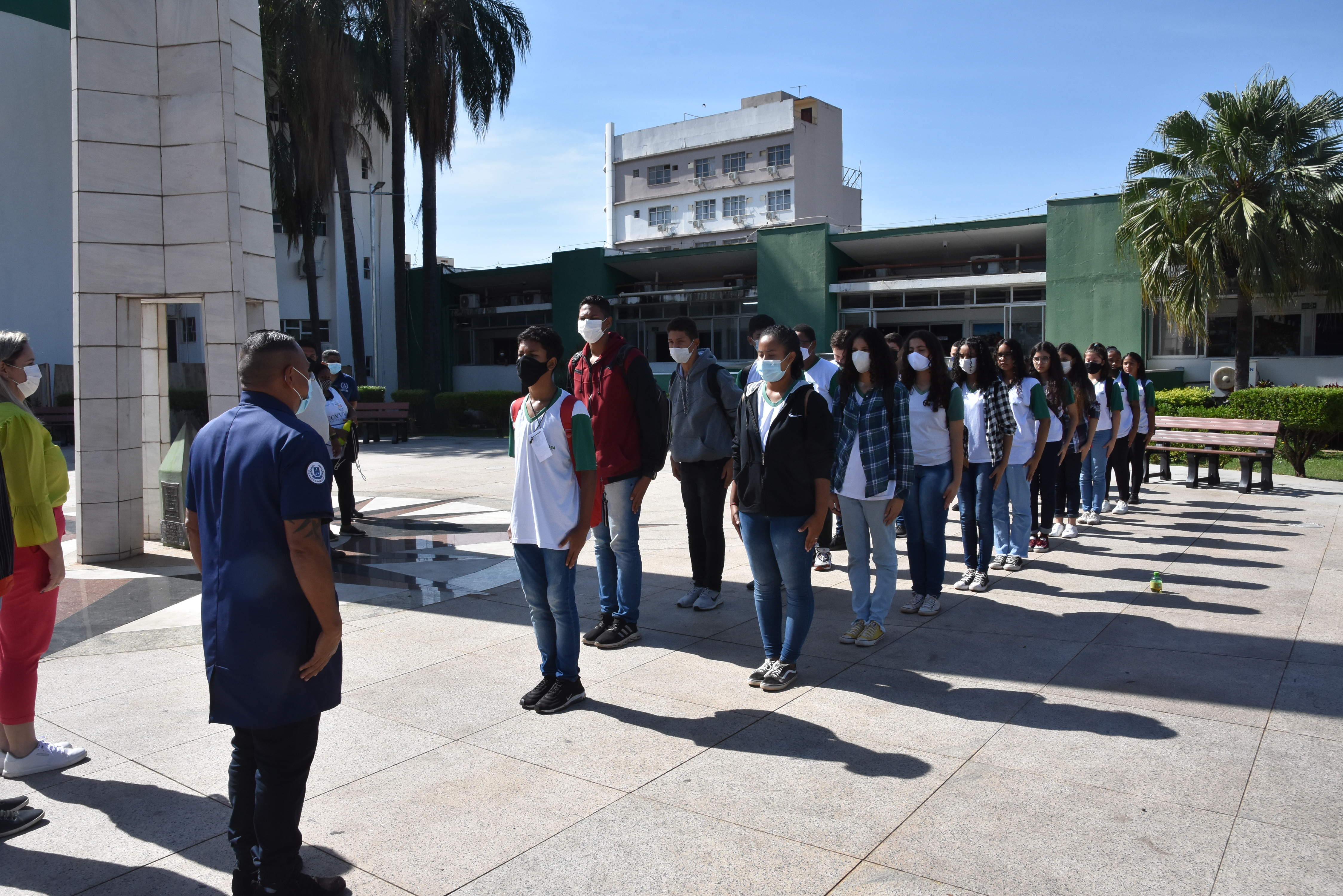 Os estudantes da ECIMC Prof.ª Maria Dimpina Lobo Duarte, localizada no bairro Coxipó da Ponte, na capital, foram acompanhados de um professor, o monitor Sgt. Marcílio Alves de Almeida, o assessor pedagógico da Secretaria Municipal de Educação, Edmilson Moraes, e servidores da Secretaria de Ações Institucionais do Poder Legislativo.