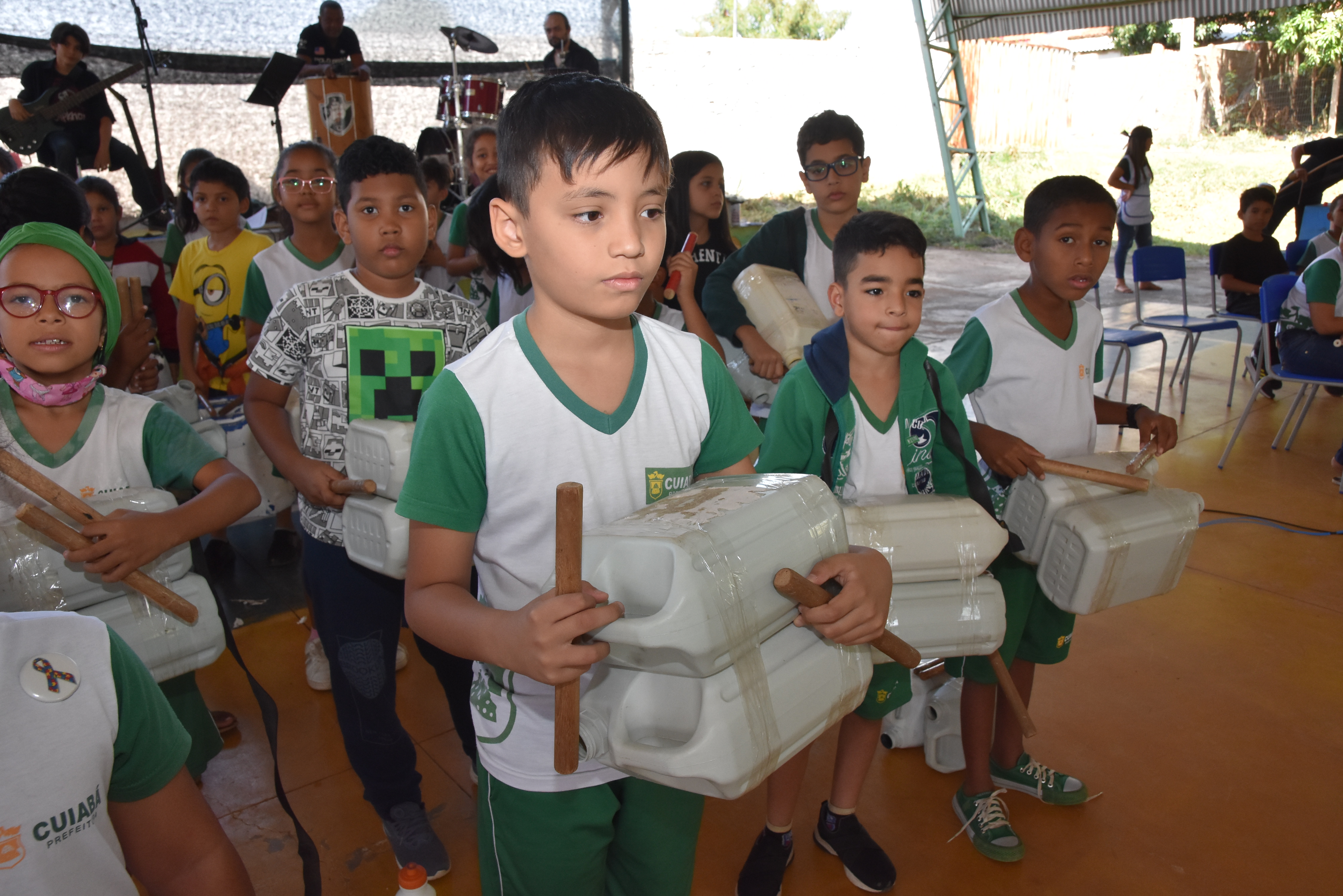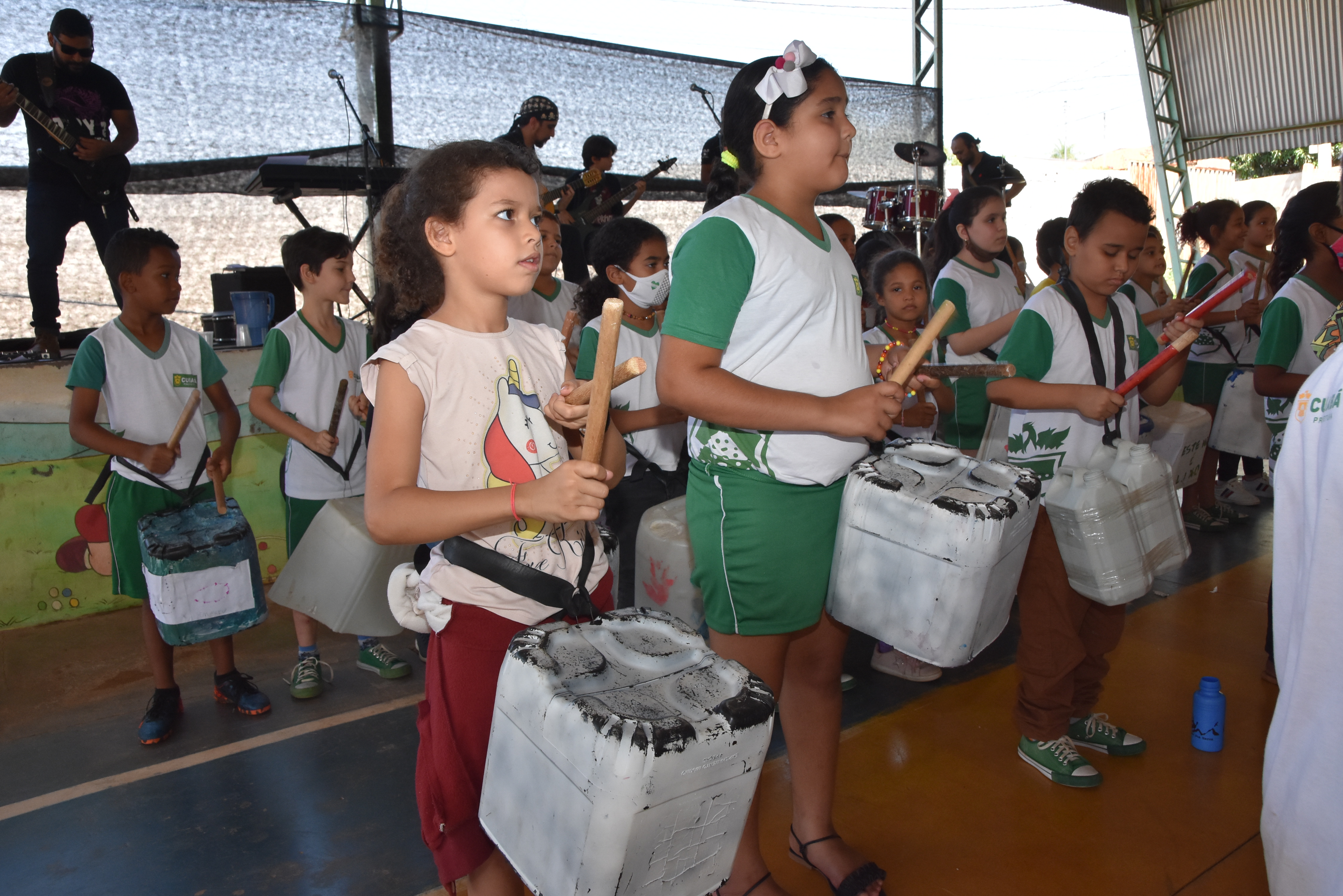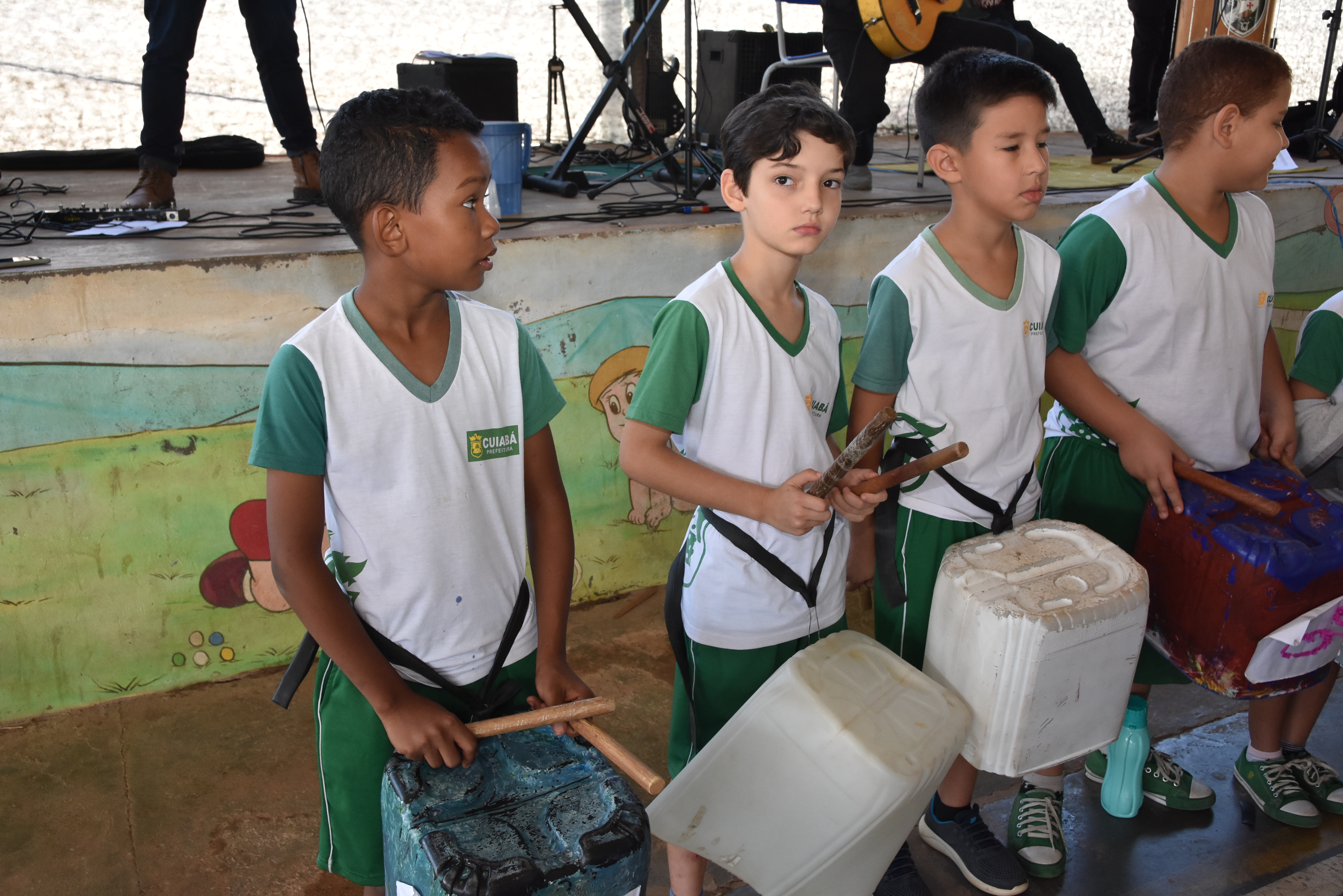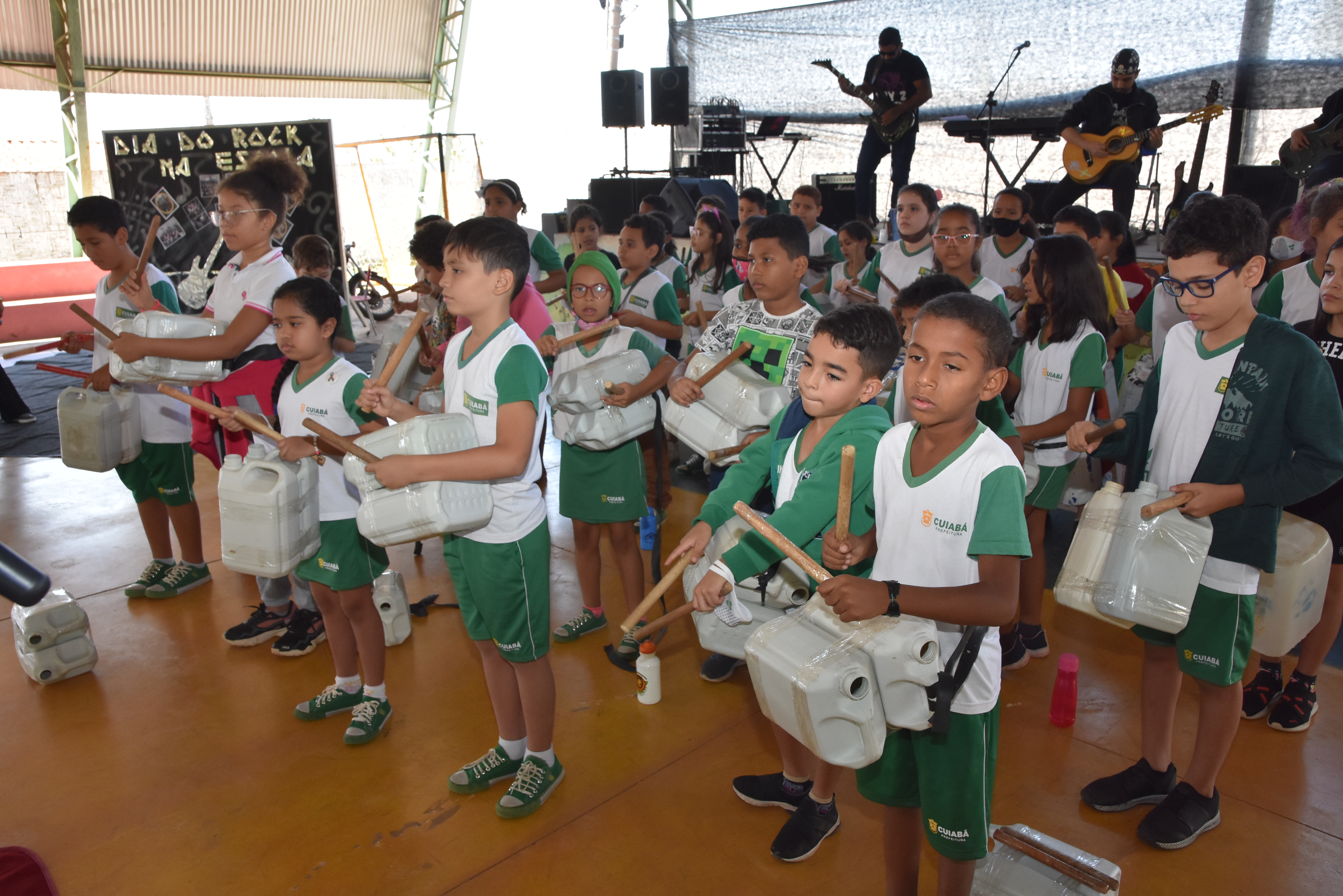 Estudantes do período matutino da Escola Municipal de Educação Básica (EMEB) Ten. Octacílio Sebastião da Cruz, localizada no bairro CPA III, apresentaram nesta segunda-feira (22), o resultado de um trabalho que estão desenvolvendo desde o primeiro semestre. O Projeto "Dia do Rock na Escola" reuniu cerca de 300 alunos, da Educação Infantil até o 4º Ano do Ensino Fundamental, ao som da banda de rock Ponte de Ferro.