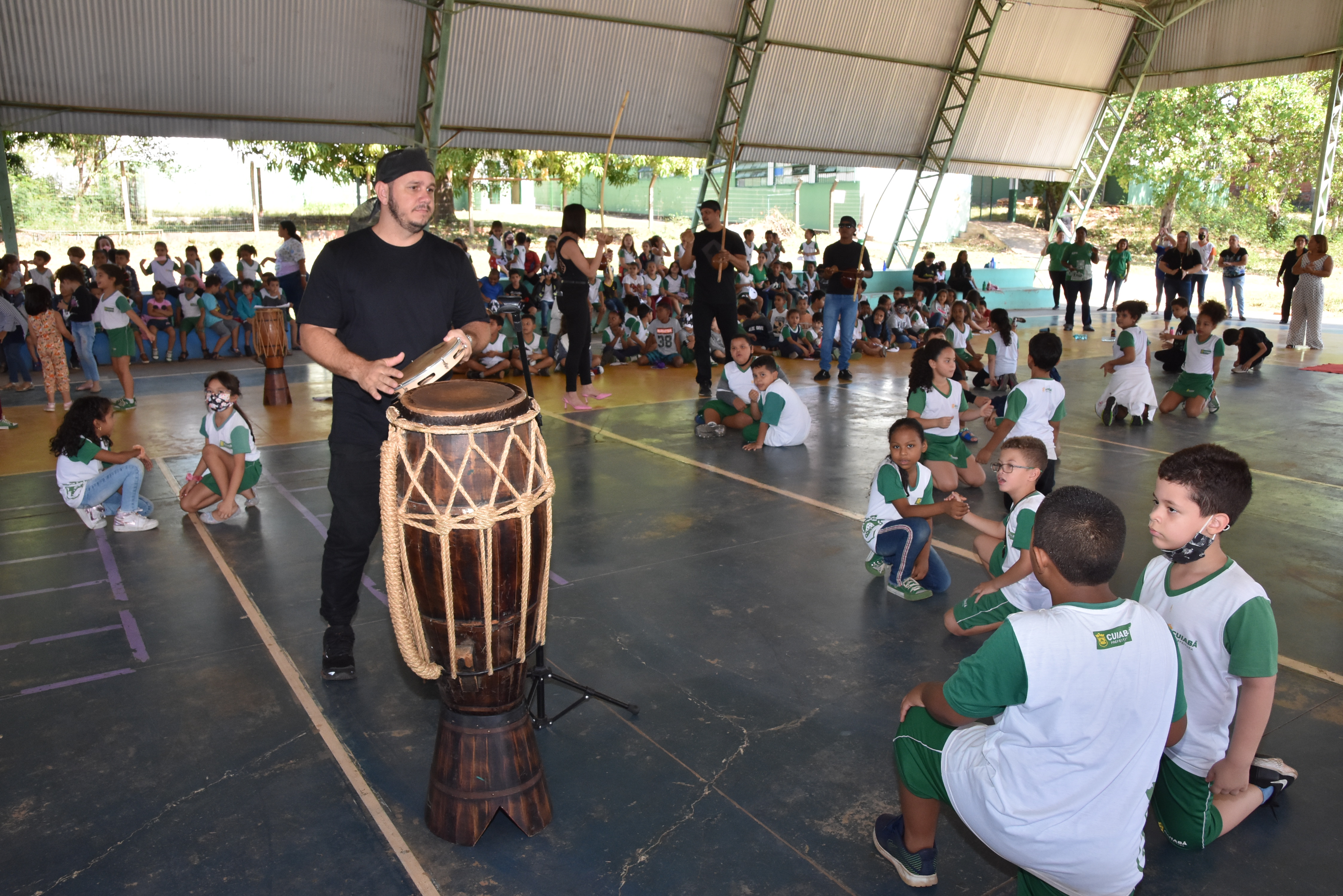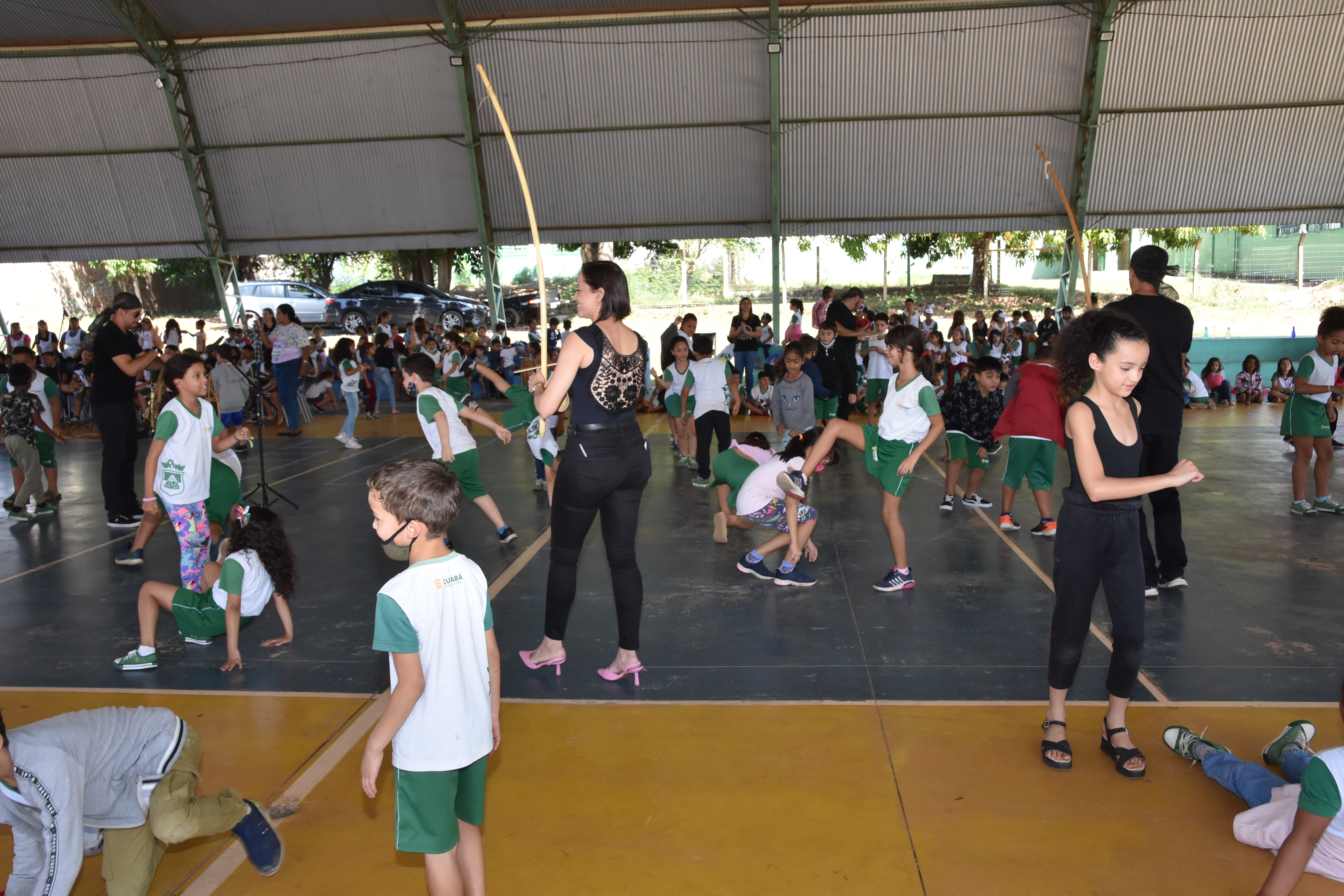 A coordenadora pedagógica da unidade escolar, Claudenir Izabel Silva Gonsales, explicou que o Projeto foi desenvolvido pelos professores de Educação Física e de Arte. “O Projeto envolveu várias etapas de trabalho pedagógico com os estudantes, em sala de aula e em oficinas de capoeira e maculelê, flauta doce, percussão e coral. Hoje, a culminância é um dia de festa”, contou Claudemir.