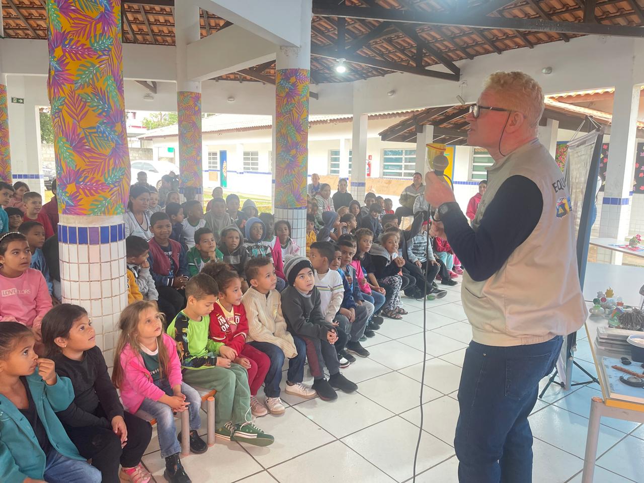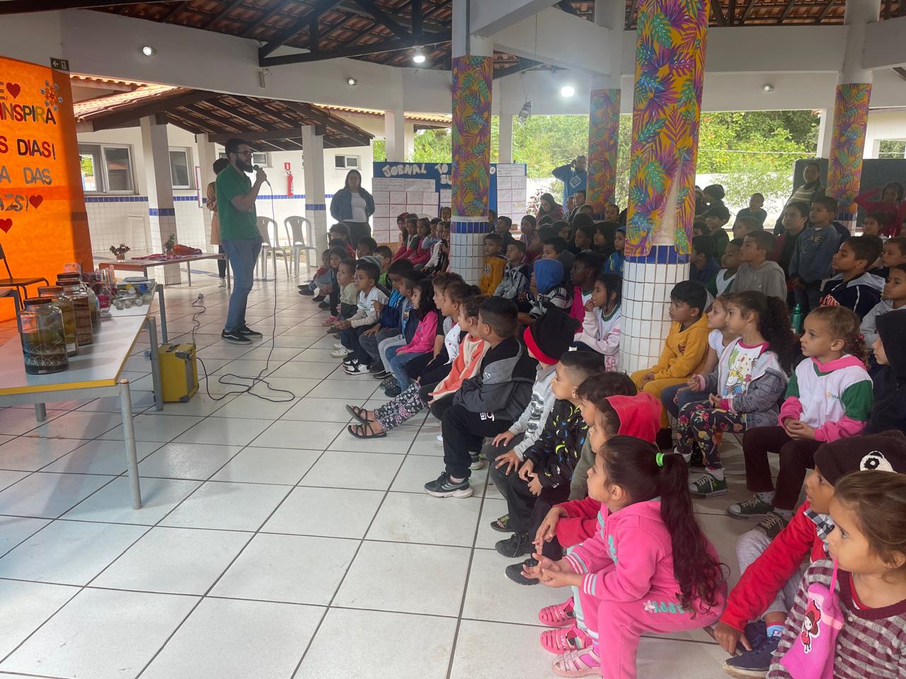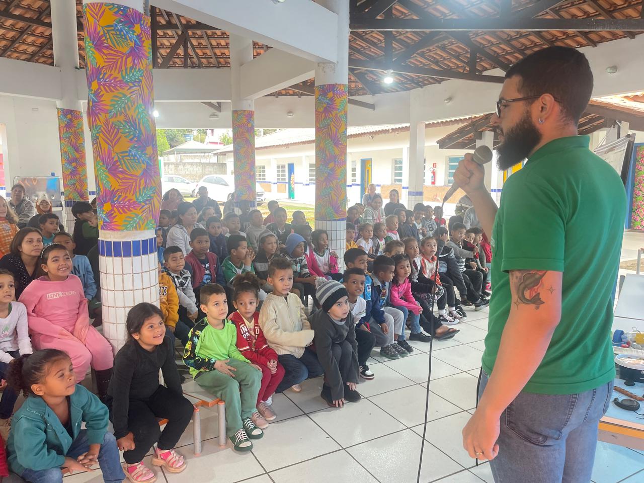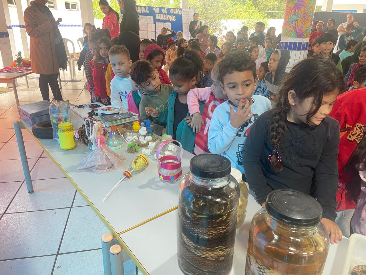 Cerca de 119 estudantes da Pré-Escola e dos 1º, 2º, 3º e 4º anos, além de 20 profissionais que atuam na unidade educacional, participaram da atividade, que também incluiu orientações sobre cuidados com animais peçonhentos. “Os animais peçonhentos, como serpentes e escorpiões, são de interesse médico porque podem causar acidentes graves. A primeira recomendação é nunca manejar esses animais. Ao verificar a presença deles, deve-se chamar um especialista ou o Corpo de Bombeiros para fazer a remoção do animal de forma segura. Estamos aqui para ensinar as crianças como proceder e explicar que matar animais silvestres é crime ambiental”, disse o biólogo Paulo Pazóti.