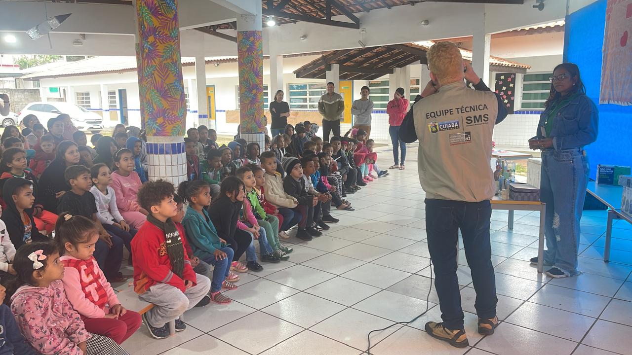 Onze Centros Educacionais Infantis Cuiabanos (CEIC), Centros Municipais de Educação Infantil (CMEI) e Escolas Municipais de Educação Básica (EMEB) já receberam a equipe do Centro de Controle de Zoonoses. Durante a palestra, as crianças aprenderam que combater o mosquito é uma tarefa séria, mas simples, e que é possível evitar os criadouros mantendo os ambientes e quintais limpos, evitando o acúmulo de lixo, eliminando água parada, pneus, tampinhas e outros recipientes, fechando as caixas d’água e colocando o lixo em sacos plásticos fechados.