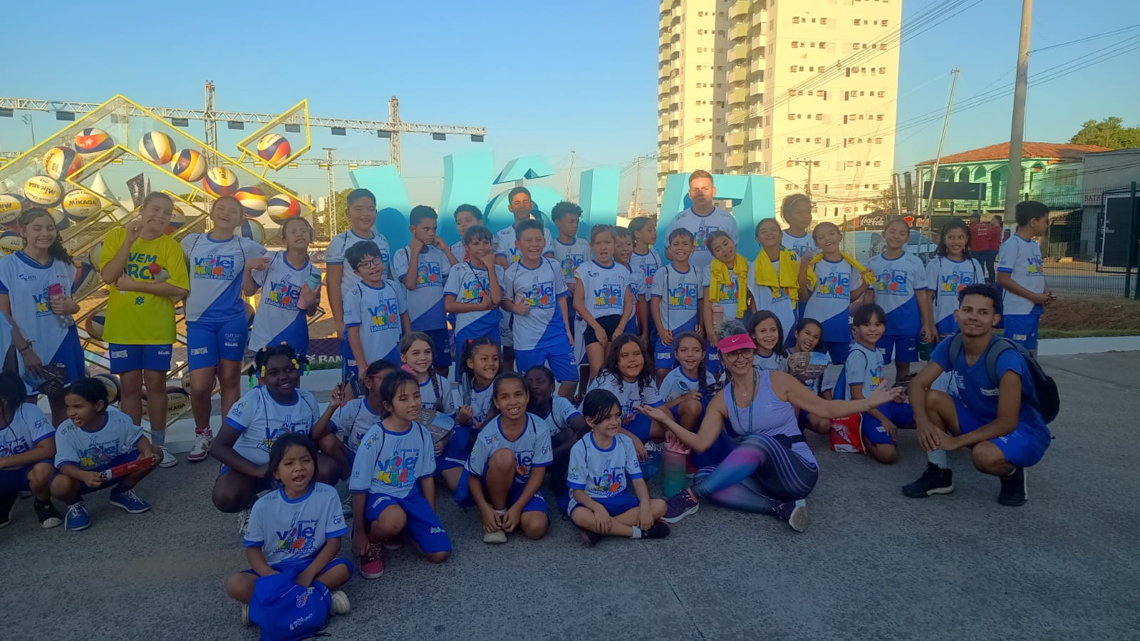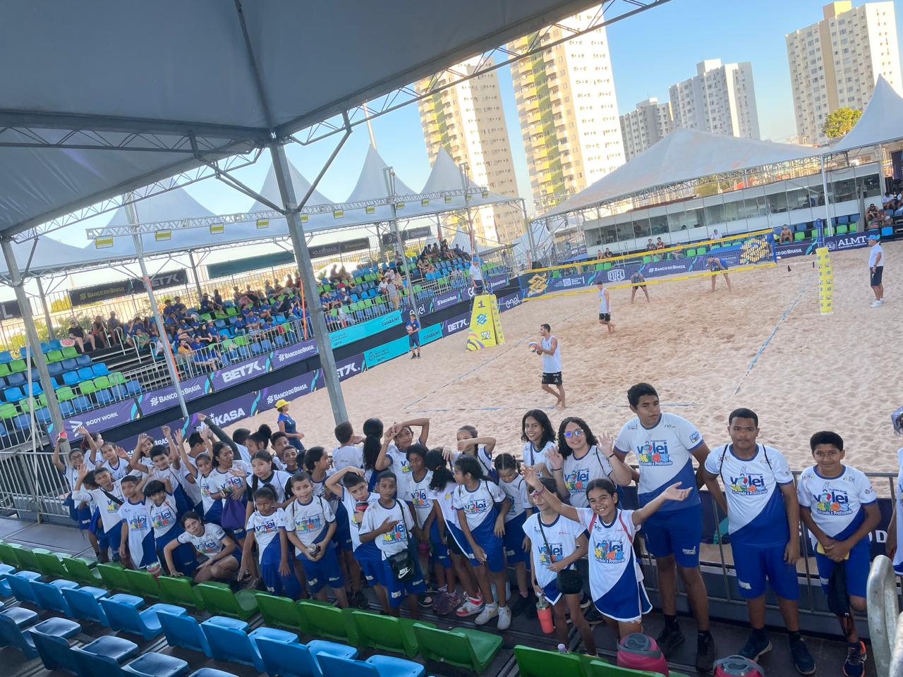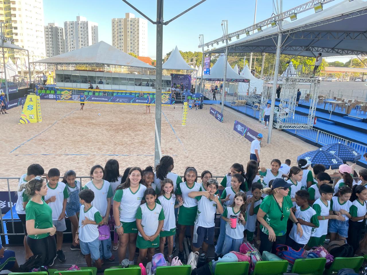 Entre os estudantes, na faixa etária de 6 a 13 anos, 300 participam do Projeto Vôlei Kids. O convite para assistirem aos jogos partiu da Federação Mato-grossense de Vôlei. Alguns deles nunca haviam acompanhado um evento de vôlei de praia.