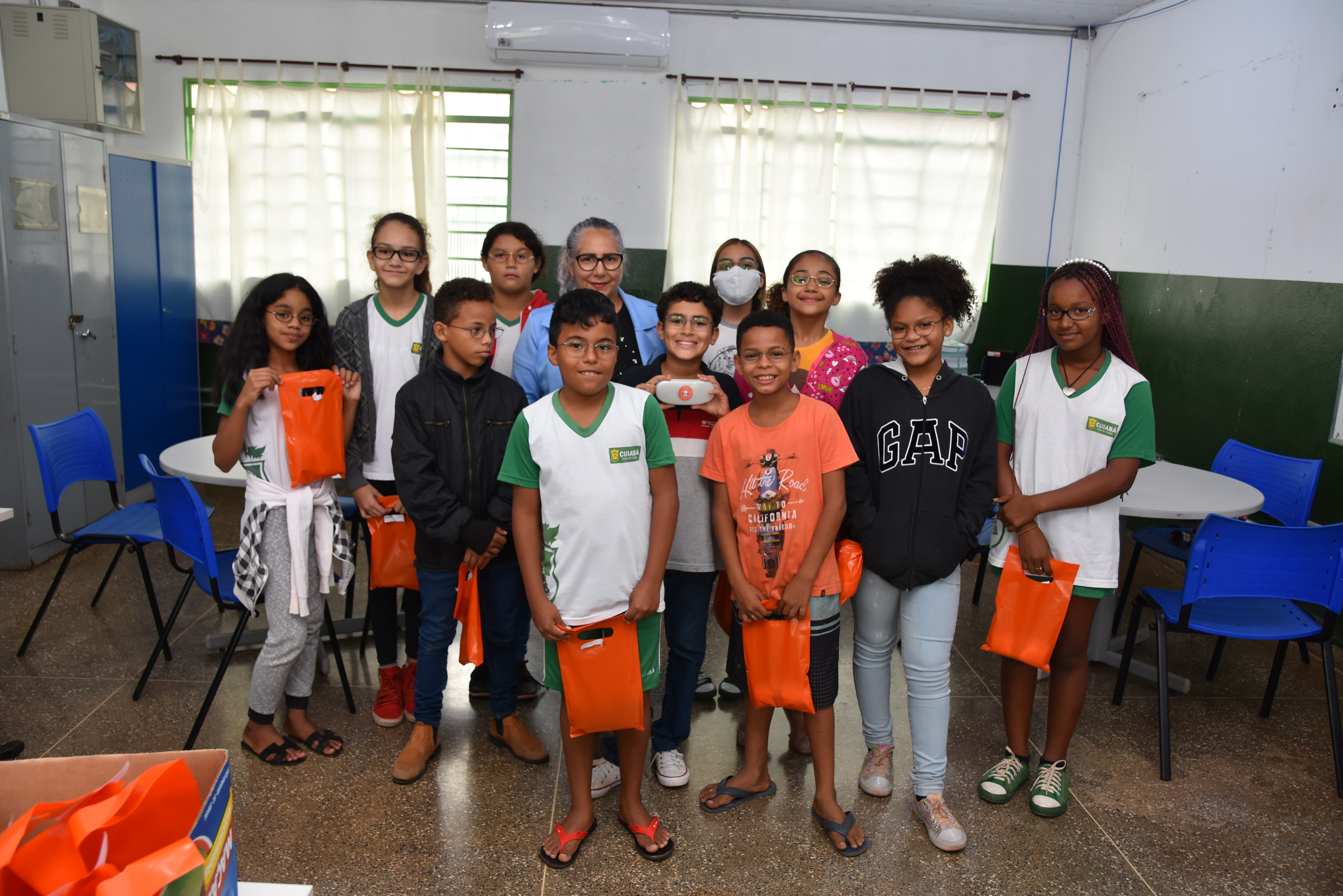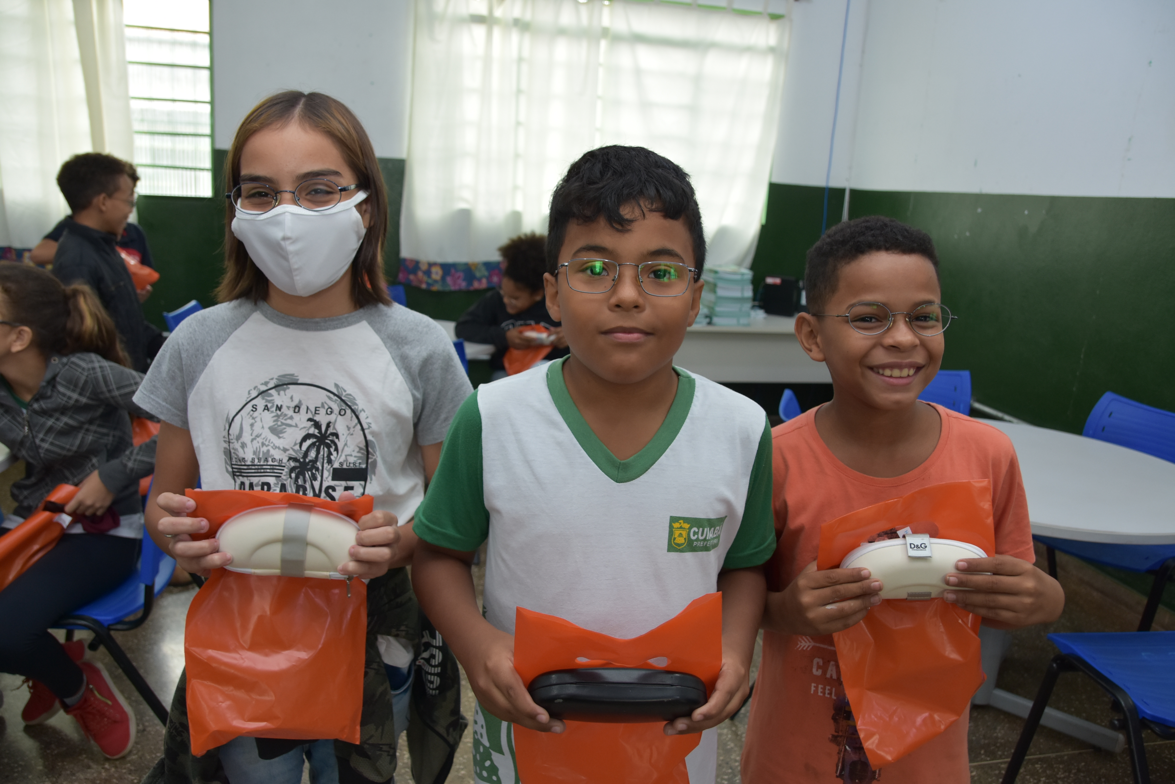 Estudantes da Escola Municipal de Educação Básica (EMEB) Deputado Ulisses Silveira Guimarães, localizada no bairro Ouro Fino, Regional Norte, atendidos pelo Projeto Enxergar é Humanizar, receberam nesta segunda-feira (13), os seus óculos. Idealizado pela primeira dama Márcia Pinheiro em 2019 e, após ter sido suspenso em 2020 e 2021, em decorrência da pandemia, o projeto foi retomado este ano, visando atender os estudantes das series iniciais.