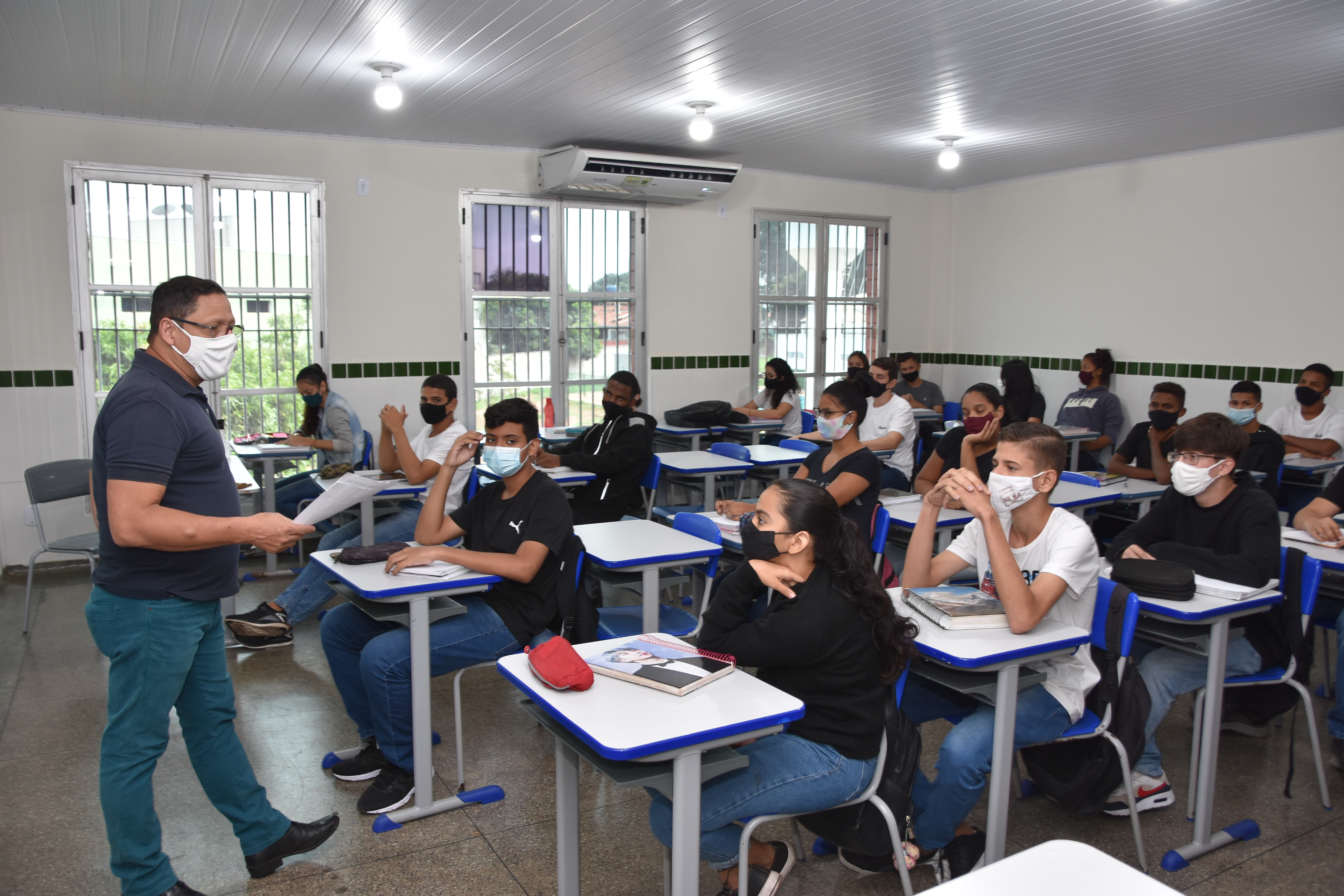 Estudantes da rede pública municipal de ensino estão retornando de forma escalonada, a partir desta segunda-feira (8), às atividades 100% presenciais nas escolas. Até o dia 22 os mais de 54 mil alunos atendidos nas 167 unidades de ensino do Município, da Educação Infantil, Ensino Fundamental e Educação de Jovens e Adultos (EJA) estarão de volta as salas de aulas. Nesta segunda-feira foi a vez dos estudantes das turmas do 5º e 9º anos.
