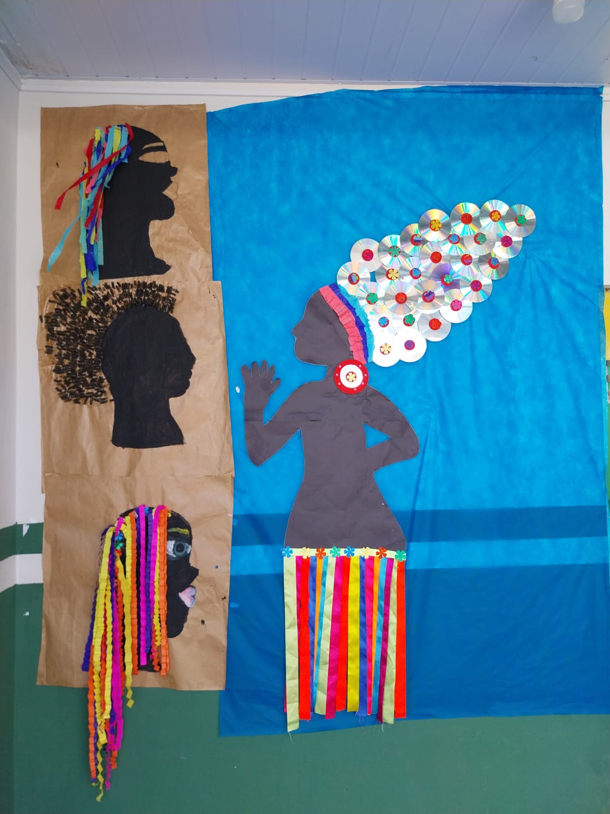 Uma das inovações do trabalho escolar foi o uso de materiais recicláveis para produzir rostos de mulheres e jovens negros. Os estudantes vestiram roupas de origem africana, pintaram os rostos, contribuiram para a produção de materiais de cartolina em sala. E, ainda, promoveram um desfile no pátio escolar exibindo cartazez com mensagens de valorização ao povo africano.