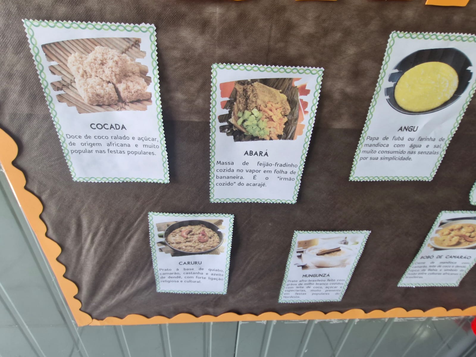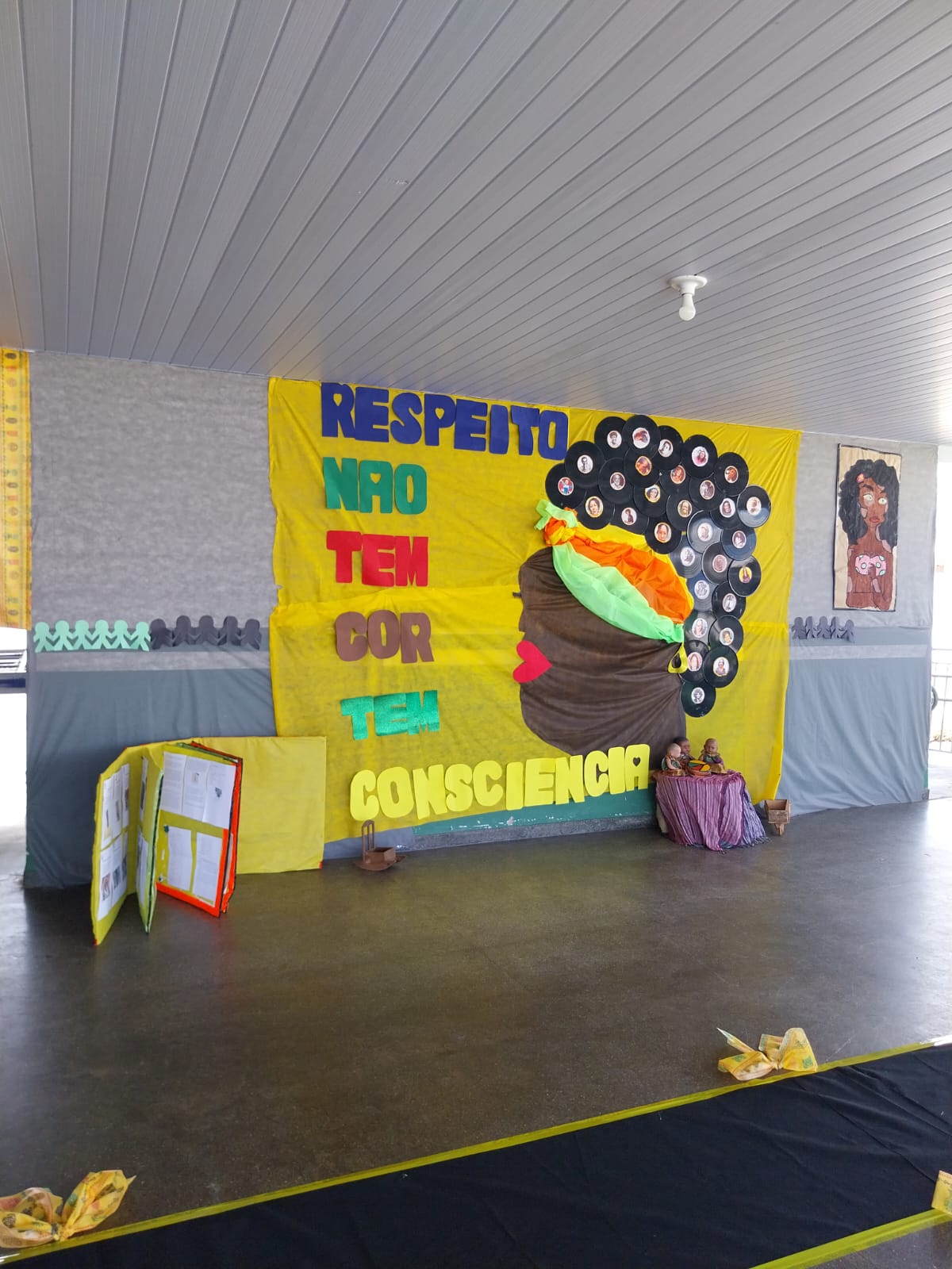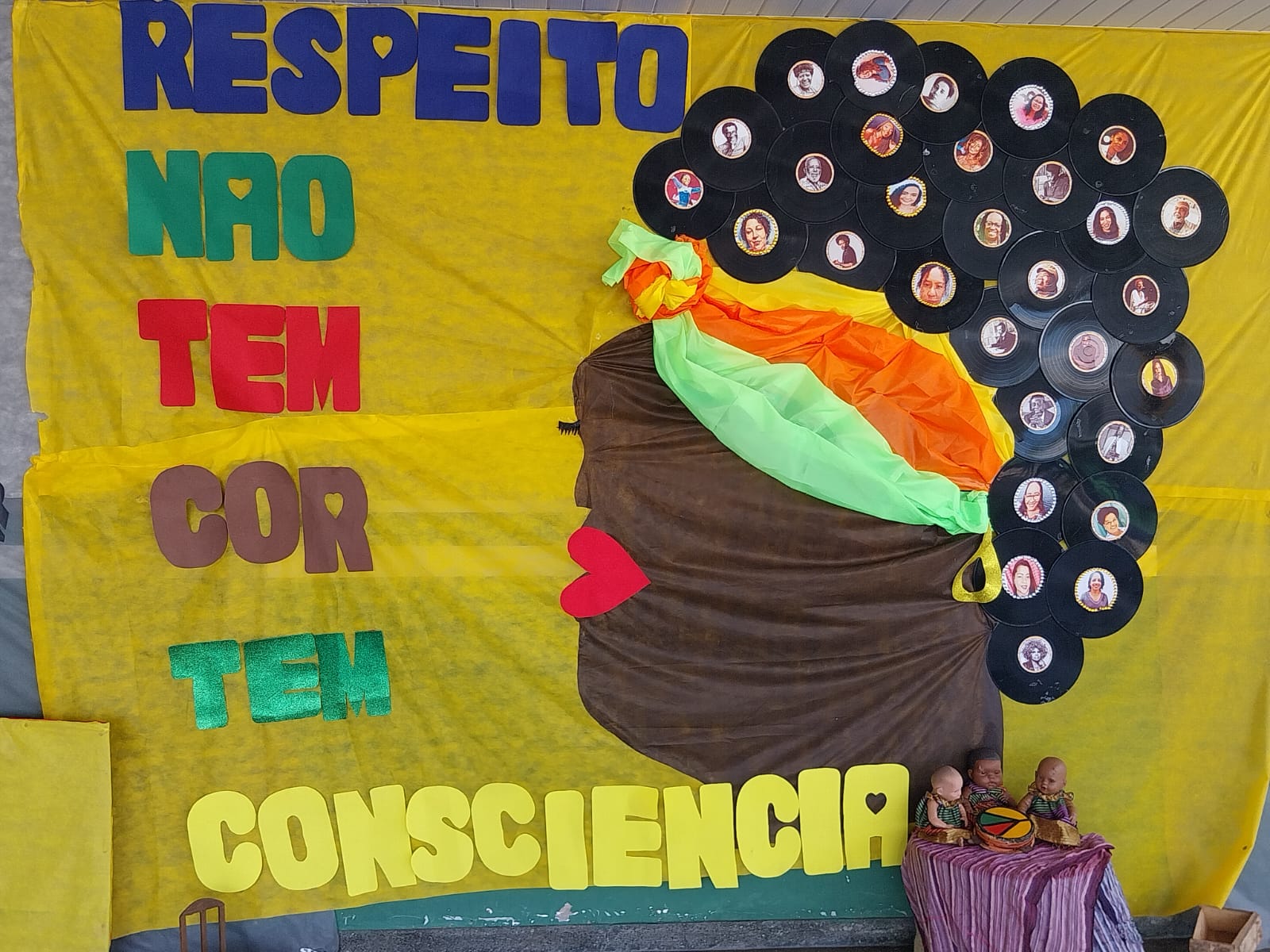 O trabalho foi produzido por mais de 100 estudantes, sempre monitorado pelos professores, coordenadoria e direção escolar. No pátio da escola, havia cartolinas detalhando a culinária afro-brasileira. Nas salas de aula, cartolinas, exibiam o rosto de crianças negras. Em uma cartolina maior no pátio da escola, estava montada com faixas corolidas e peças de discos de música a forma do rosto de uma mulher, em tamanho maior, com letras maiúsculas que formavam a palavra "Respeito não tem cor, tem consciência".