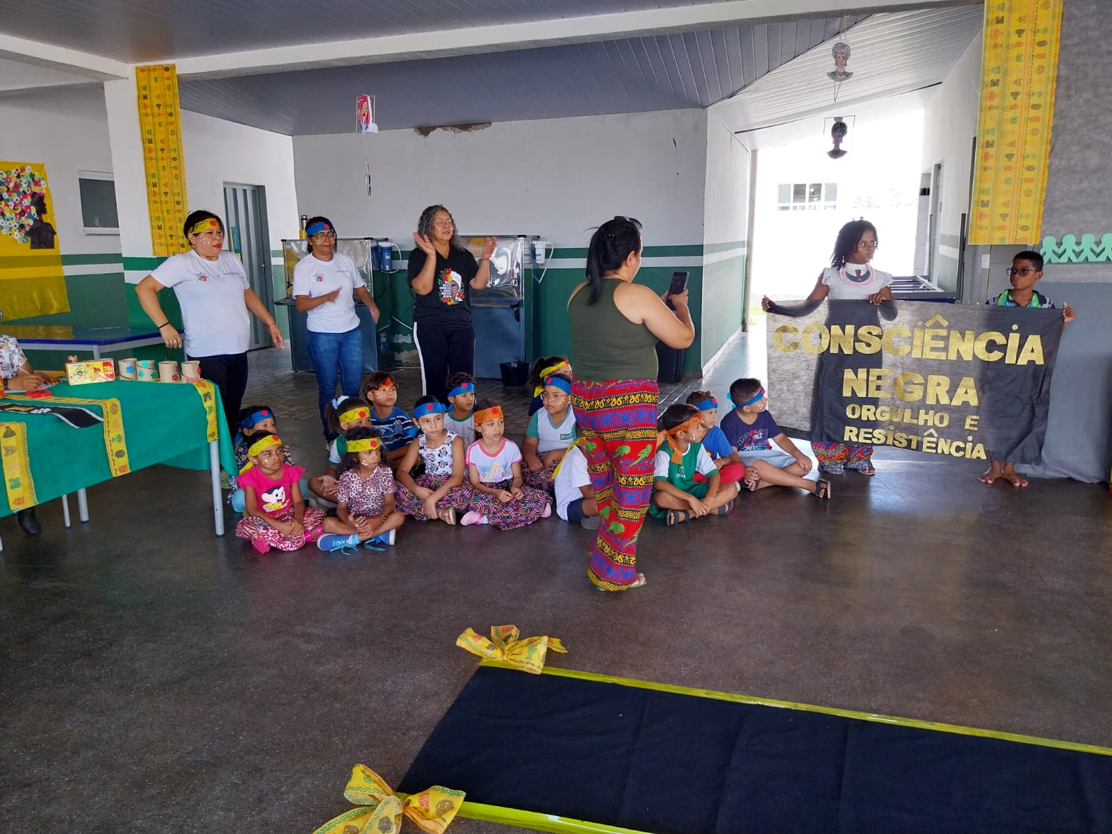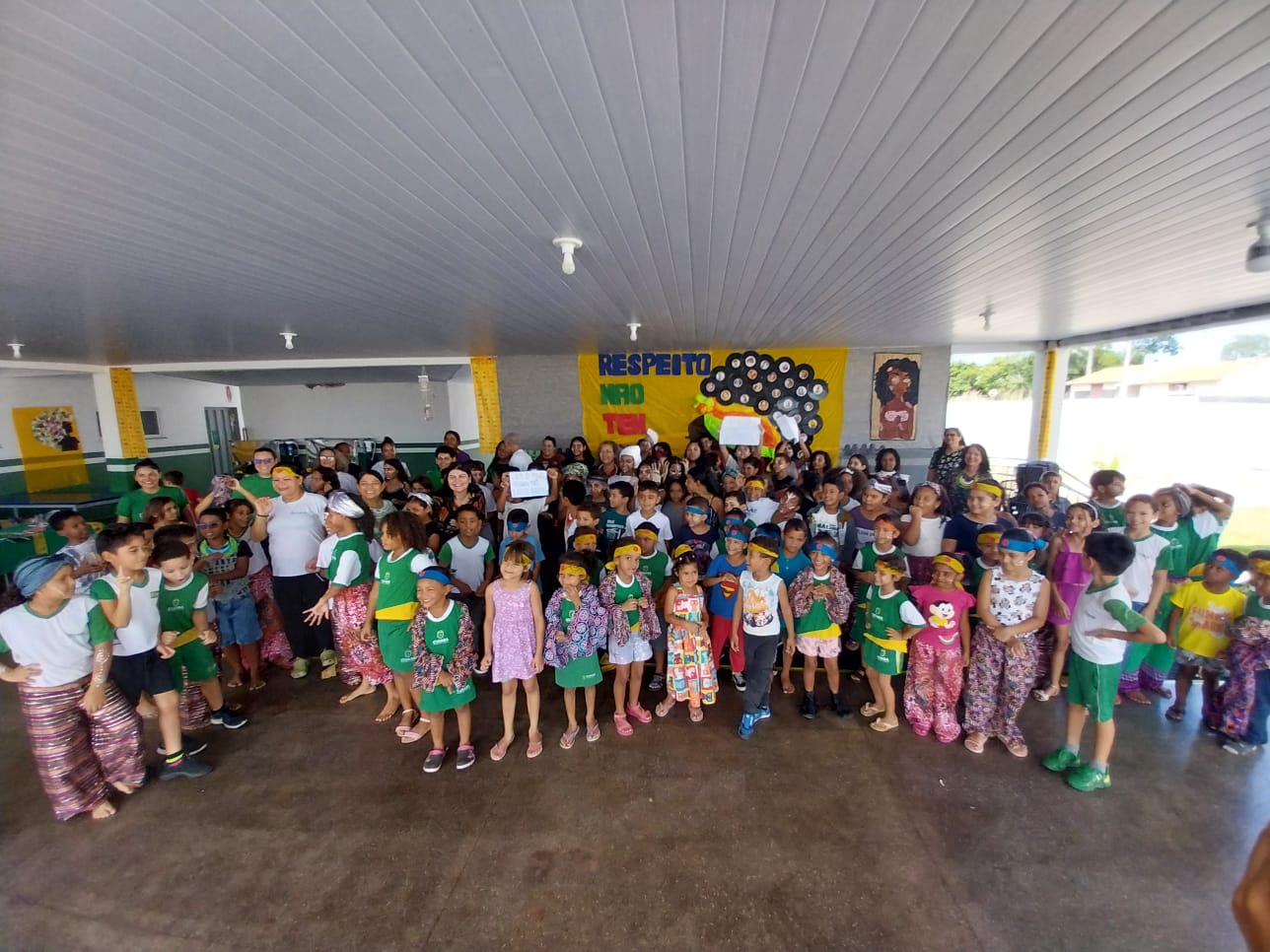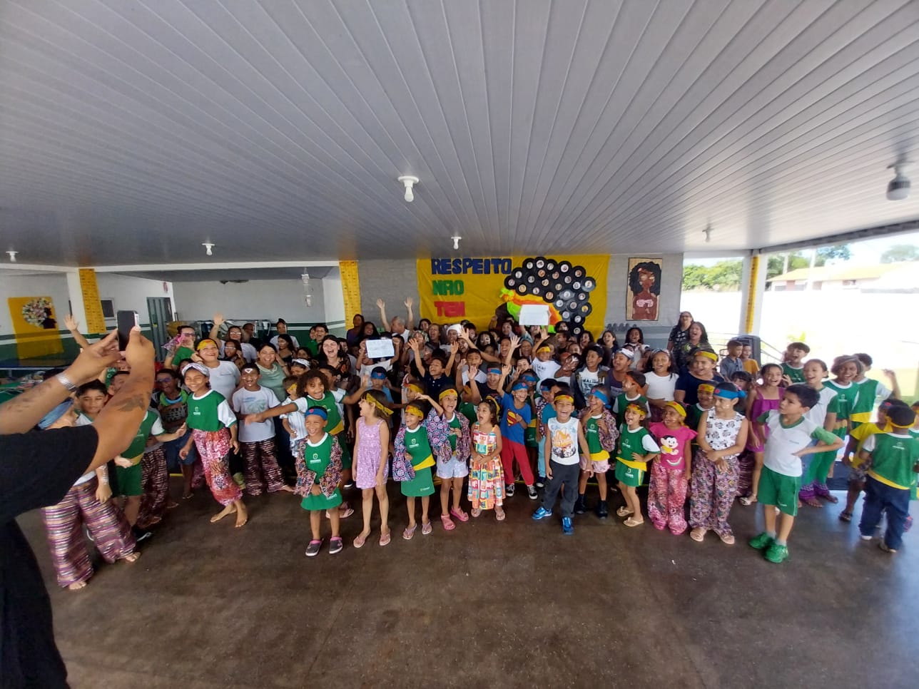 Estudantes matriculados no pré-I ao 5º da Escola Municipal de Educação Básica (EMEB), Profª Lidioliria Santana, localizada nno bairro Residencial Baracat, participaram na sexta-feira (28) de um grande ato de trabalho de conclusão de tarefas escolares destinada a consciência negra e influência da África na cultura brasileira.