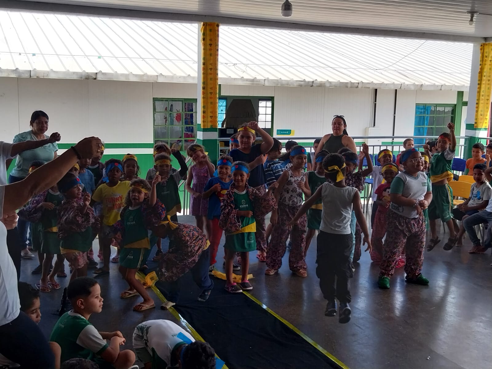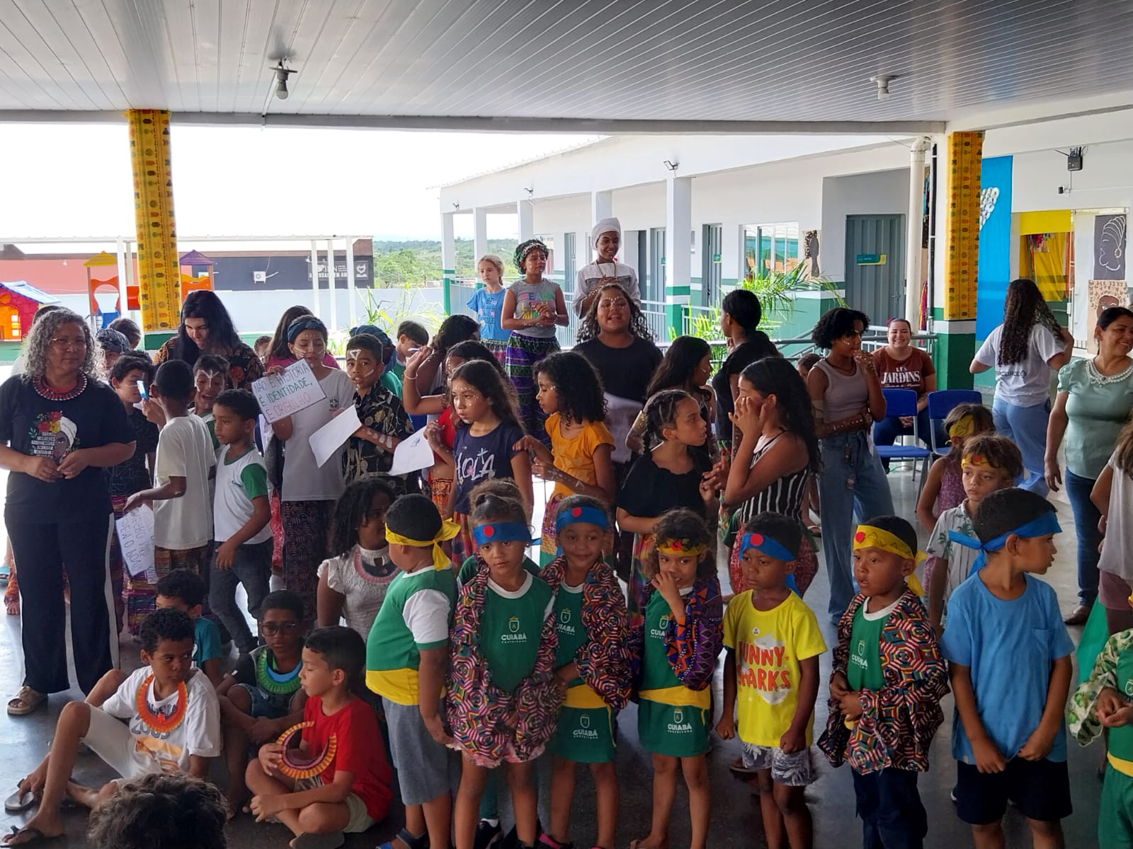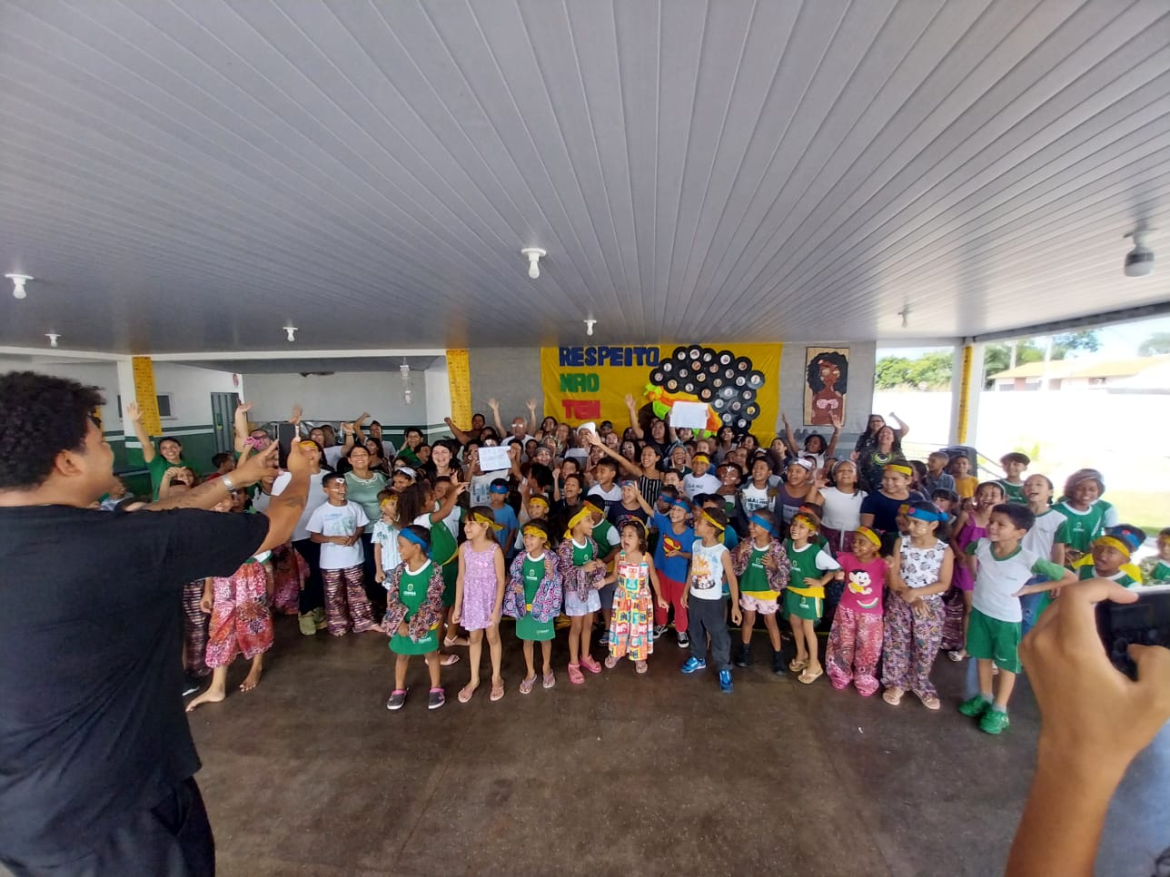 Estudantes matriculados no pré-I ao 5º da Escola Municipal de Educação Básica (EMEB), Profª Lidioliria Santana, localizada nno bairro Residencial Baracat, participaram na sexta-feira (28) de um grande ato de trabalho de conclusão de tarefas escolares destinada a consciência negra e influência da África na cultura brasileira.