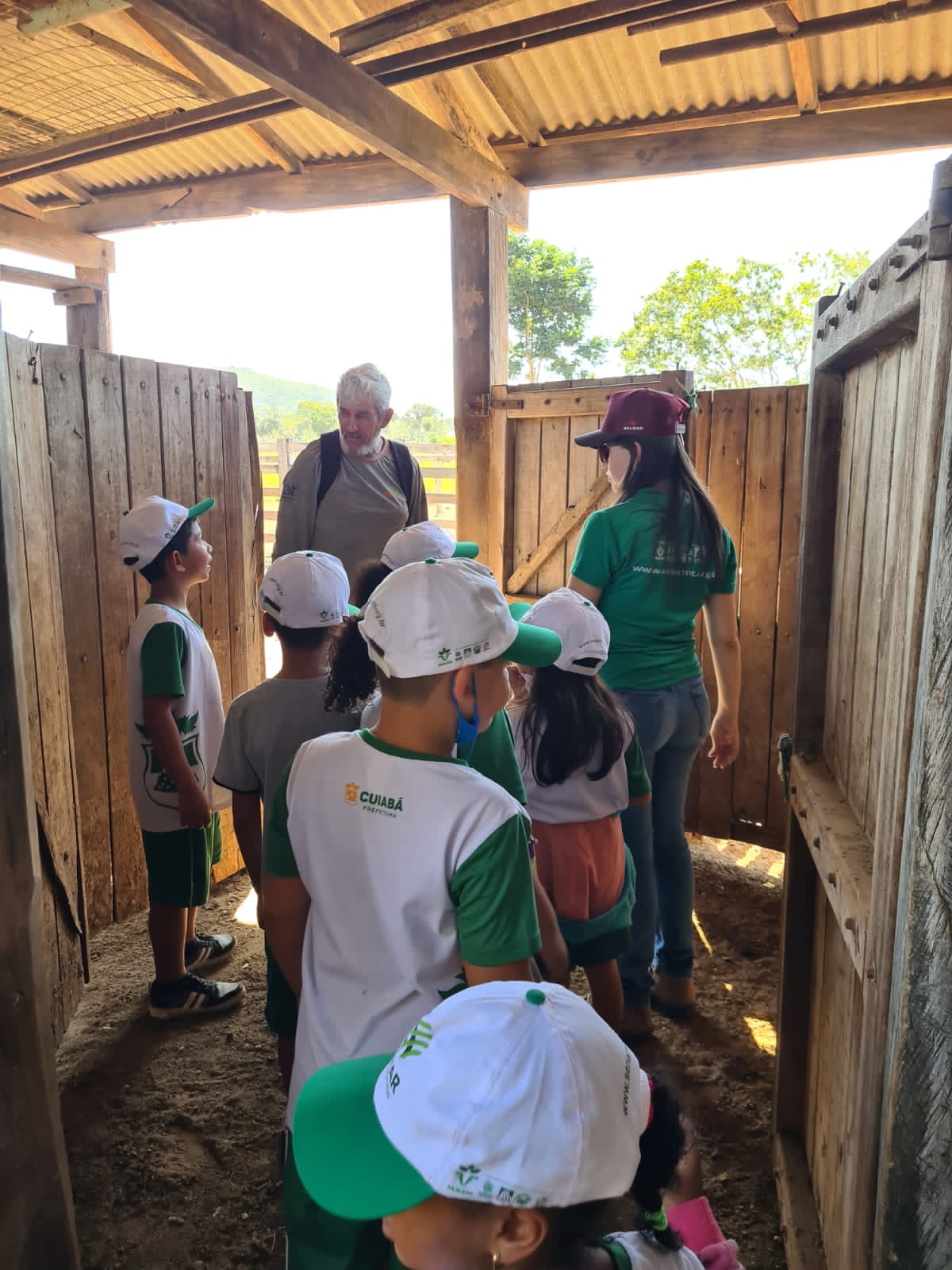Estudantes da Escola Municipal de Educação Básica (EMEB) Profª. Rita Caldas Castrillon, localizada no bairro São Benedito, visitaram na terça-feira (24), uma propriedade rural localizada na rodovia Coronel Palmiro Paes de Barros, no município de Santo Antônio do Leverger, a 34 quilômetros de Cuiabá. A visita faz parte das ações do projeto SEMEIA, voltado para estudantes do 1ª ao 9º Ano do Ensino Fundamental.