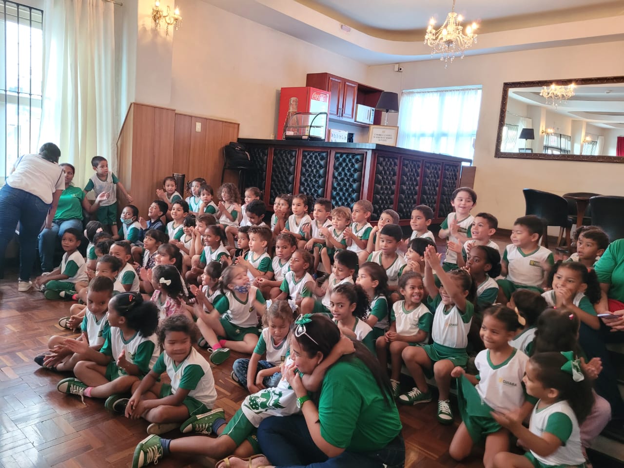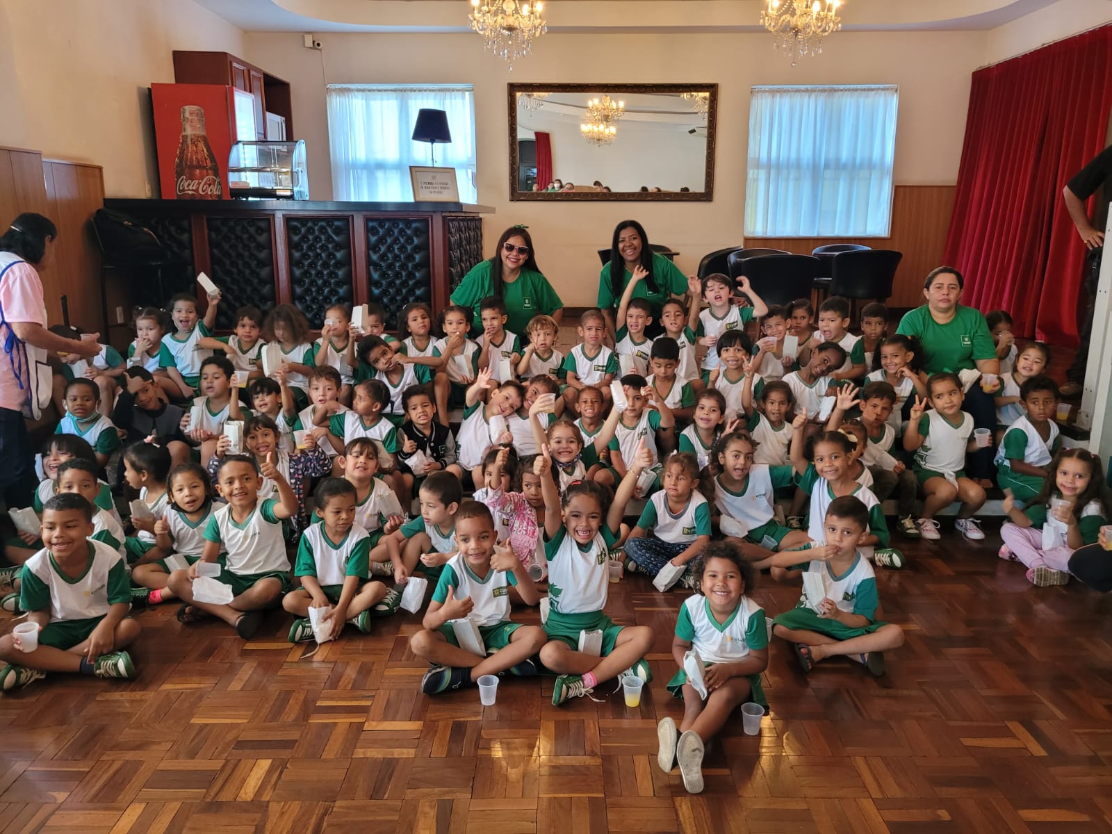Os aproximadamente 140 estudantes do CMEI Serginho visitaram o prédio histórico e assistiram ao filme ‘Viva, A Vida é uma Festa’ que conta a história de Miguel, um menino de 12 anos que sonha em ser um músico famoso, mas precisa lidar com sua família que desaprova sua escolha. Determinado a virar o jogo, ele desencadeia uma série de eventos ligados a um mistério de 100 anos. A aventura, inspirada no feriado mexicano do Dia dos Mortos, acaba gerando uma extraordinária reunião familiar.