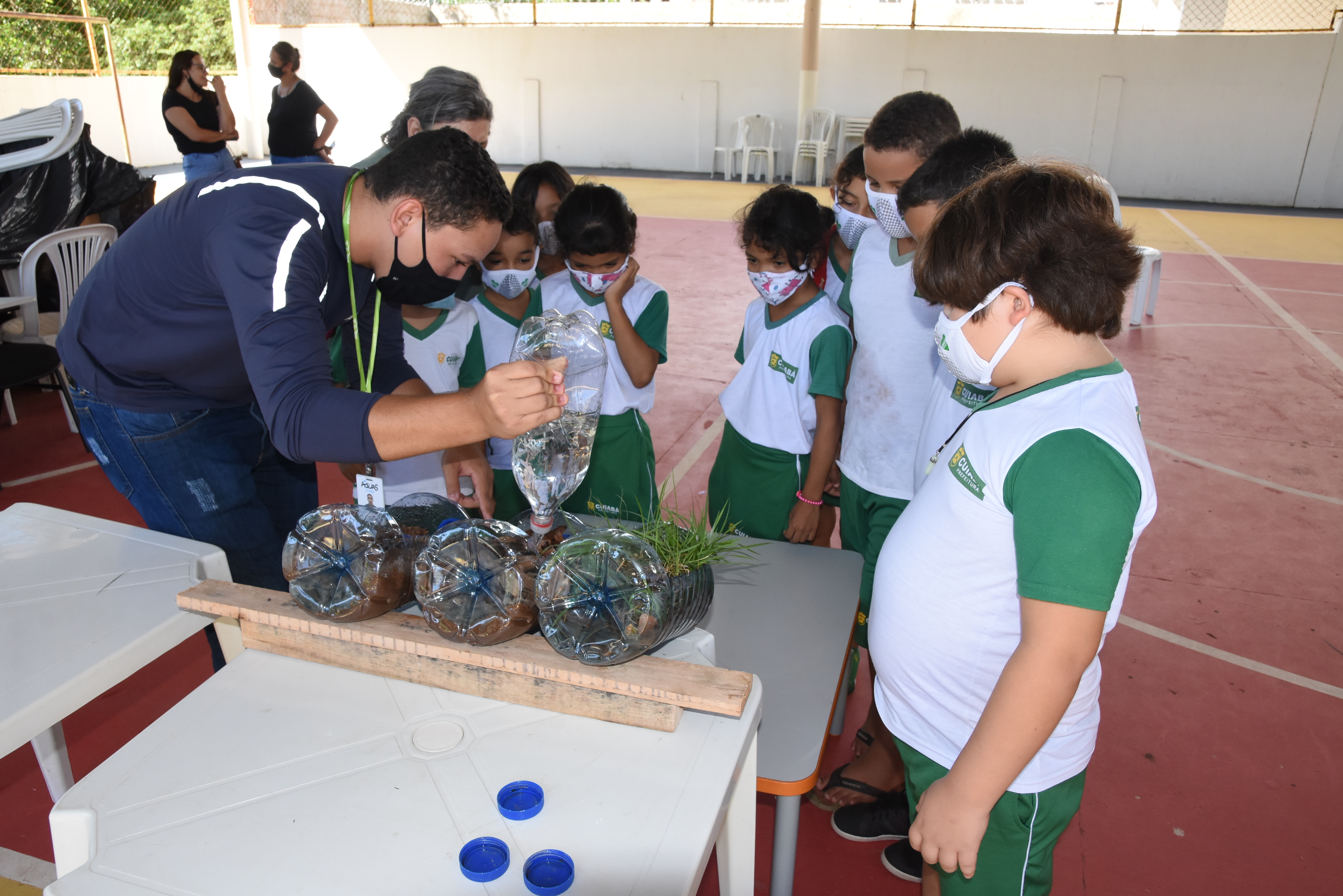 Estudantes participam de atividades voltadas à educação ambiental desenvolvidas pelo projeto de entrega voluntária de óleo de cozinha usado