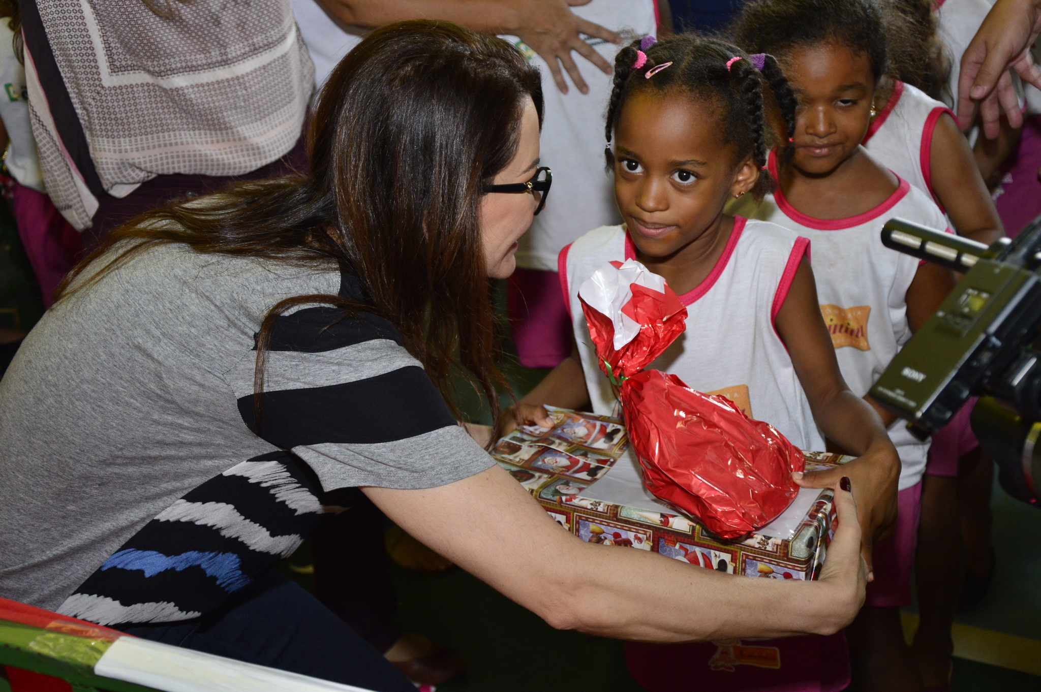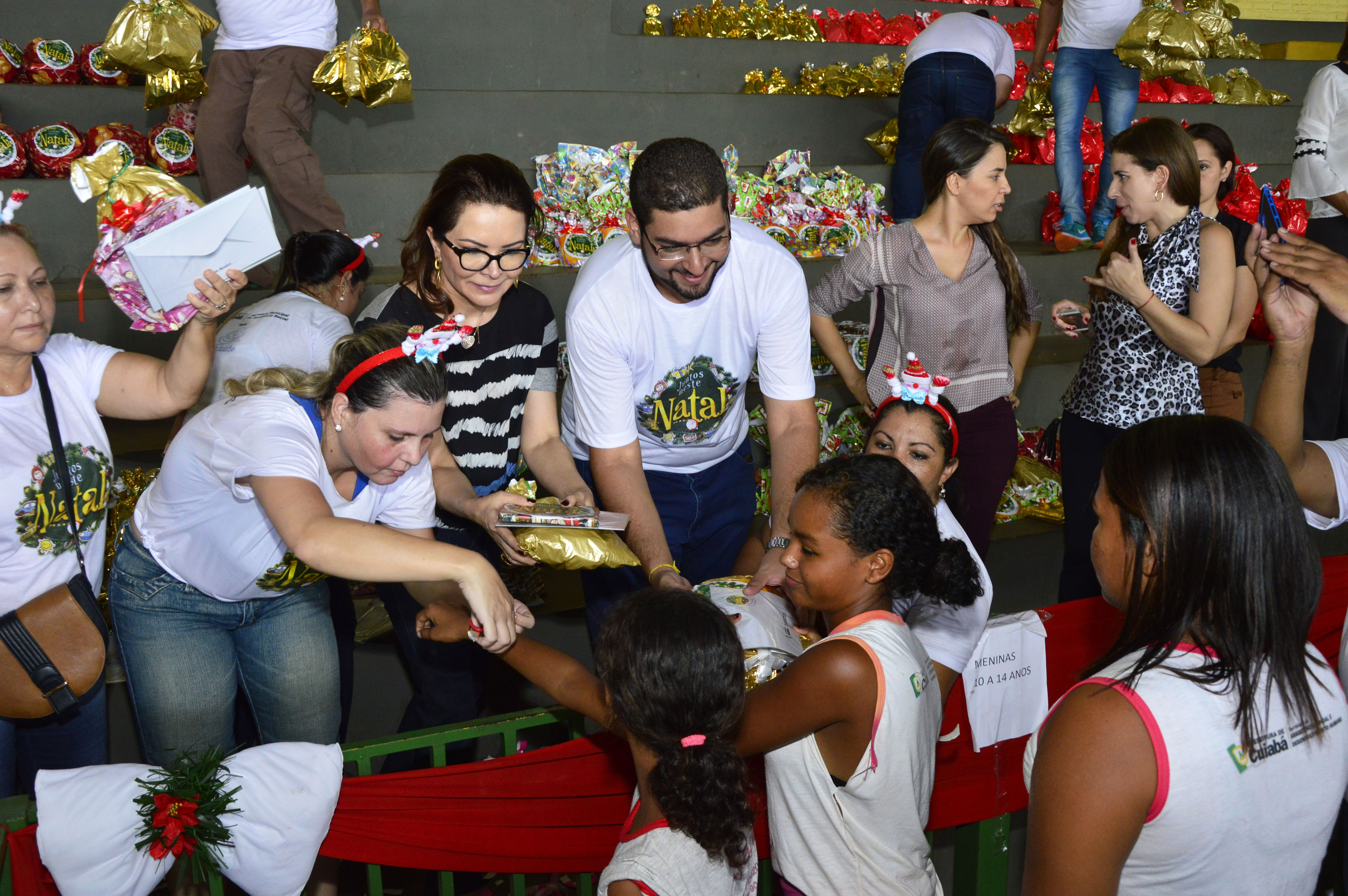 Entre os presenteados estavam crianças que participam do Programa Siminina e do Serviço de Convivência e Fortalecimento de Vínculos realizados nas unidades dos Centros de Referência de Assistência Social (CRAS). Meninos e meninas formaram grandes filas para ganhar o tão esperado presente, entregue pela primeira-dama.