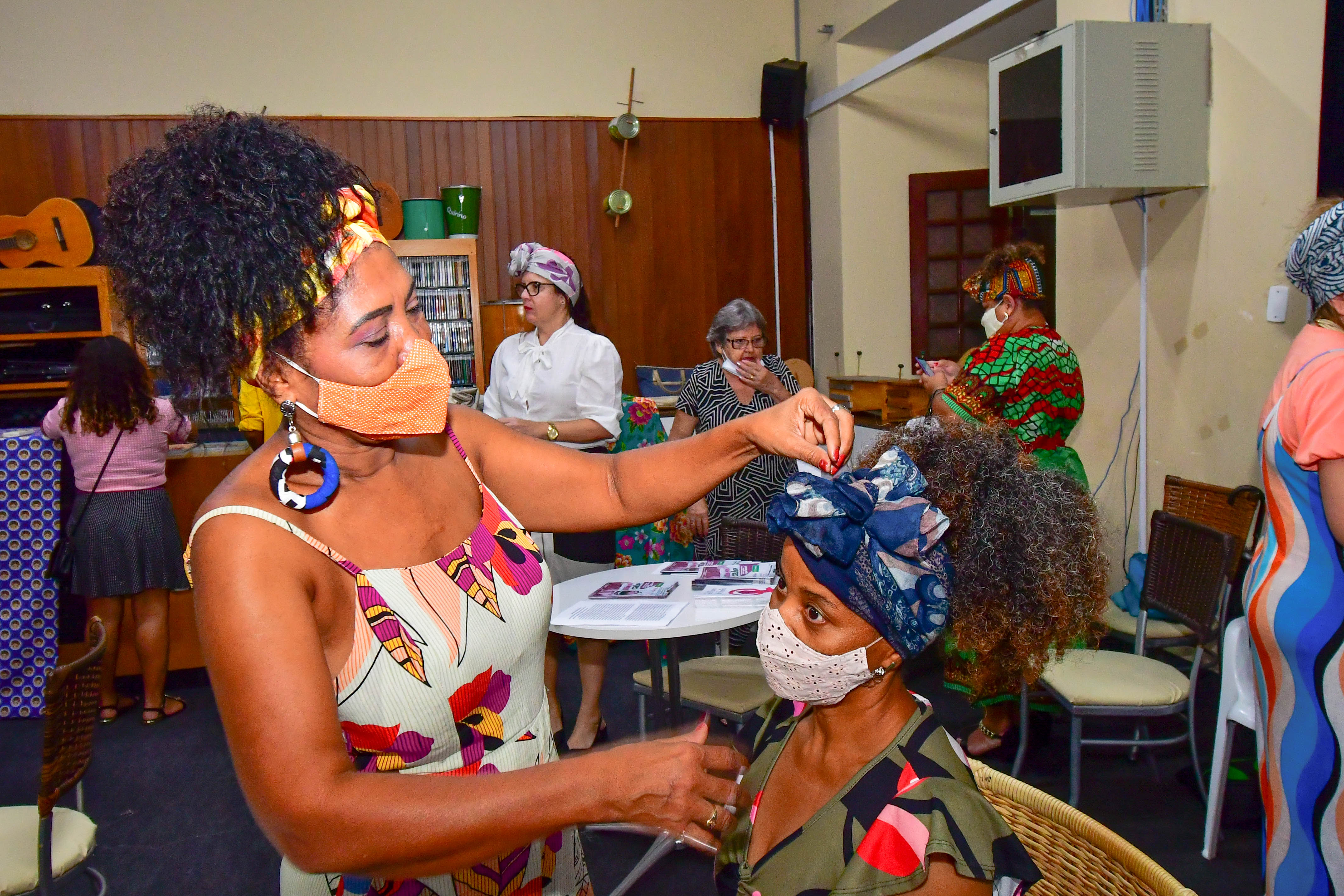 O evento intitulado “Cine Afro” contou com oficina de turbante, acessório típico da cultura africana, coordenado pelas mulheres do Fórum de Mulheres Negras. A programação também contou com a exibição do filme “Estrelas Além do Tempo” que conta a história de três mulheres negras que trabalhavam na Nasa e venceram o preconceito dentro da instituição americana.