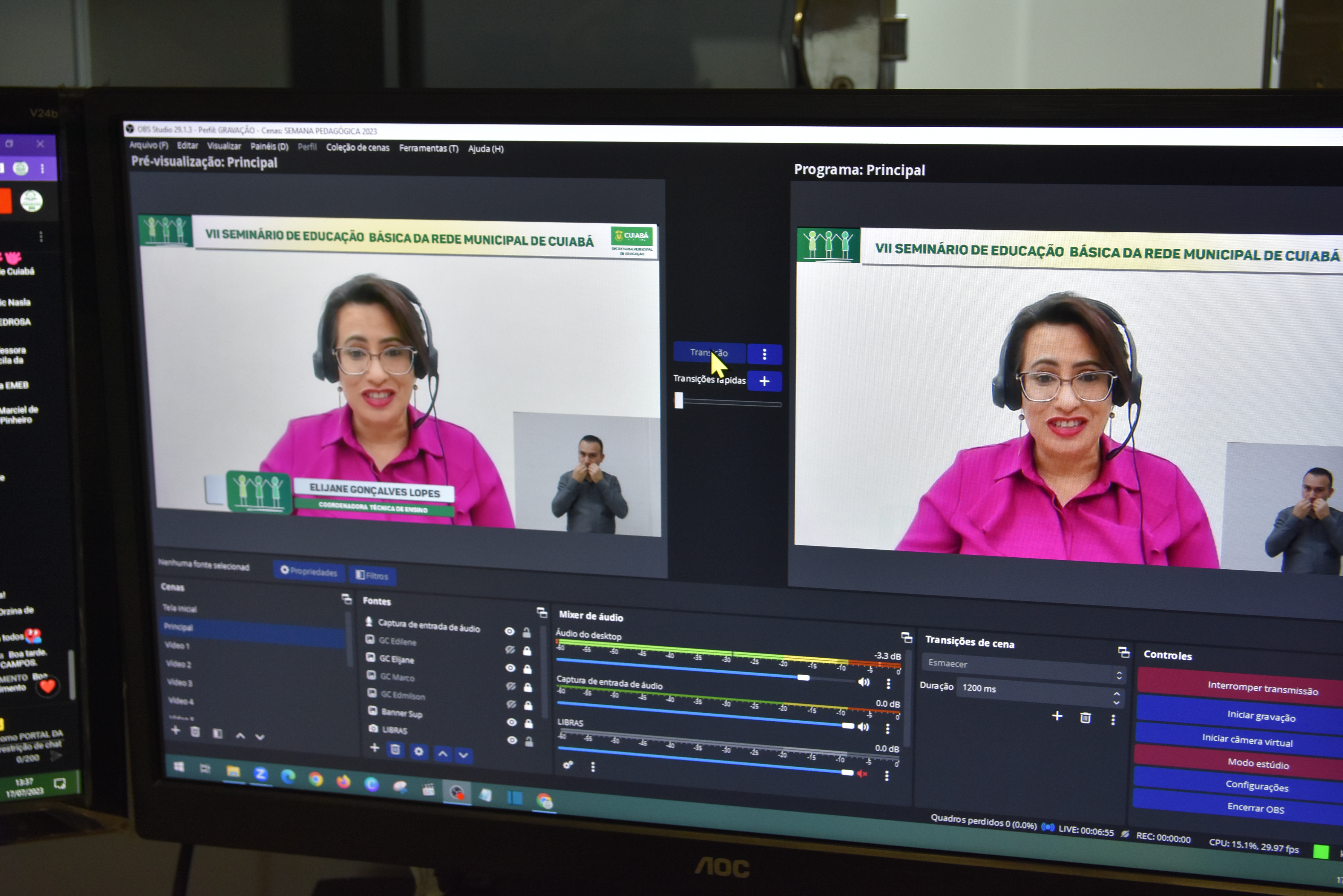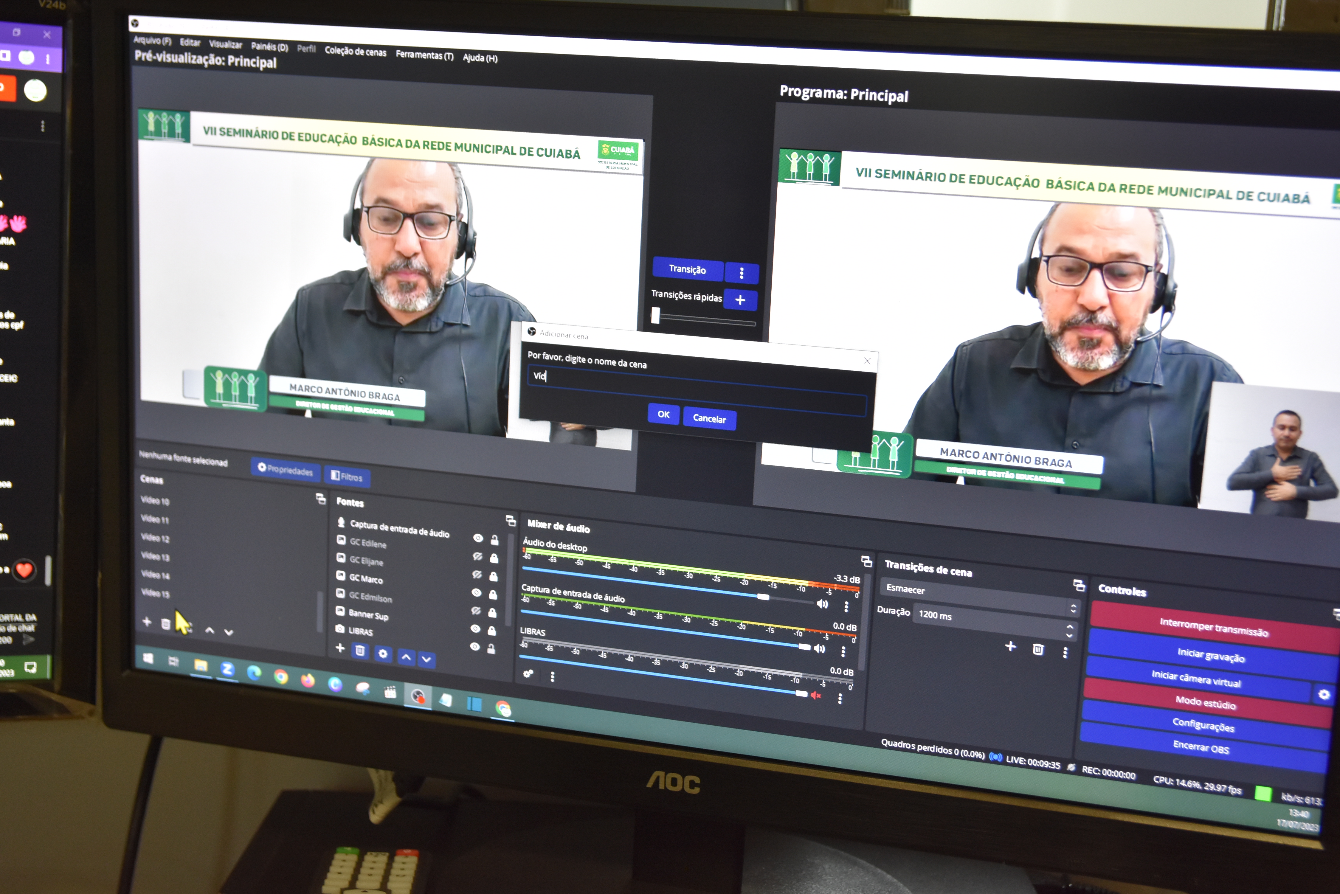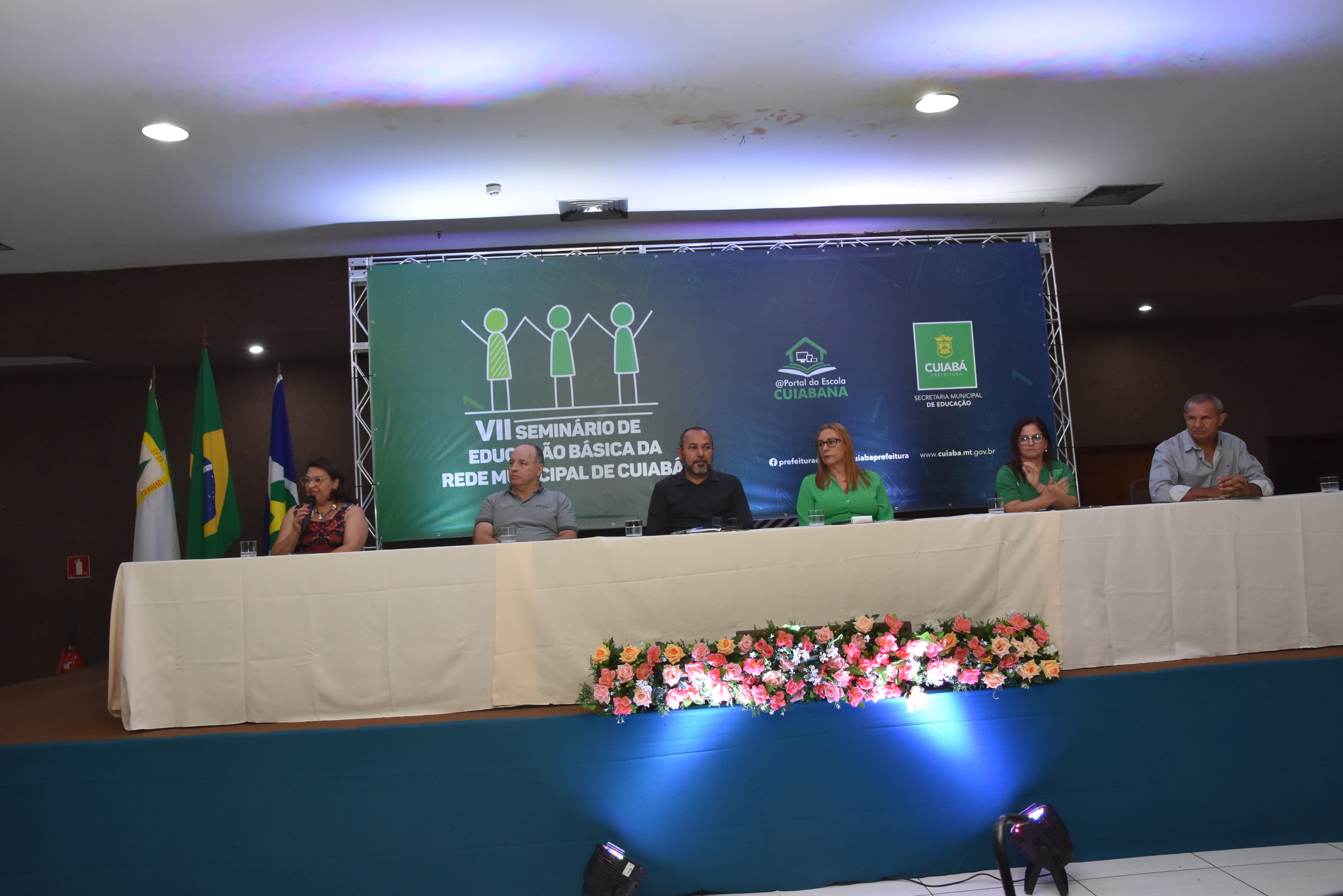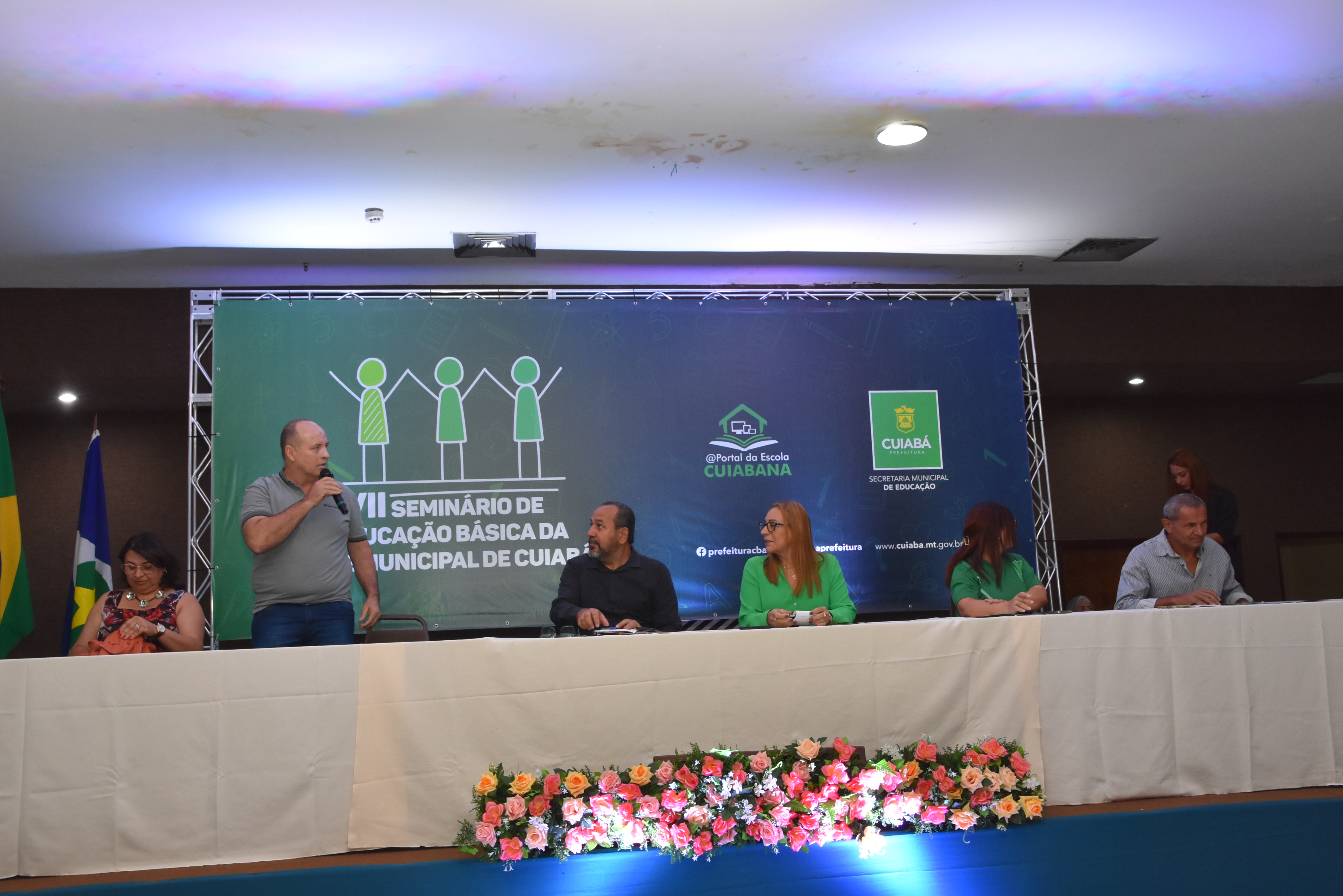 Profissionais da rede pública municipal de Educação participaram, na segunda-feira (17), do 7º Seminário de Educação Básica. O evento, no formato híbrido, com palestra presencial para 420 gestores, e transmissão da programação pelo canal da Escola Cuiabana no YouTube, abriu o calendário escolar do segundo semestre com palestra do Prof. Clóvis de Barros Filho.