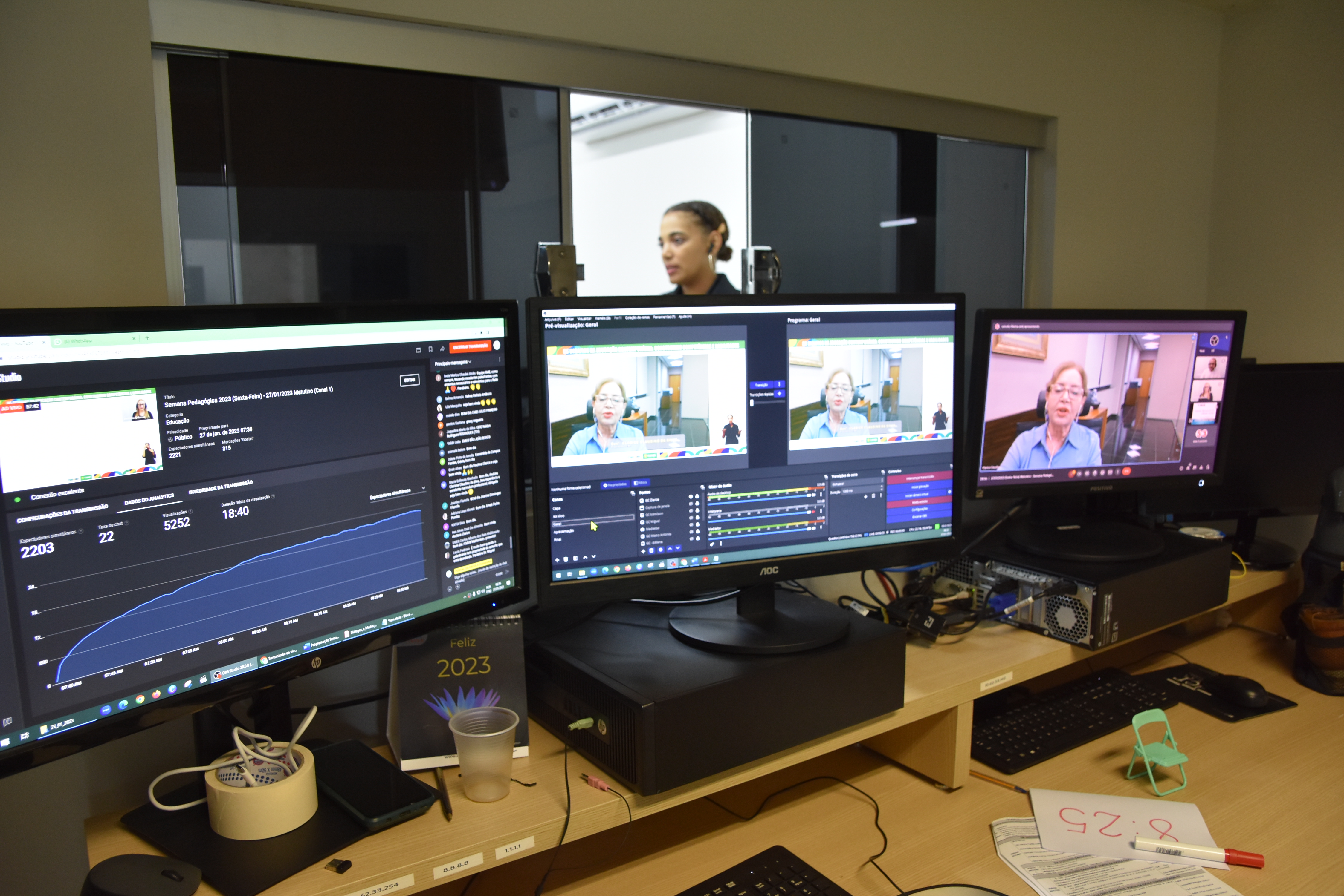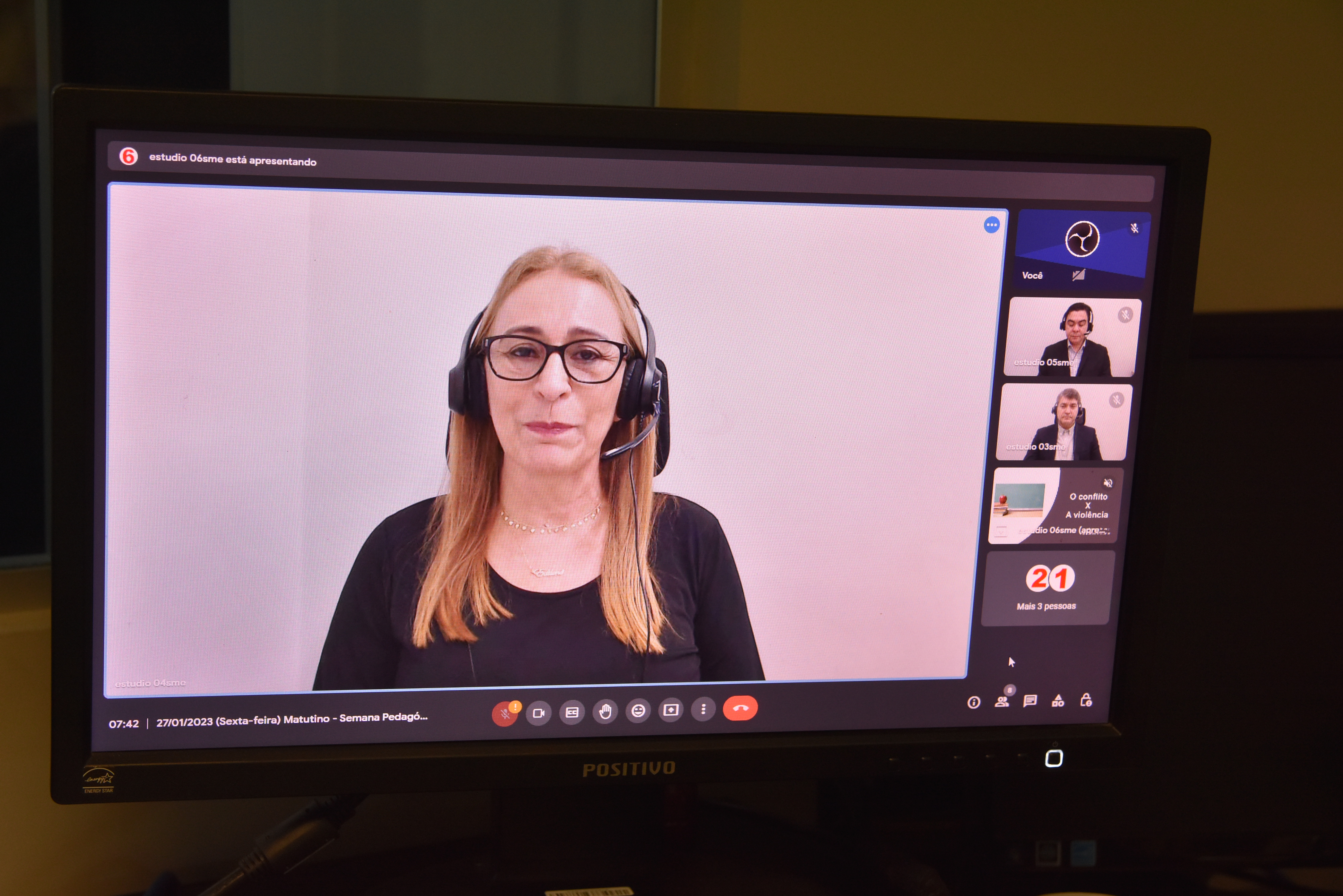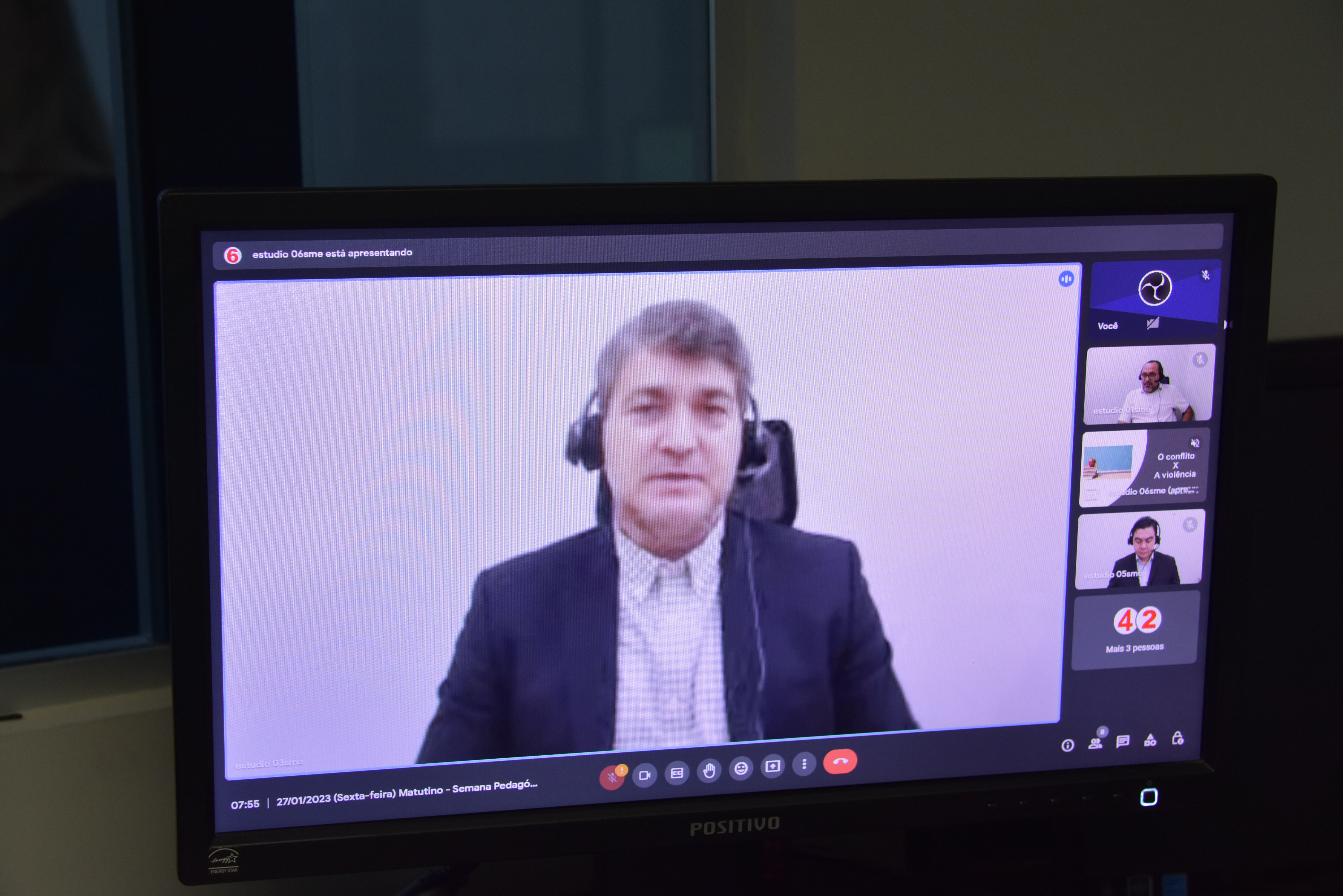 Diálogo e mediação de conflitos nas escolas foi o tema da palestra que abriu a programação da Semana Pedagógica 2023, desta sexta-feira (27). A mesa redonda, transmitida online pelo Canal, 1 da Escola Cuiabana no YouTube, contou com a participação de 2.551 participantes acompanhando as palestras proferidas pelo promotor de Justiça, Miguel Slhessarenko Júnior e a desembargadora e presidente do Tribunal de Justiça de Mato Grosso, Clarice Claudino da Silva.