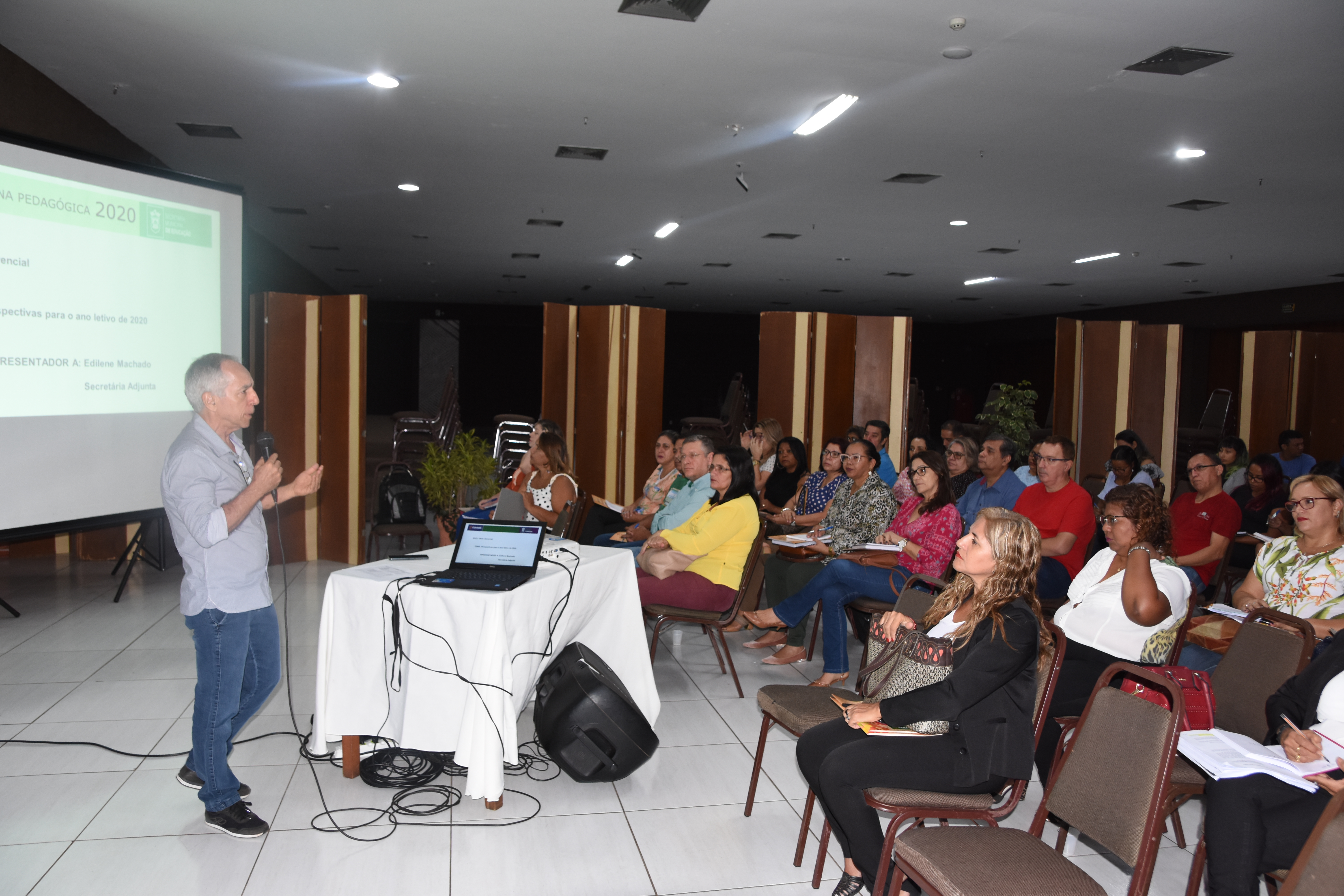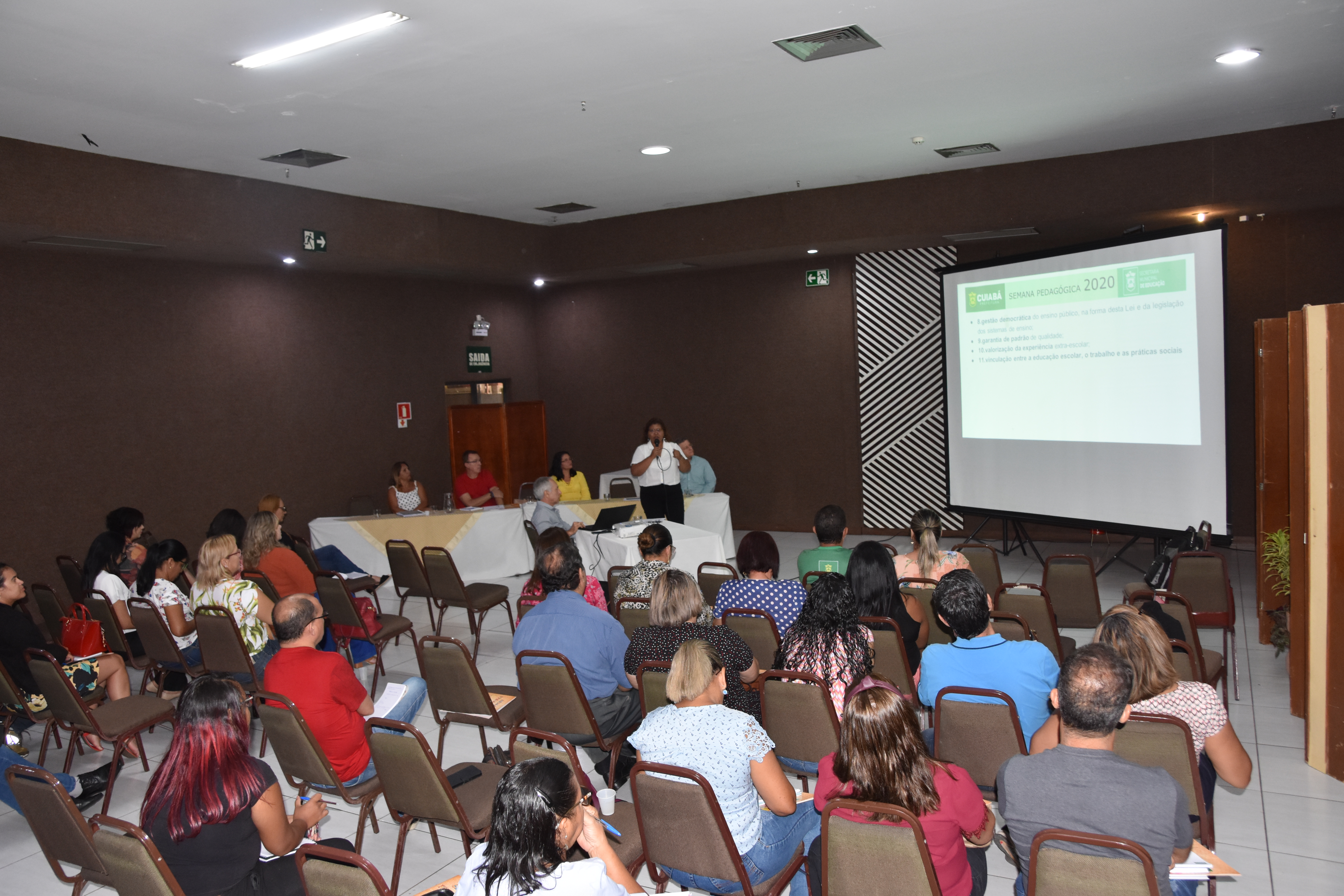 A Semana Pedagógica tem como objetivo estabelecer, desde o início do ano letivo, a rotina para a execução dos serviços planejados para o ano. “É uma verdadeira maratona” – frisou a secretária adjunta Edilene Machado – reforçando que 2020 é um ano desafiador, com muita coisa para mudar e acontecer, com inovações e melhorias. “Temos que ter fé”, complementou Edilene.