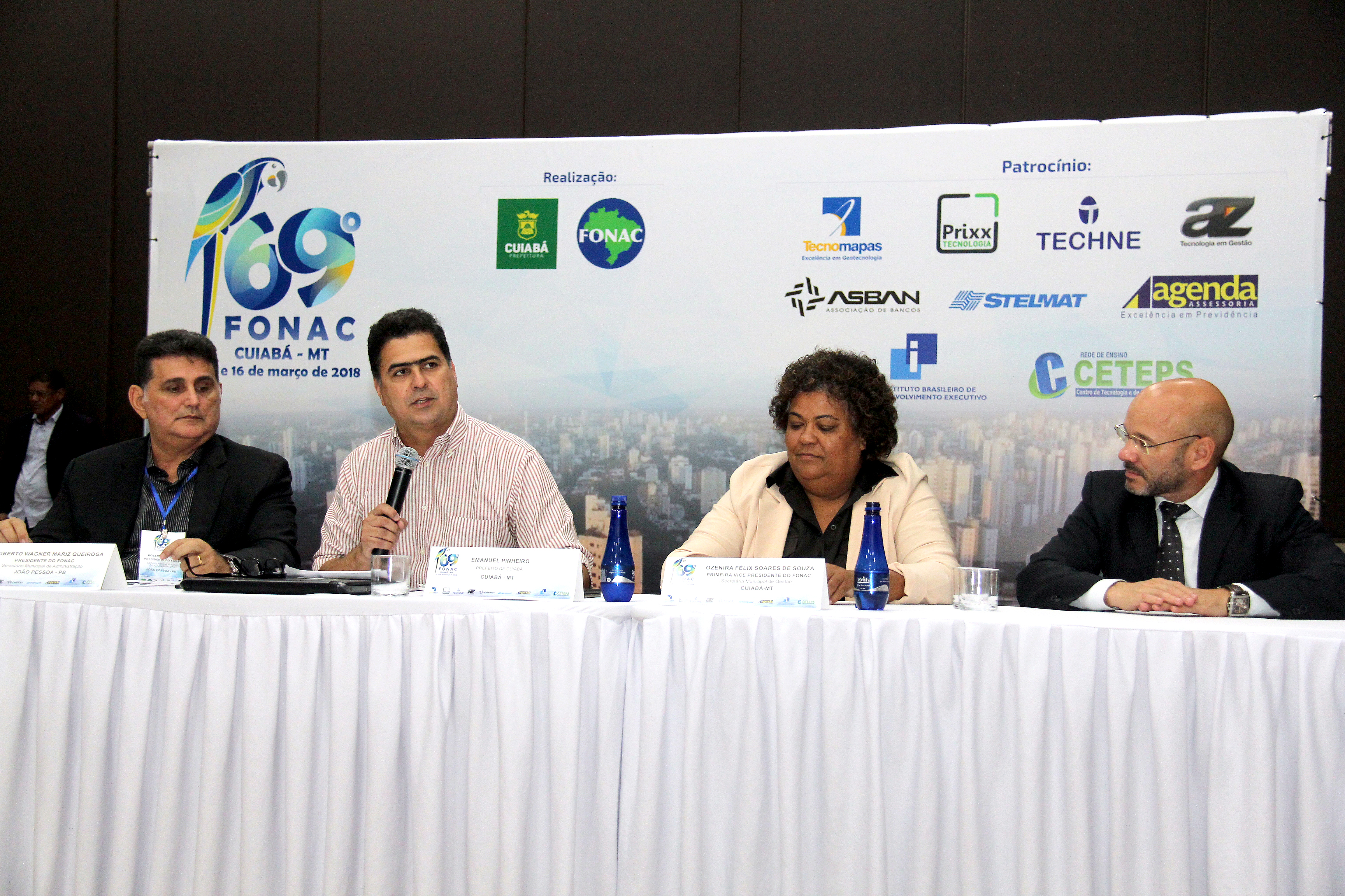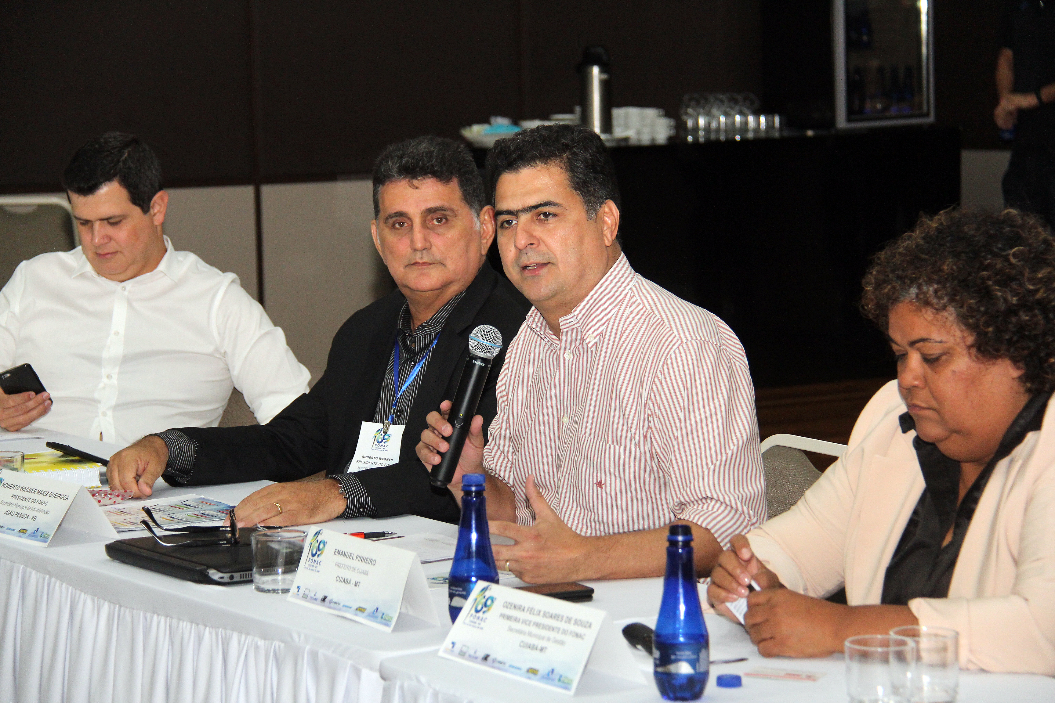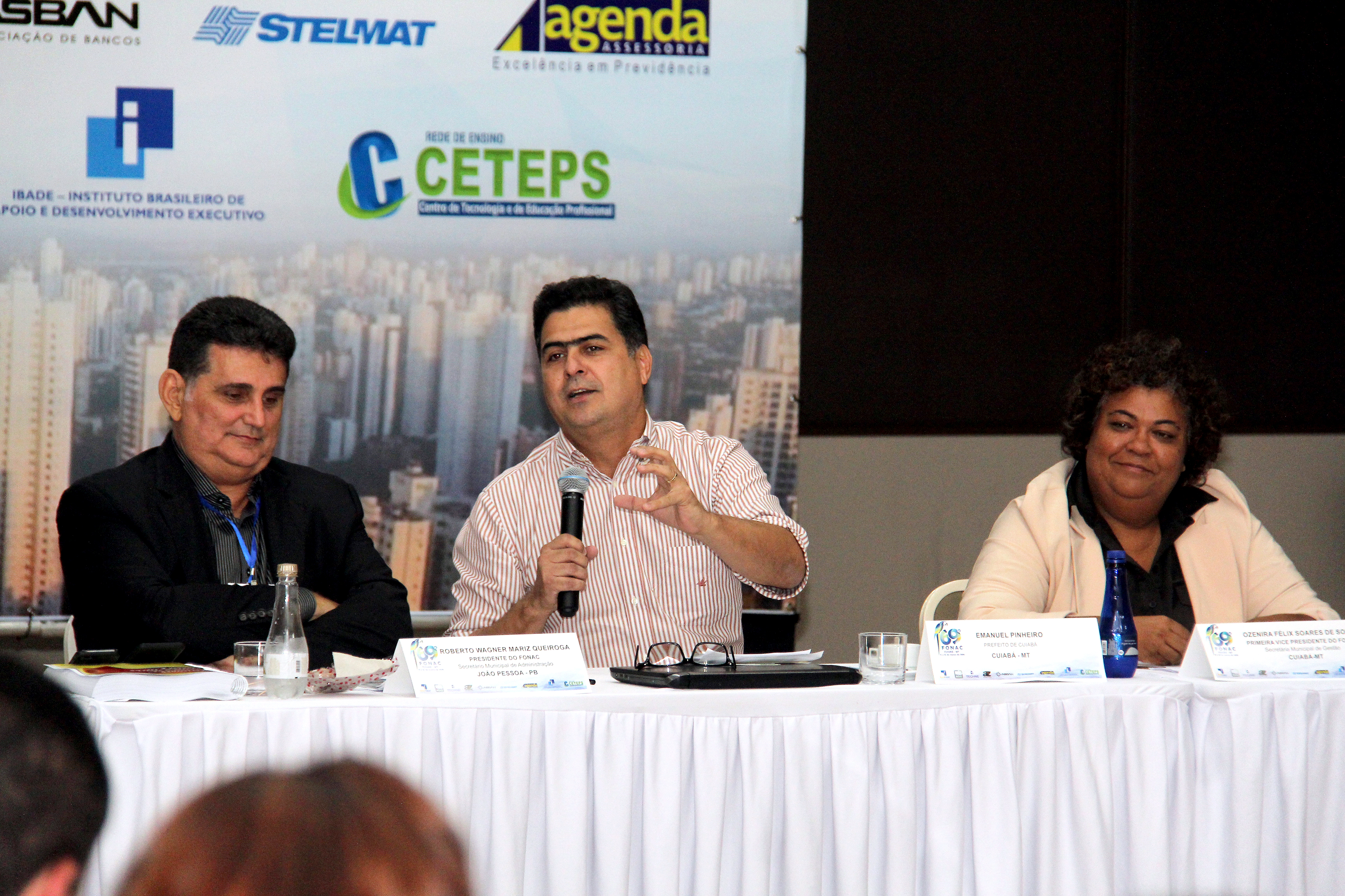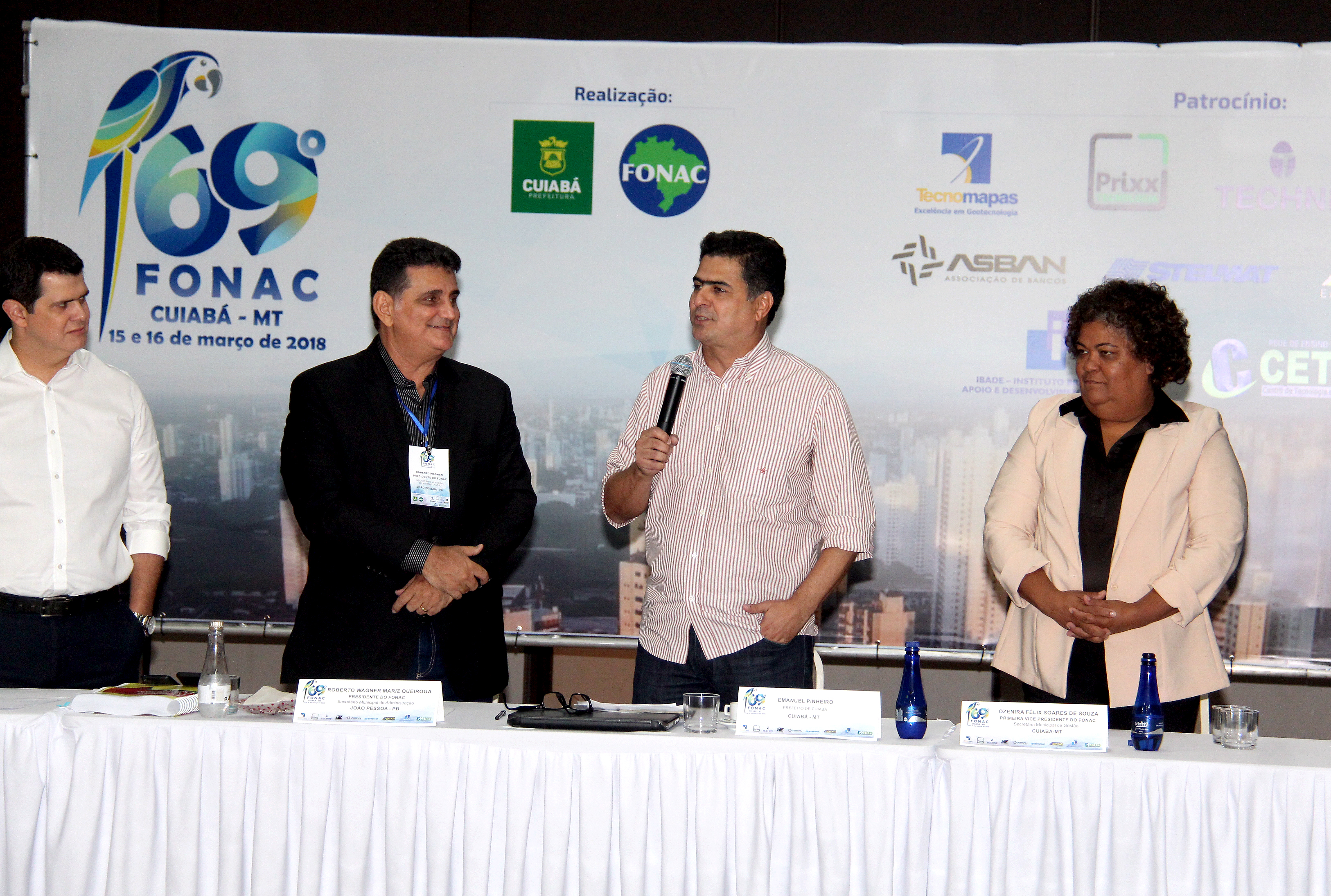 O prefeito Emanuel Pinheiro prestigiou nesta sexta-feira (16), o 69ª Fonac - Fórum Nacional das Secretarias de Administração das Capitais, organizado pela secretária de Gestão, Ozenira Felix de Souza, no auditório do Hotel Gran Odara. O Fonac é uma associação civil, com personalidade jurídica de direito privado, existente há mais de 25 anos. Institucionalizado em 2003, atualmente é presidida pelo secretário de administração de João Pessoa (PB), Roberto Wagner Mariz Queiroga.