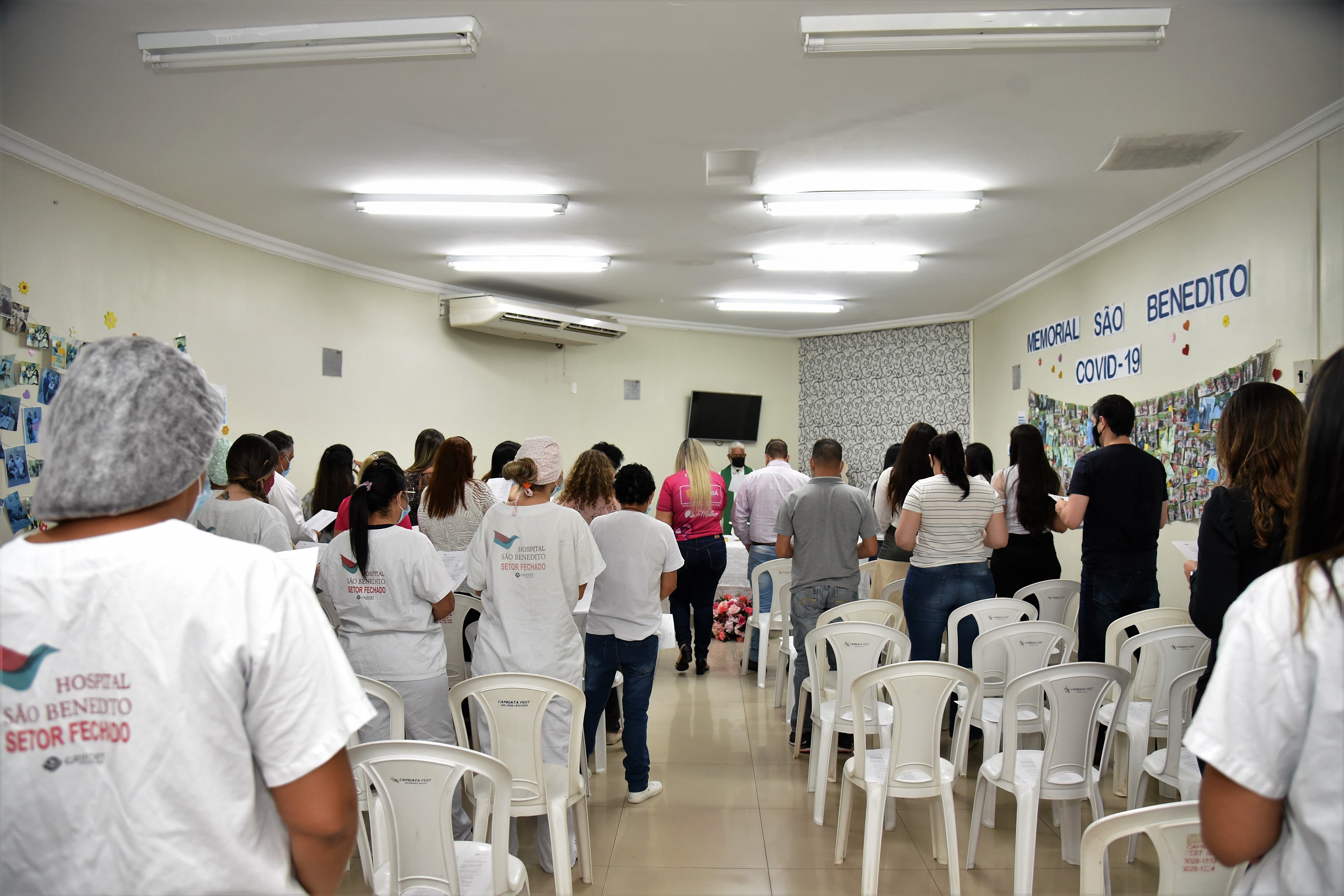 Ao som da Banda do Exército Brasileiro, grandes sucessos musicais marcaram a homenagem para os profissionais que atuam no Hospital São Benedito, na manhã de terça-feira (27). O evento foi organizado em homenagem ao ‘Dia do Servidor Público’. Os colaboradores do hospital também participaram de uma celebração eucarística (missa) e foram homenageados por familiares e pacientes que enfrentaram a Covid-19, por meio de uma exposição de fotos e mensagens. O material foi exposto na capela da unidade hospitalar.