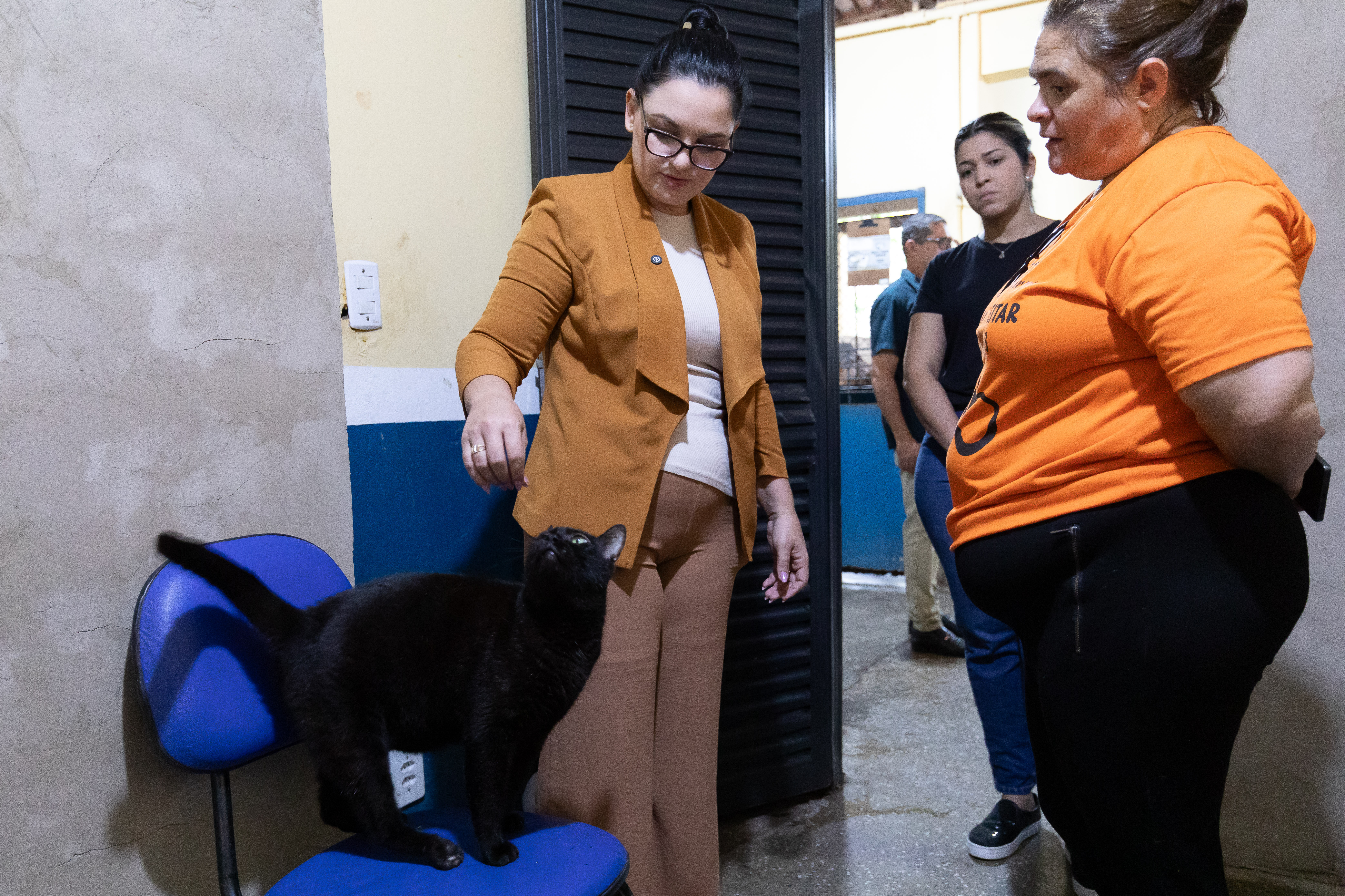 A primeira-dama, Samantha Íris, visitou as instalações da Secretaria, onde verificou de perto a realidade das baias, do ambulatório e de toda a infraestrutura de atendimento. No local, Andrea Janaína sugeriu adequações para melhorar as condições do espaço e ampliar a capacidade de acolhimento.