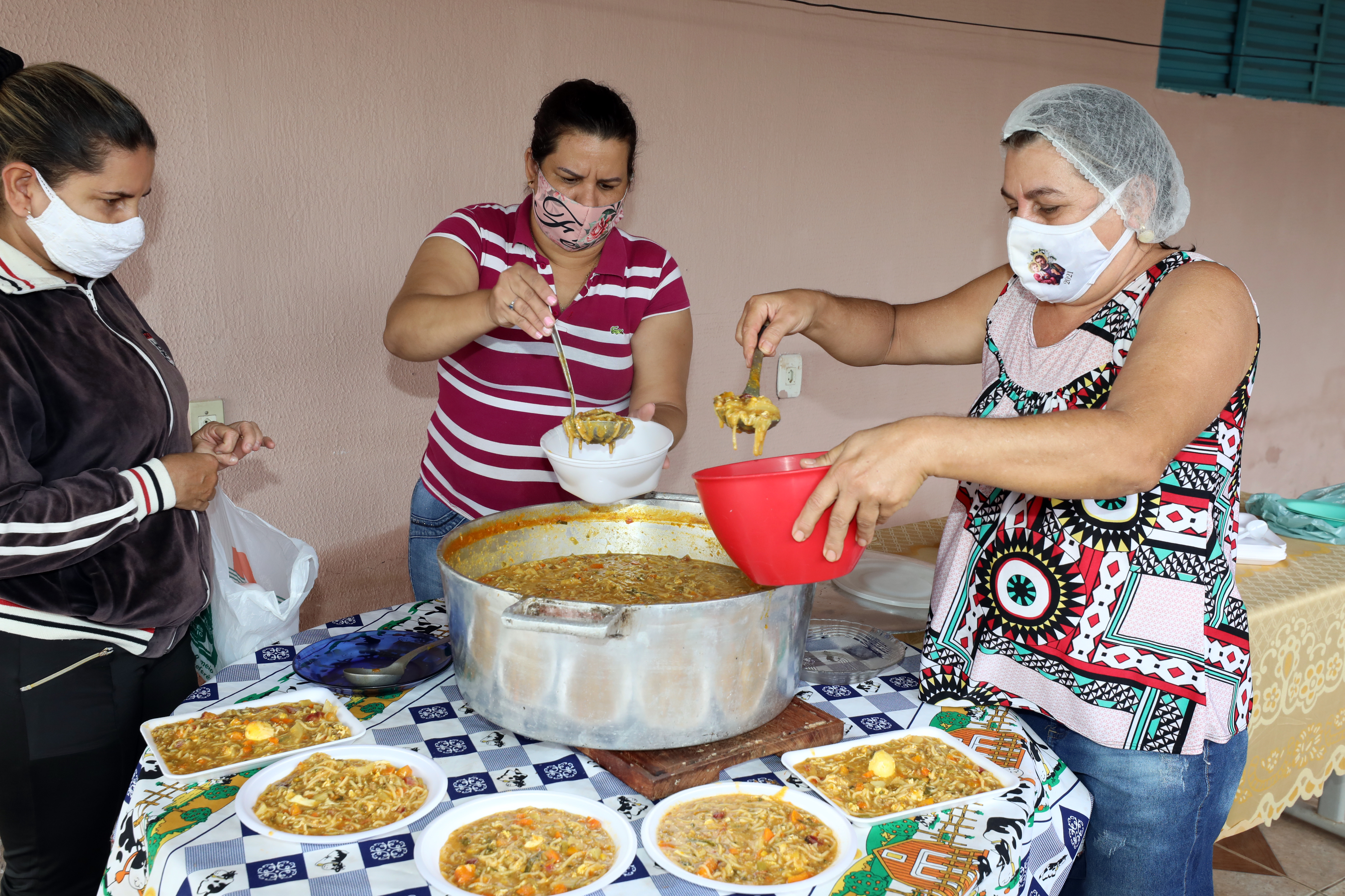 Um dos exemplos, é o das irmãs Fátima e Teresa Aparecida da Silva. Com auxílio da força-tarefa, elas distribuíram amor, traduzido em uma saborosa sopa. O local usado para confecção da refeição é a residência das irmãs. Elas abriram a casa para atender aos mais carentes. Com a organização da rede de assistência e o recebimento de verduras, elas poderão ampliar o atendimento para duas vezes na semana com a distribuição de sopas.