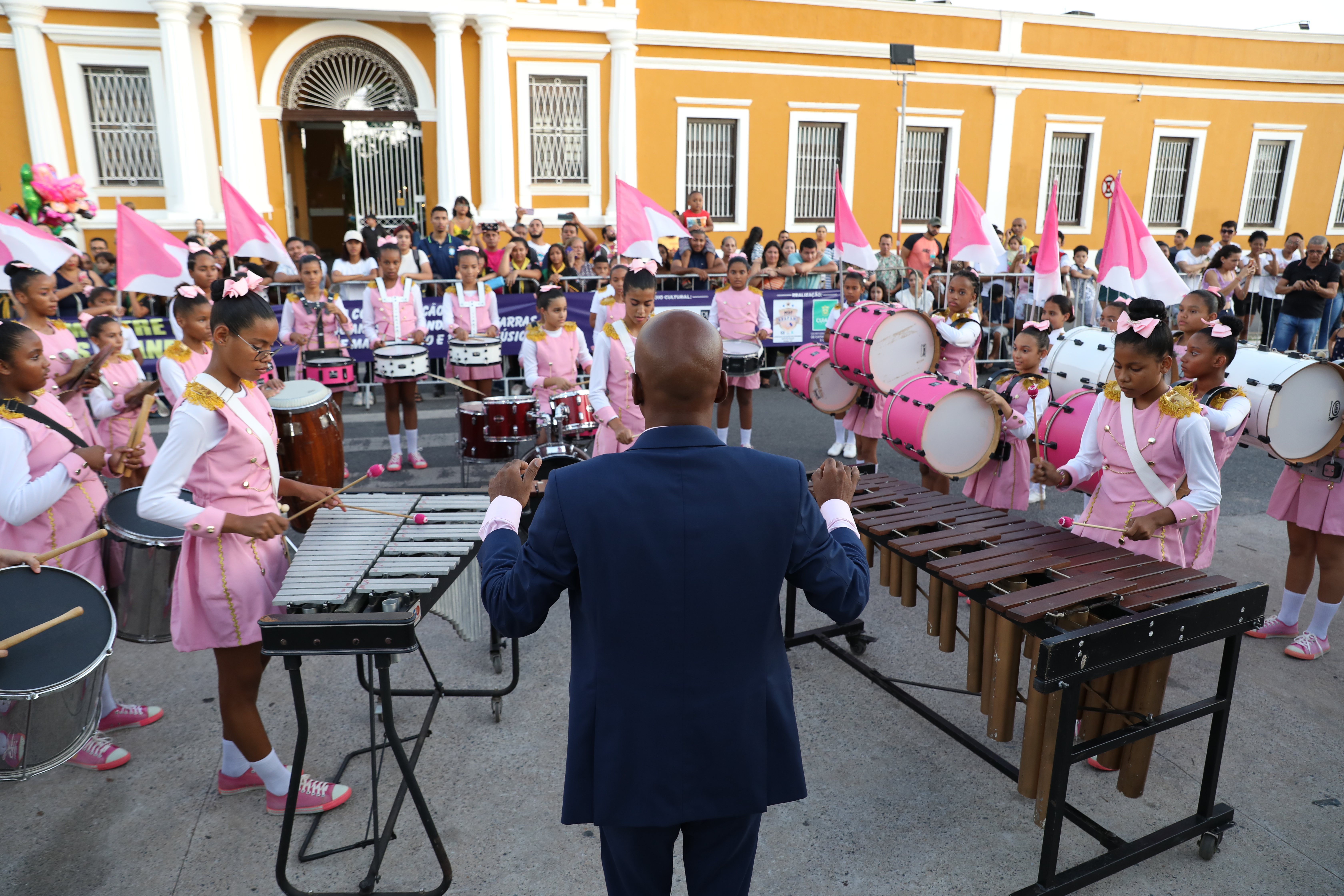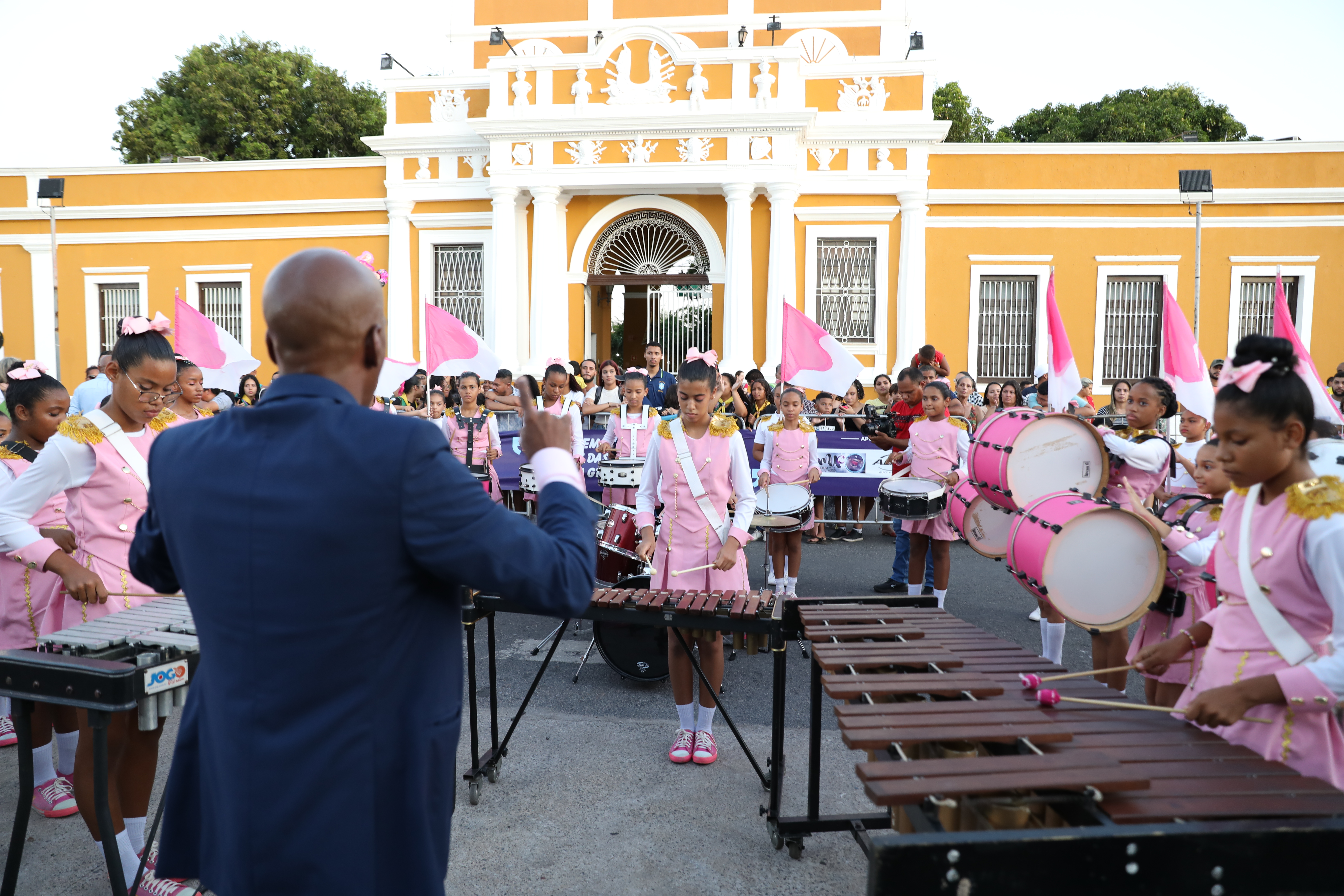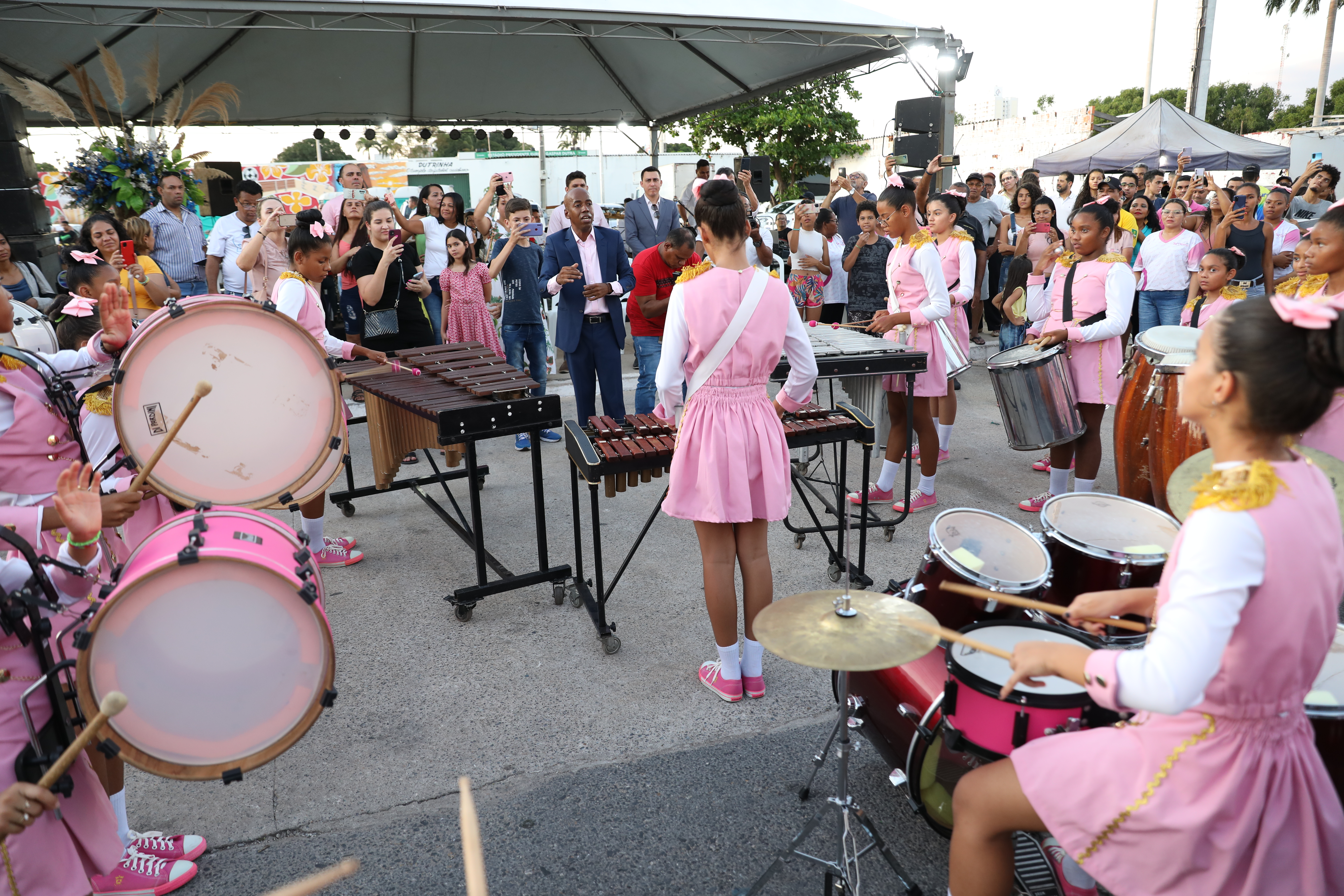 As meninas que participam da Fanfarra do Programa Siminina se apresentaram no Festival Mestre Inácio de Bandas e Fanfarras, na tarde deste sábado (19), no Sesc Arsenal. A iniciativa foi reailzada em comemoração ao Dia do Mùsico.