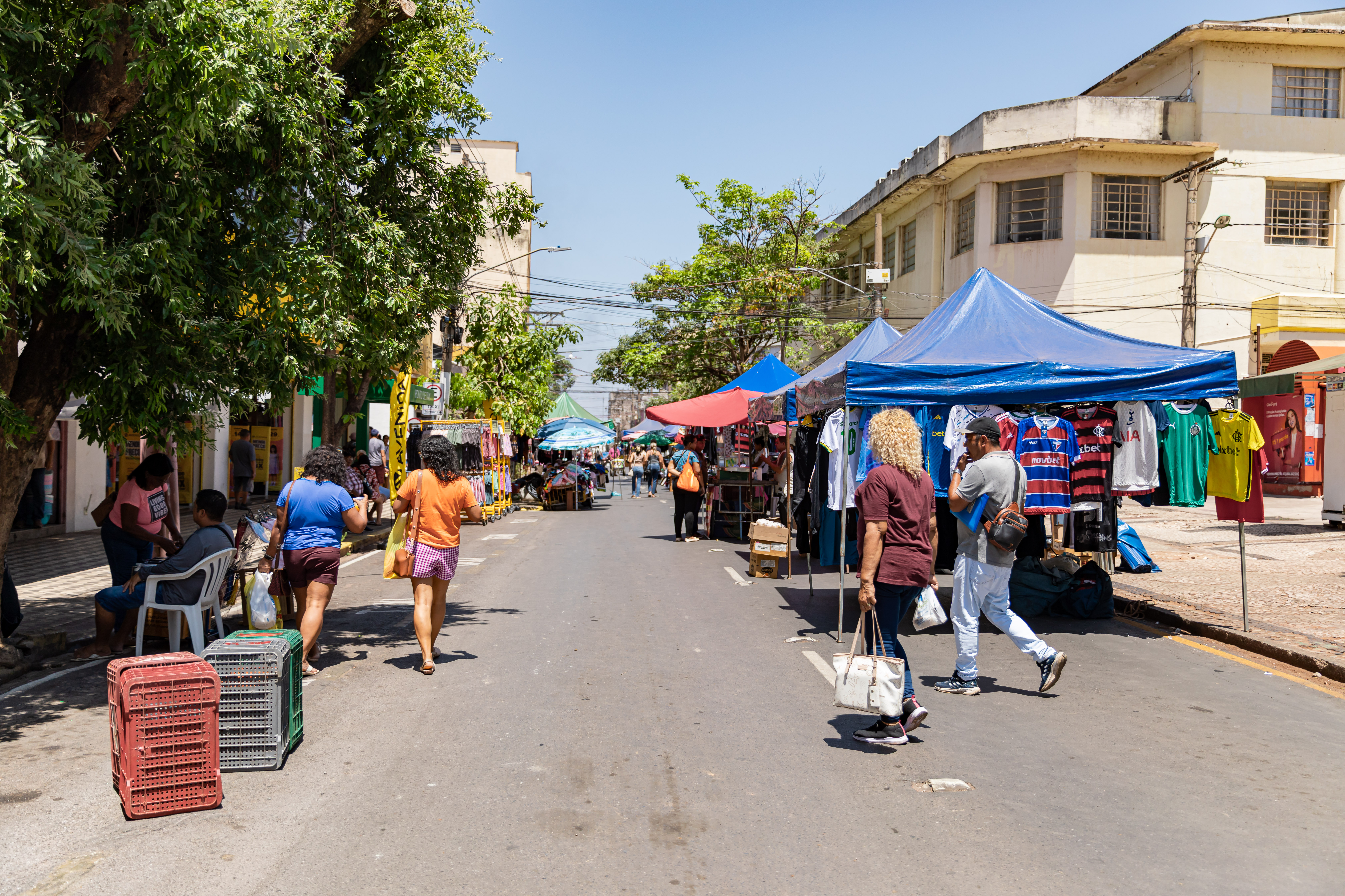 A Feira do Centro, na Rua 13 de Junho, está fortalecendo o comércio na região central de Cuiabá. Ainda em fase de teste, o projeto-piloto aconteceu pelo segundo sábado seguido, neste dia 27, dentro da proposta idealizada pela Prefeitura de Cuiabá, em parceria com a Câmara de Dirigentes Lojistas (CDL), para transformar a via em um grande espaço exclusivo de lazer e comércio popular, com as pessoas circulando livremente pela rua. Para isso, a 13 de Junho fica fechada para o tráfego de veículos entre 7h e 16h, no trecho compreendido entre as avenidas Getúlio Vargas e Isaac Póvoas. Além de moradores de Várzea Grande, visitantes do interior também aproveitaram a oportunidade.