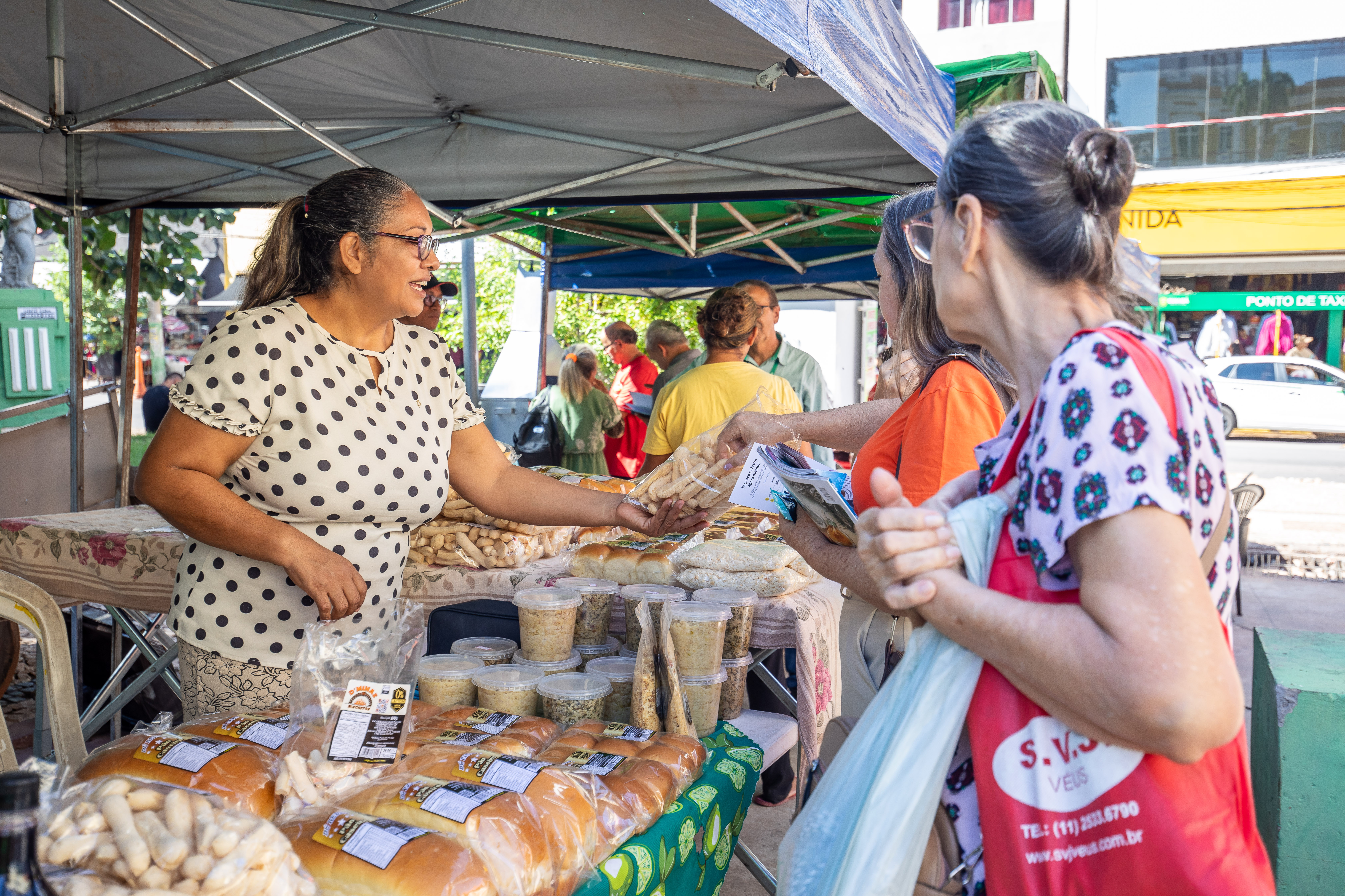 Mais de 40 expositores marcaram presença na Feira da Agricultura Familiar, realizada na Praça da República, em Cuiabá. O evento, promovido pela Prefeitura de Cuiabá por meio da Secretaria Municipal de Agricultura e Trabalho (Smat), estreou na segunda-feira (2) e atraiu centenas de pessoas que circulavam pelo centro da cidade.
