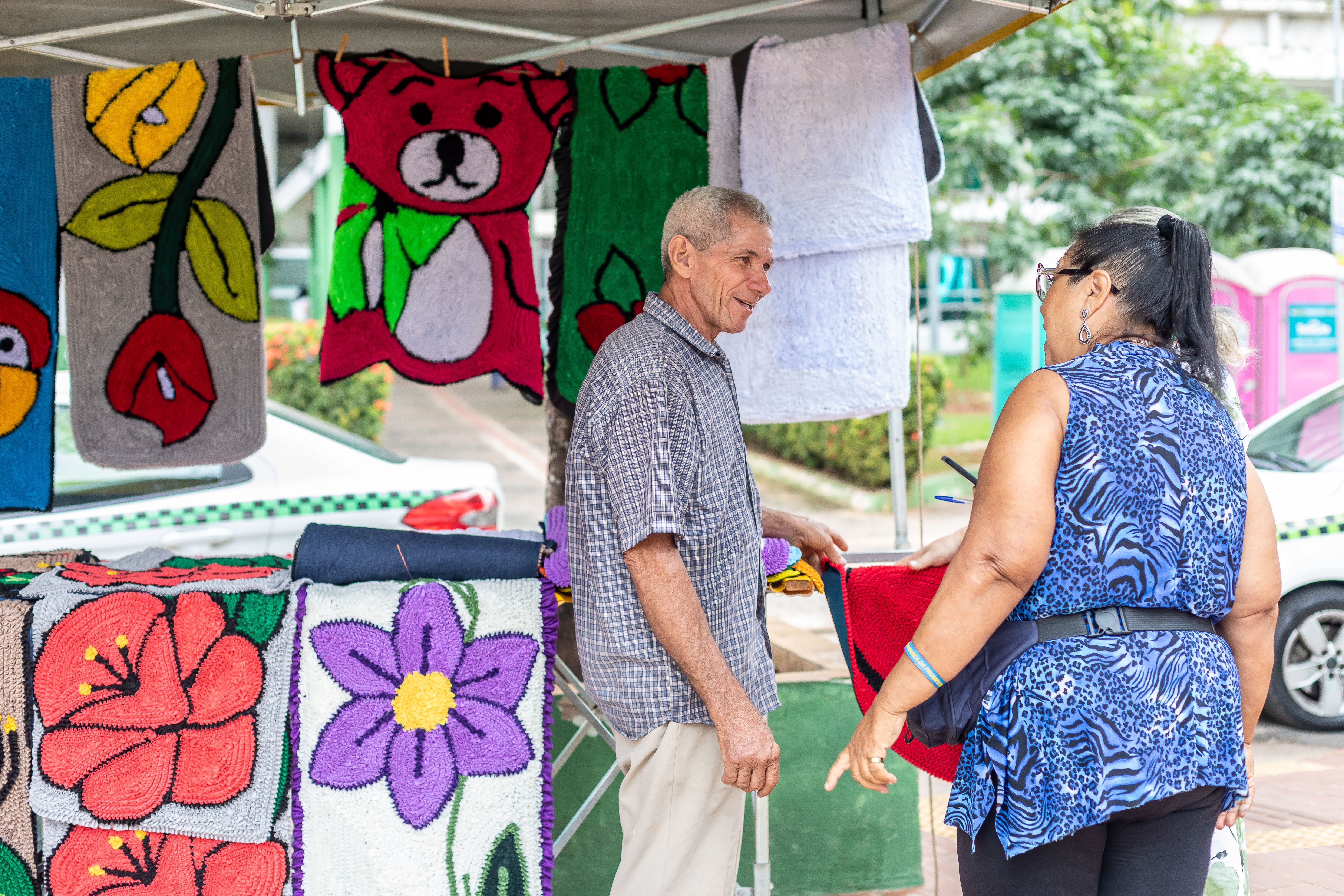 As peças de artesanato, incluindo chinelos e tiaras bordadas à mão, encantaram pela variedade e beleza, agregando ainda mais diversidade à feira.