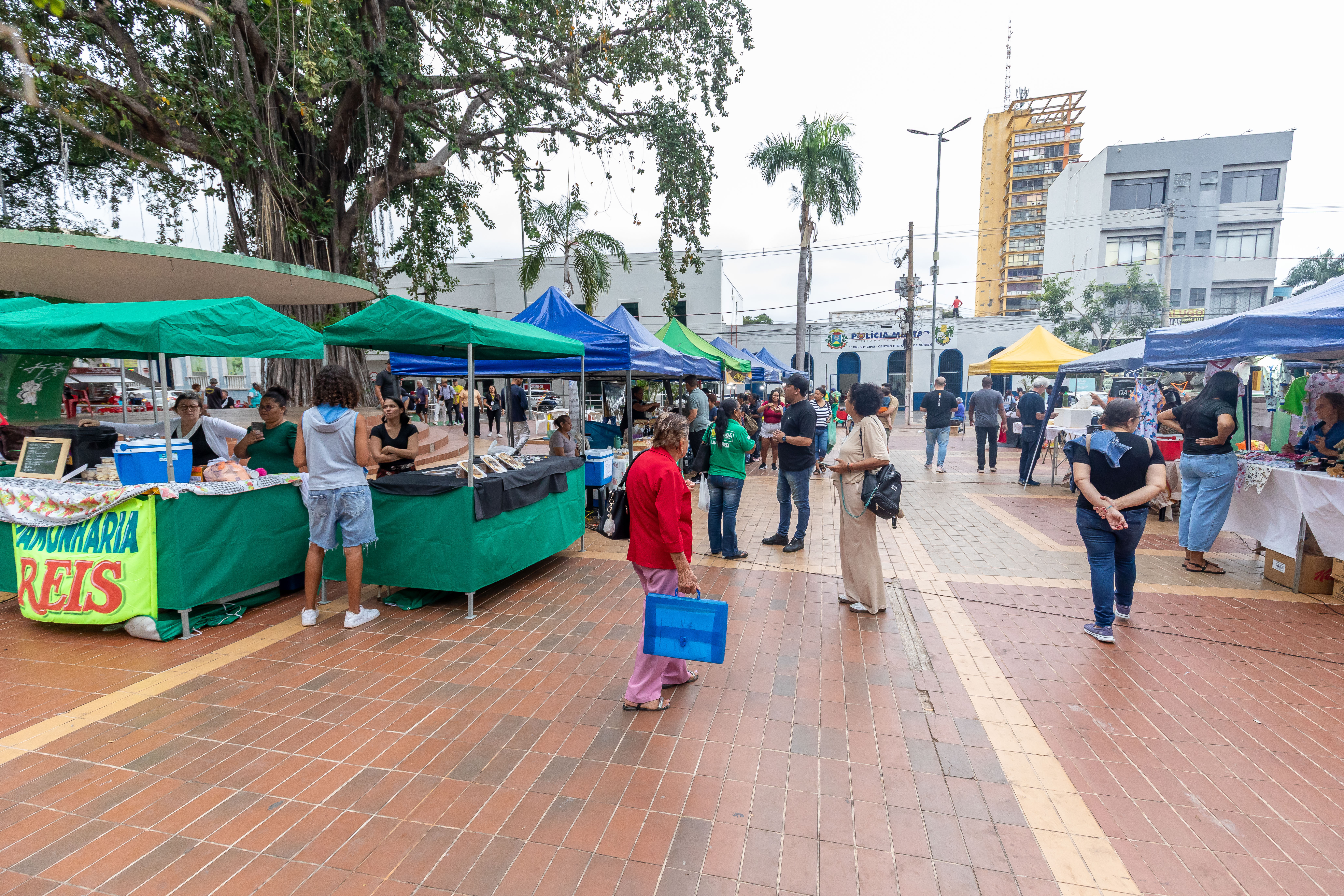 Novos itens enriqueceram a tradicional Feira da Agricultura Familiar Produtiva e Solidária, realizada na Praça Alencastro, no Centro de Cuiabá. Entre legumes, verduras, frutas, temperos, artesanato, salada de frutas, manga temperada e muito mais, a 6ª edição do evento, promovida pela Prefeitura de Cuiabá, por meio da Secretaria Municipal de Agricultura e Trabalho (Smat), na segunda-feira (9), apresentou ainda tapetes artesanais, verduras hidropônicas, salgados em bandejas e bolos de “cacau cuiabano”.