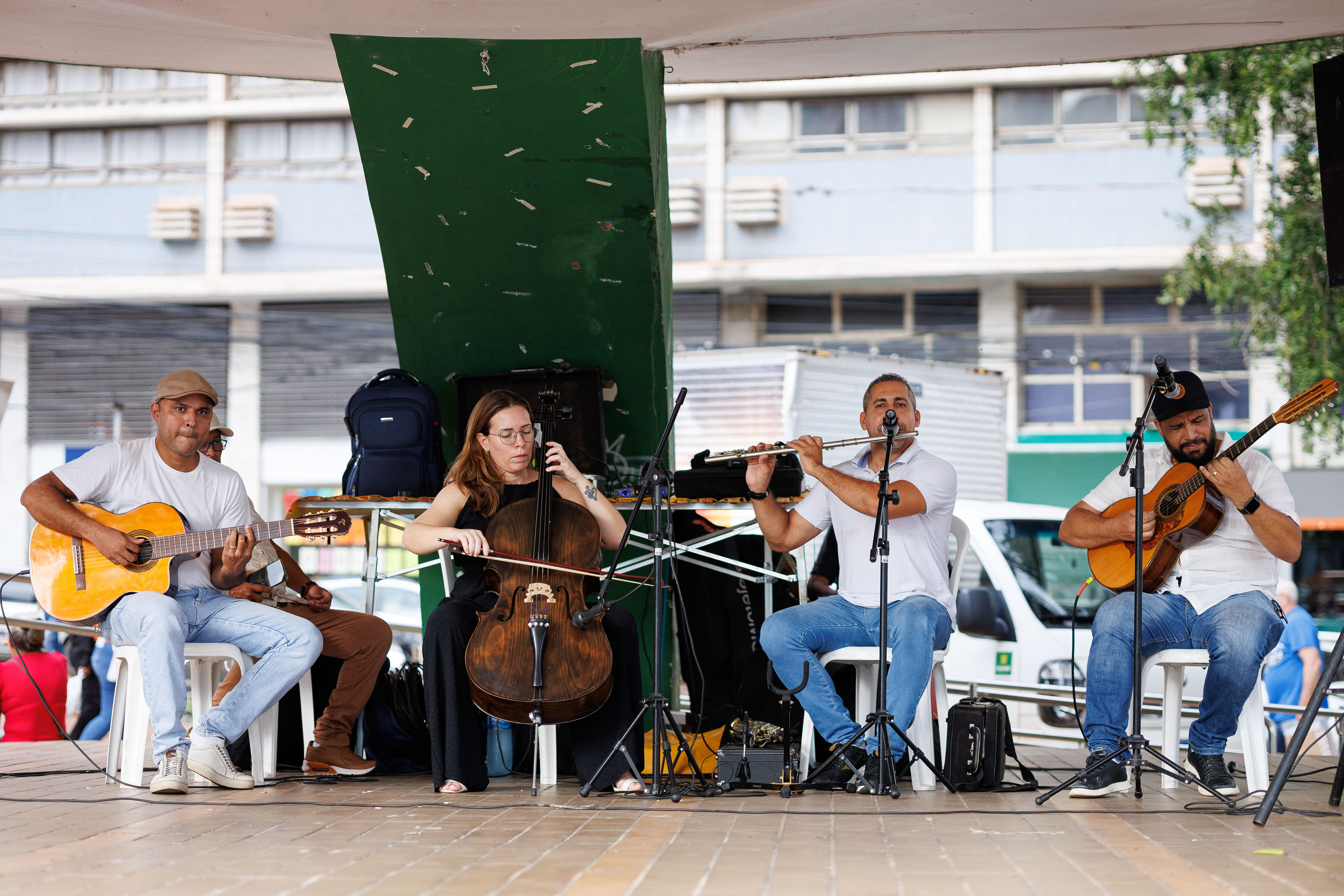 Em parceria com a Secretaria Municipal de Cultura, Esporte e Lazer, a Feira do Agricultura Familiar foi contemplada com um repertório musical ao vivo. As vozes entoando diversas canções tradicionais estiveram sob responsabilidade dos integrantes do Projeto Cuiabá Sonoro.
