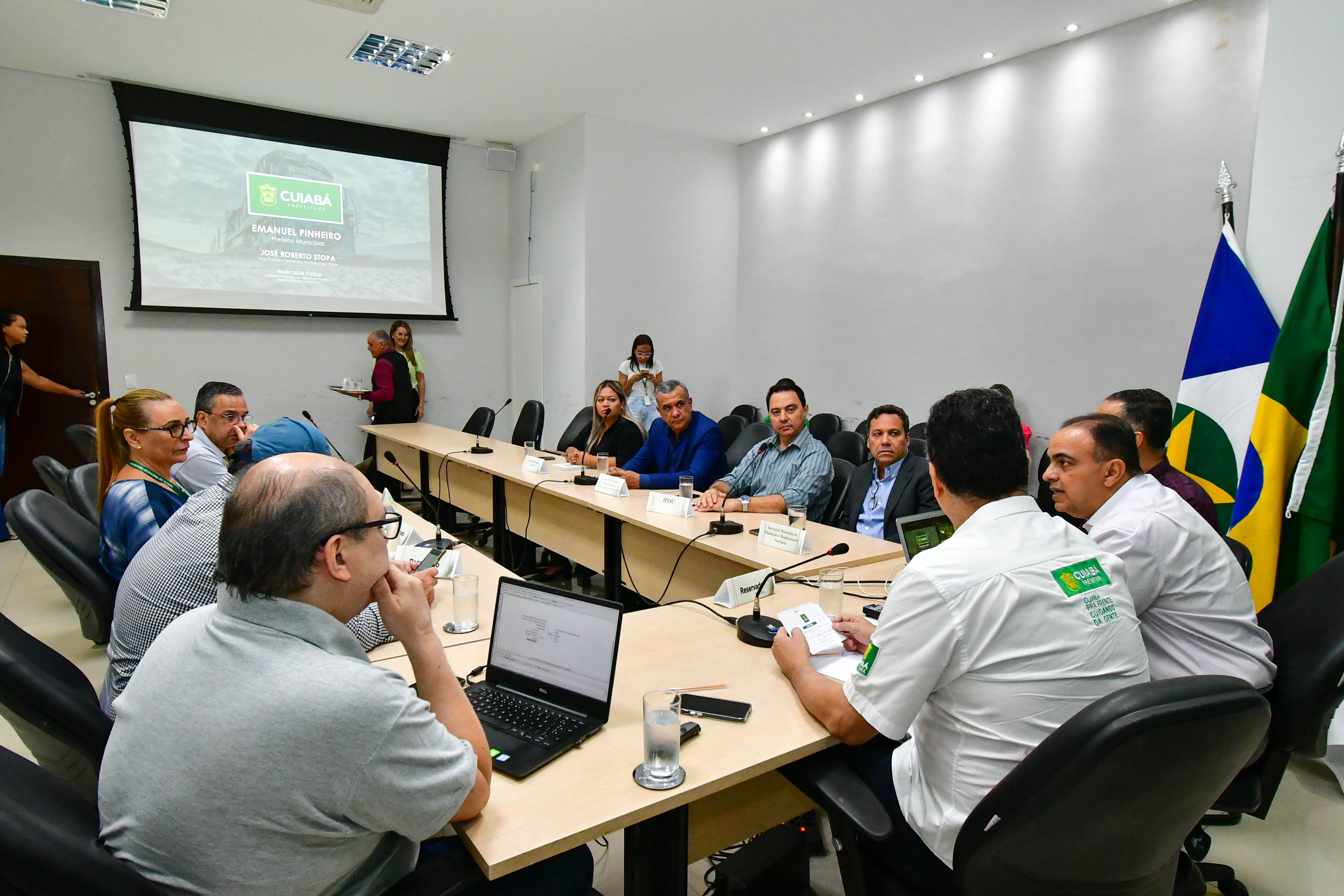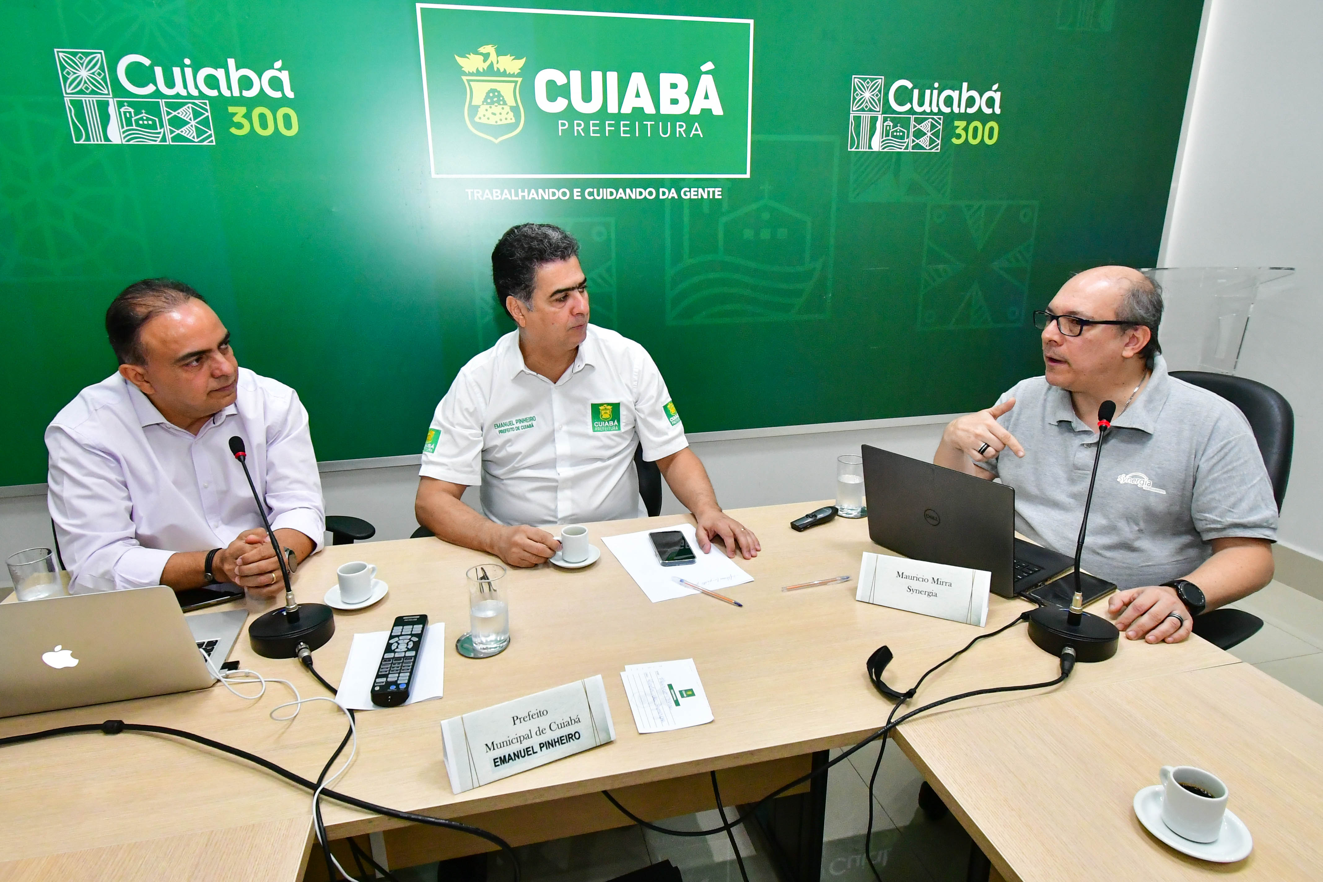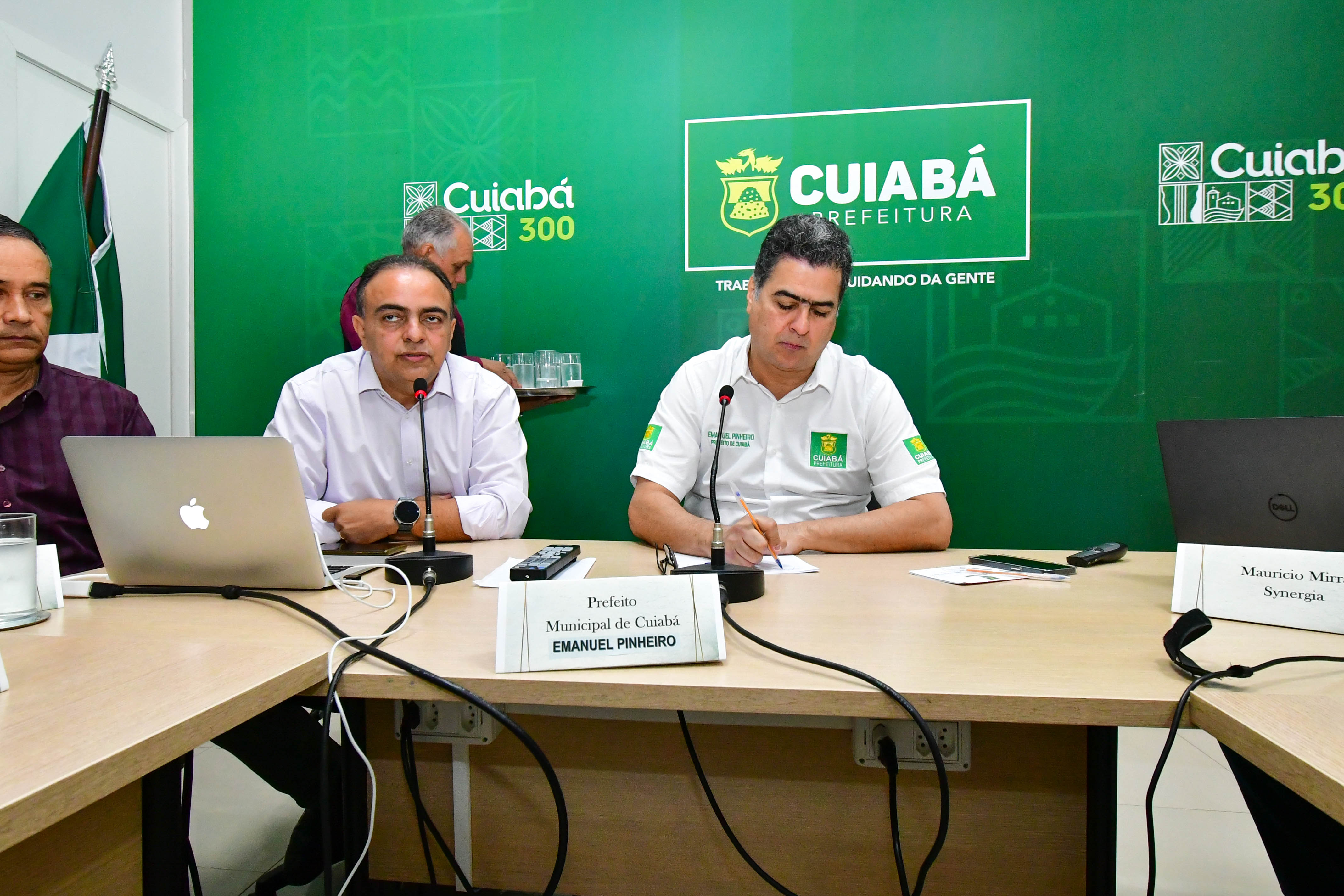 O prefeito Emanuel Pinheiro se reuniu, na manhã desta segunda-feira (7), no Palácio Alencastro, com representantes da empresa Synergia Socioambiental e equipe governamental para tratar dos reflexos positivos mediante o traçado da Ferrovia Estadual Senador Vicente Vuolo, que terá um terminal ferroviário instalado em Cuiabá. A reunião teve como finalidade iniciar as tratativas para o levantamento de dados, com a intenção de prospectar as informações necessárias de viabilidade. Um dos focos é o de fortalecer os eixos do desenvolvimento econômico e social, além do fomento à geração de emprego e renda.