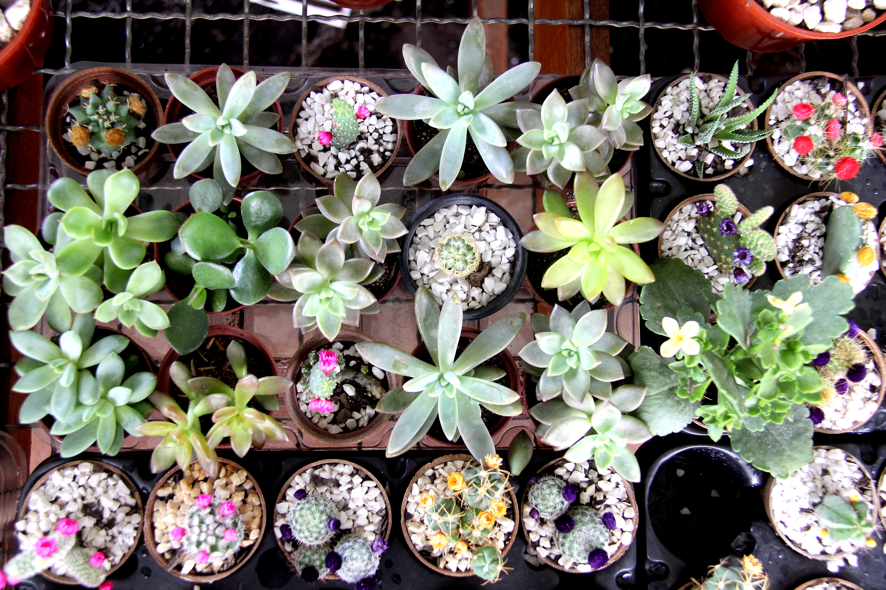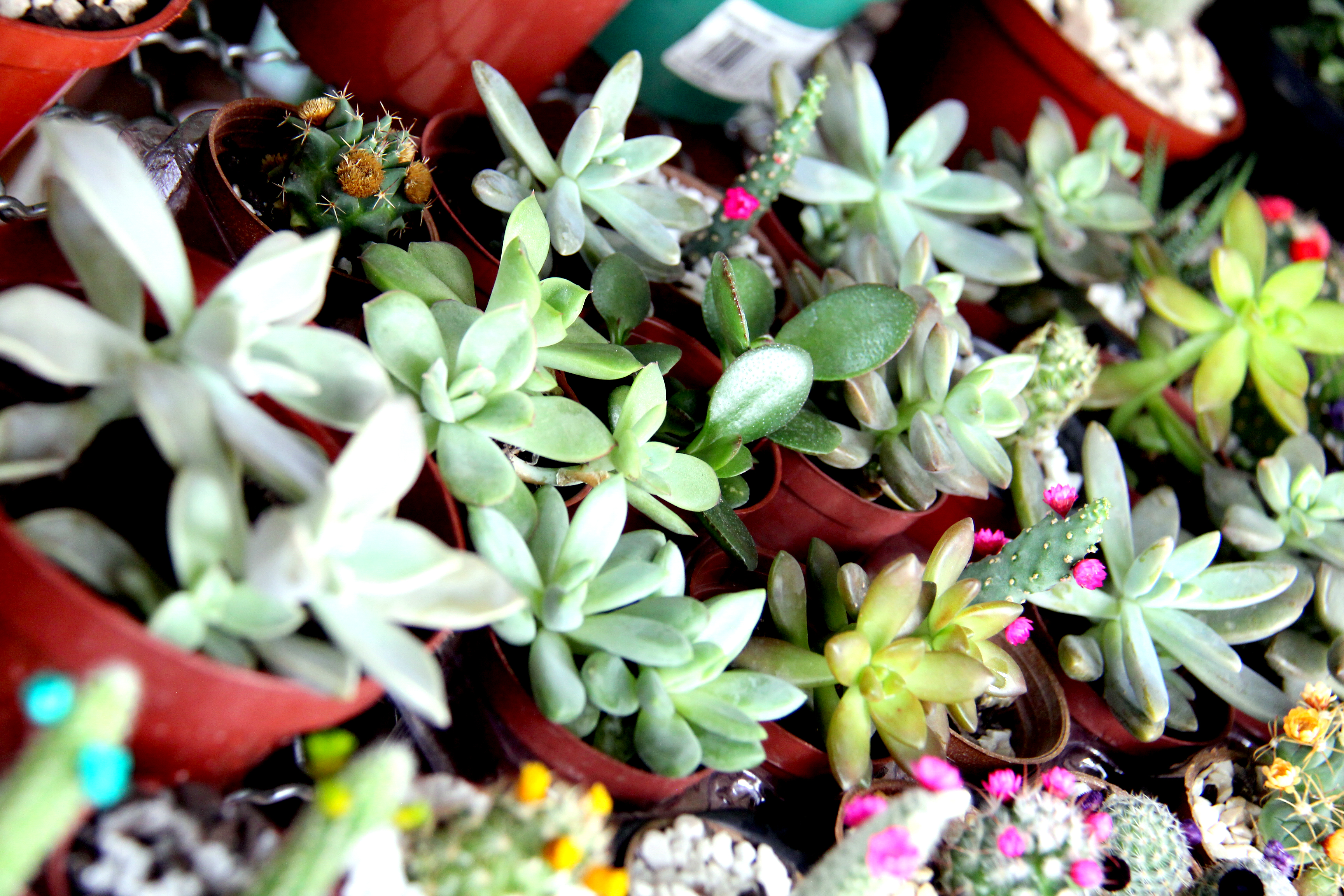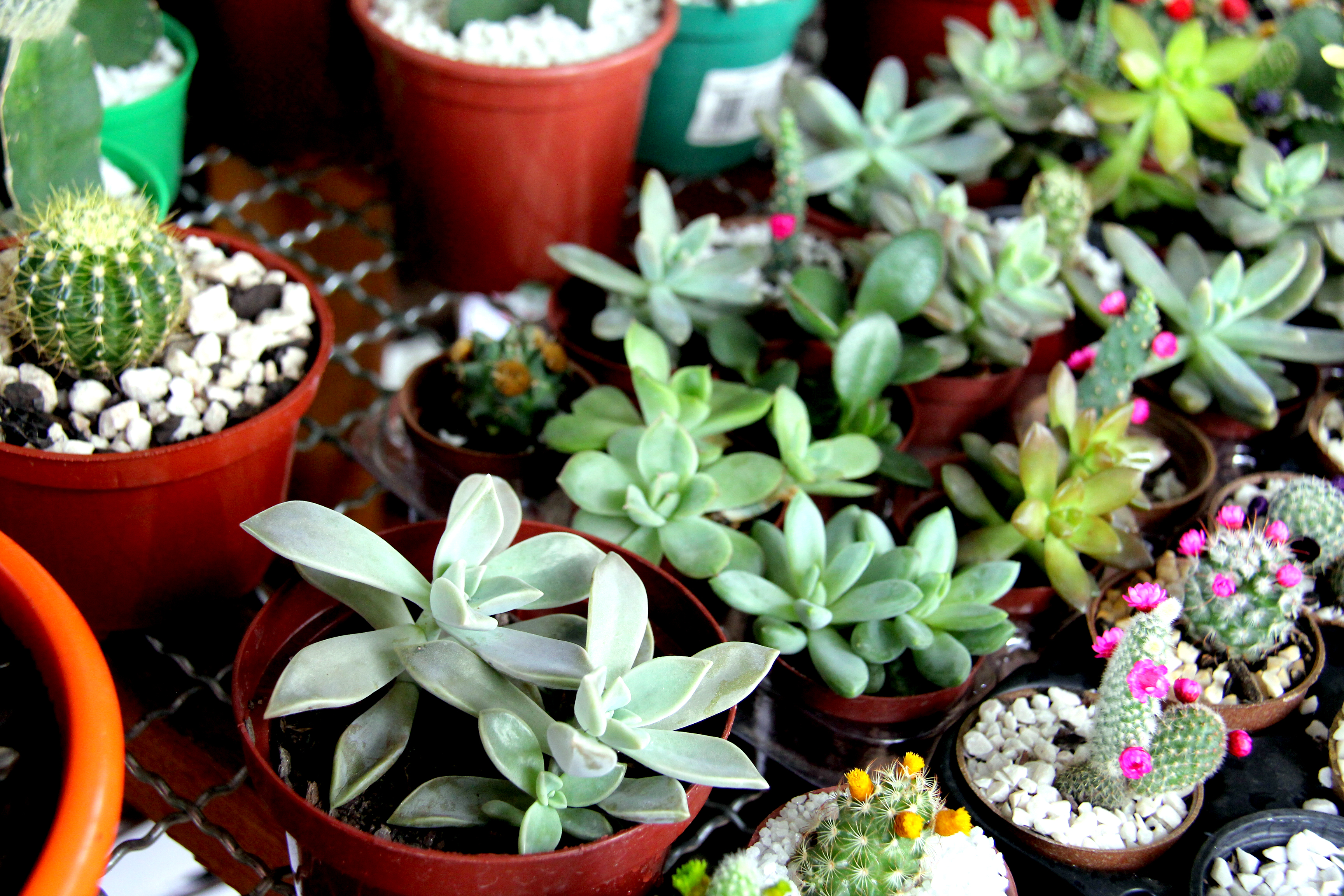 Os cactos são uma das espécies preferidas de quem gosta de cultivar versões miniatura para decorar ambientes. Não possuem folhas, e somente algumas dão flores quando adultos, geralmente uma vez por ano, na mesma época. A planta possui uma estrutura que permanece fechada sob sol forte, e sua pele é bem espessa e revestida, tudo para perder o mínimo de líquido possível. A grande maioria tem espinhos, alguns agudos e longos, outros são também cobertos de pelos. Os espinhos dos cactos servem de proteção contra animais, promovem sombra do sol intenso e impedem a circulação de ar pela epiderme da planta evitando a perda de água.
